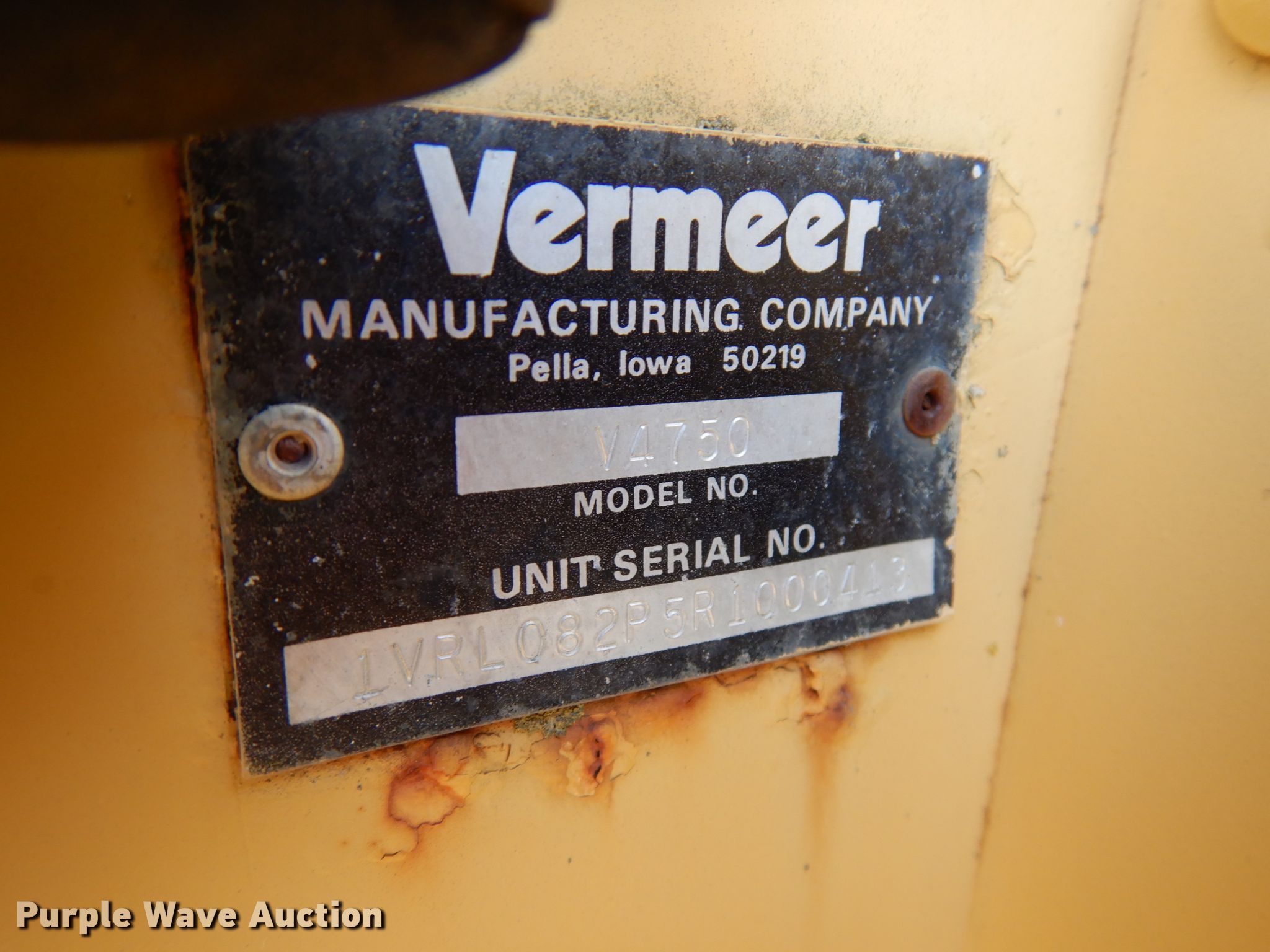 Purple Wave is selling a used Trencher or Rock Saw in Wisconsin. This item is a 1994 Vermeer V4750 trencher with the following: 1,620 hours on meter, Serial: 1VRL082P5R1000413
