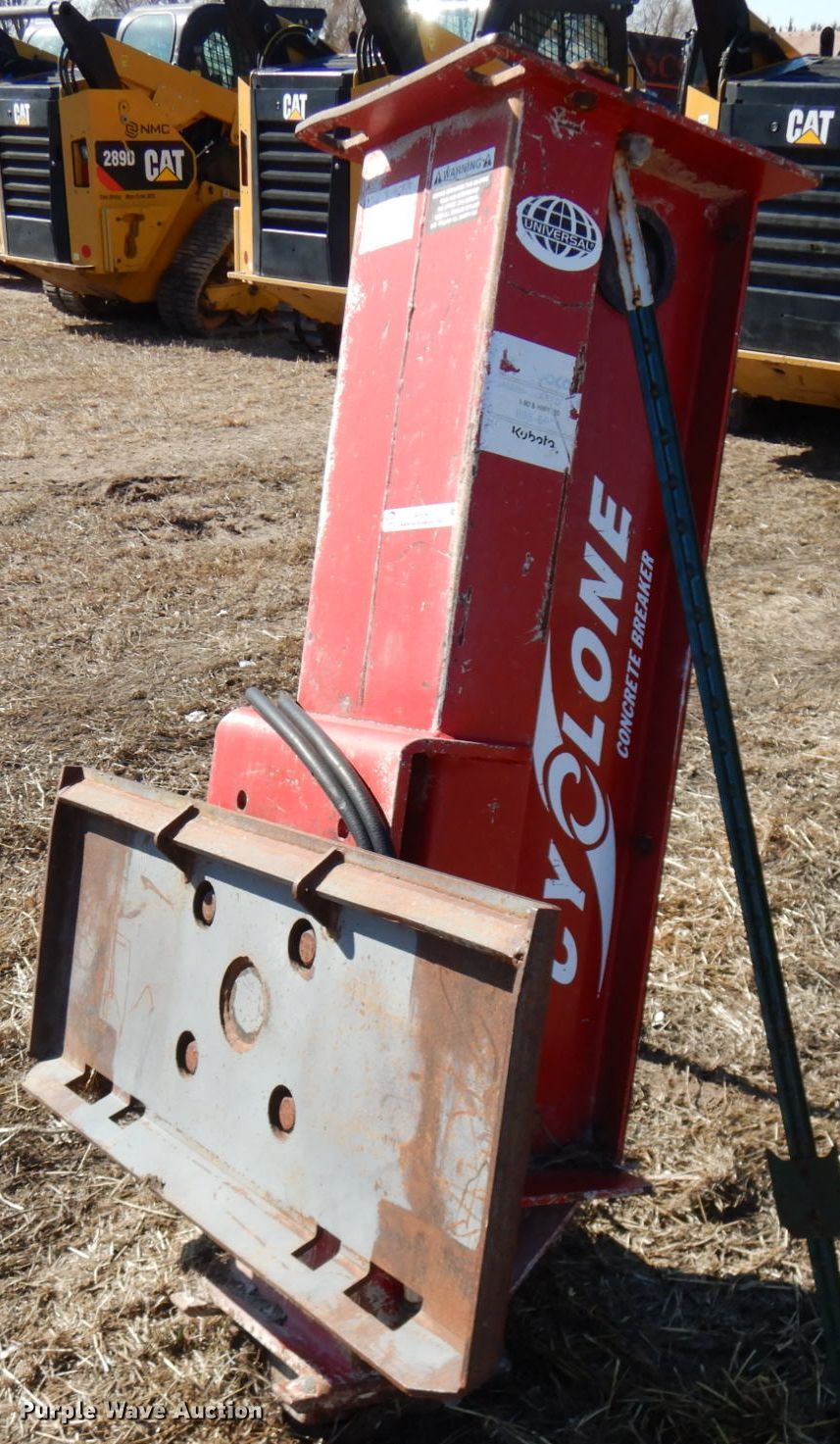 Purple Wave is selling a used Skid Steer Attach. in Nebraska. This item is a Cyclone 180001-18 skid steer drop hammer with the following: Cyclone 180001-18 skid steer drop hammer. Sealcoat Services Inc.. 54938 H and N Blvd. Pierce, NE 68767