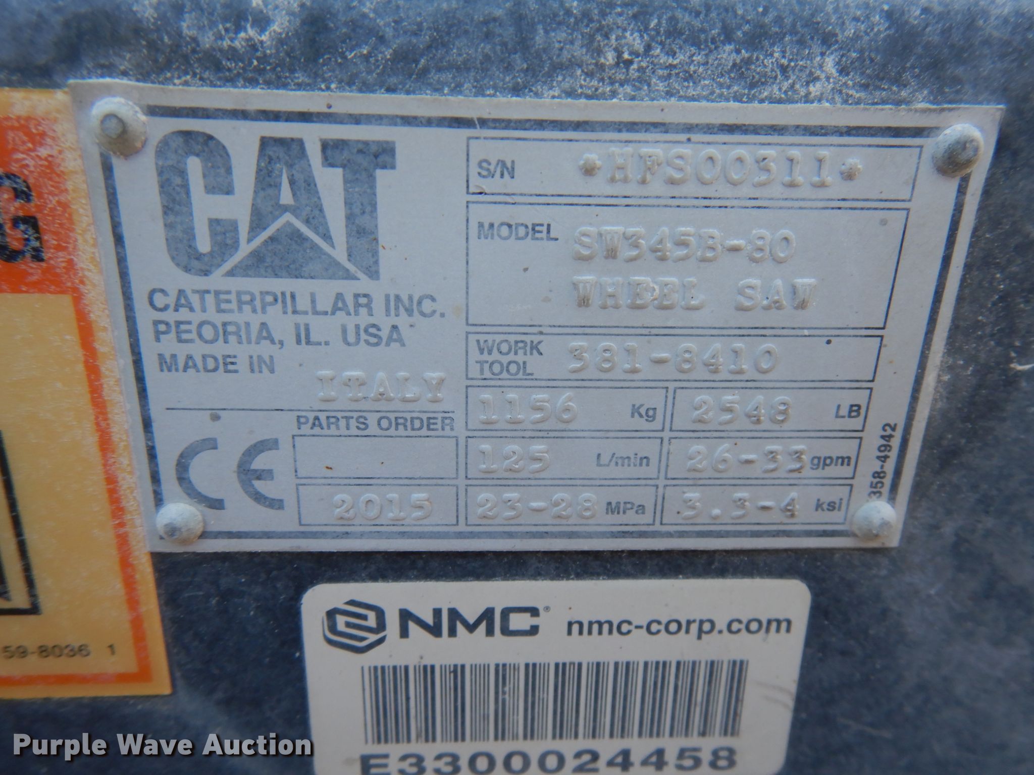 Purple Wave is selling a used Skid Steer Attach. in Nebraska. This item is a 2015 Caterpillar SW345B-80 48" skid steer wheel saw with the following: Serial HFS00311