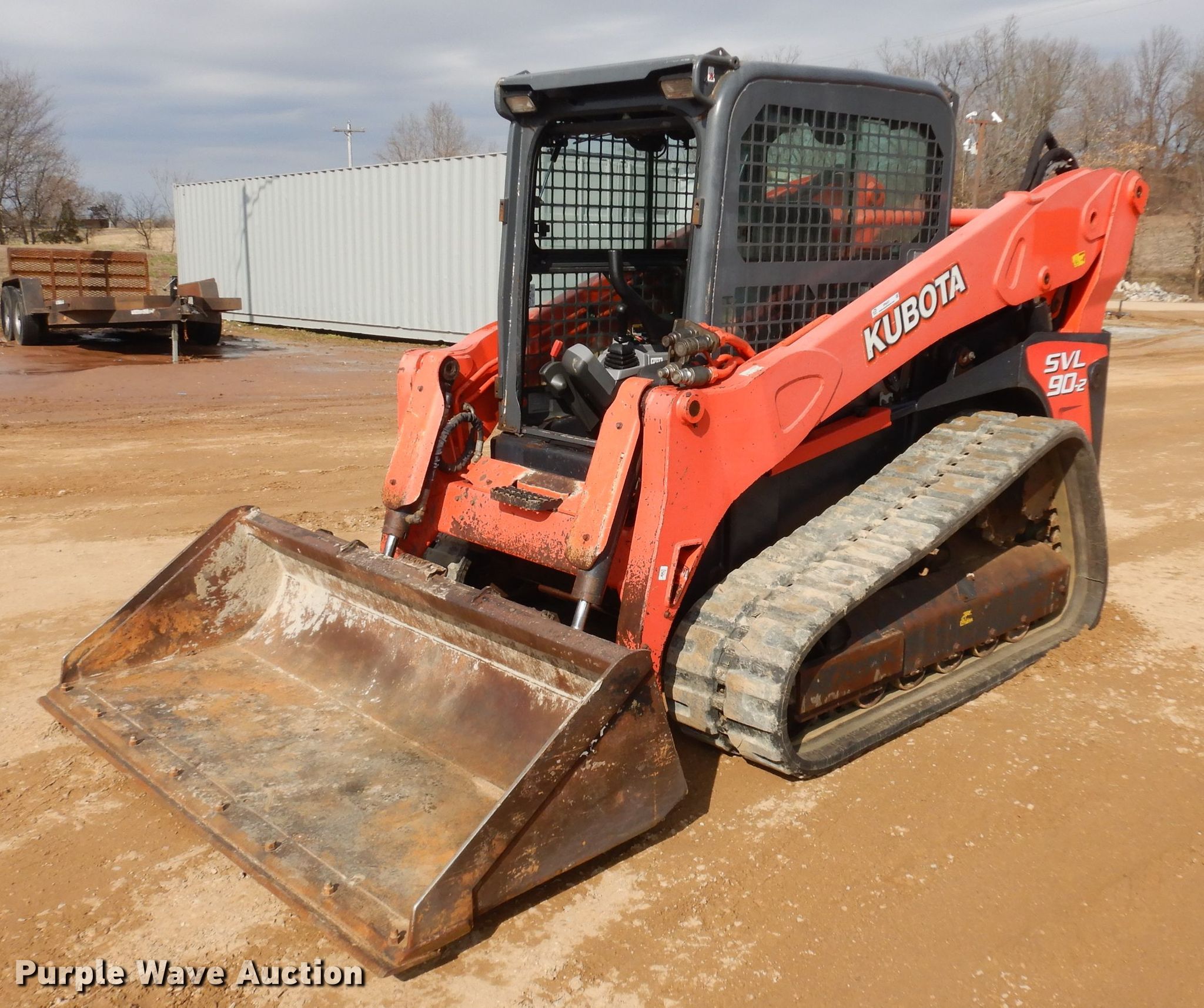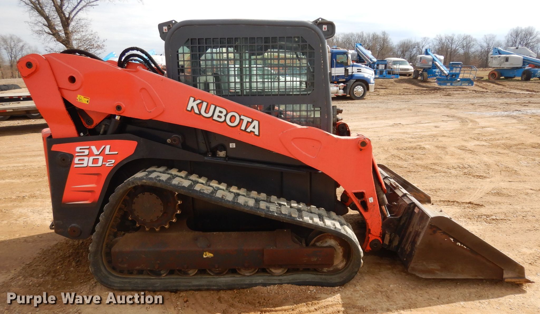 Purple Wave is selling a used Tracked Skid Steer Loader in Kentucky. This item is a 2014 Kubota SVL90-2 tracked skid steer loader with the following: 2,384 hours on meter, Serial: 13245
