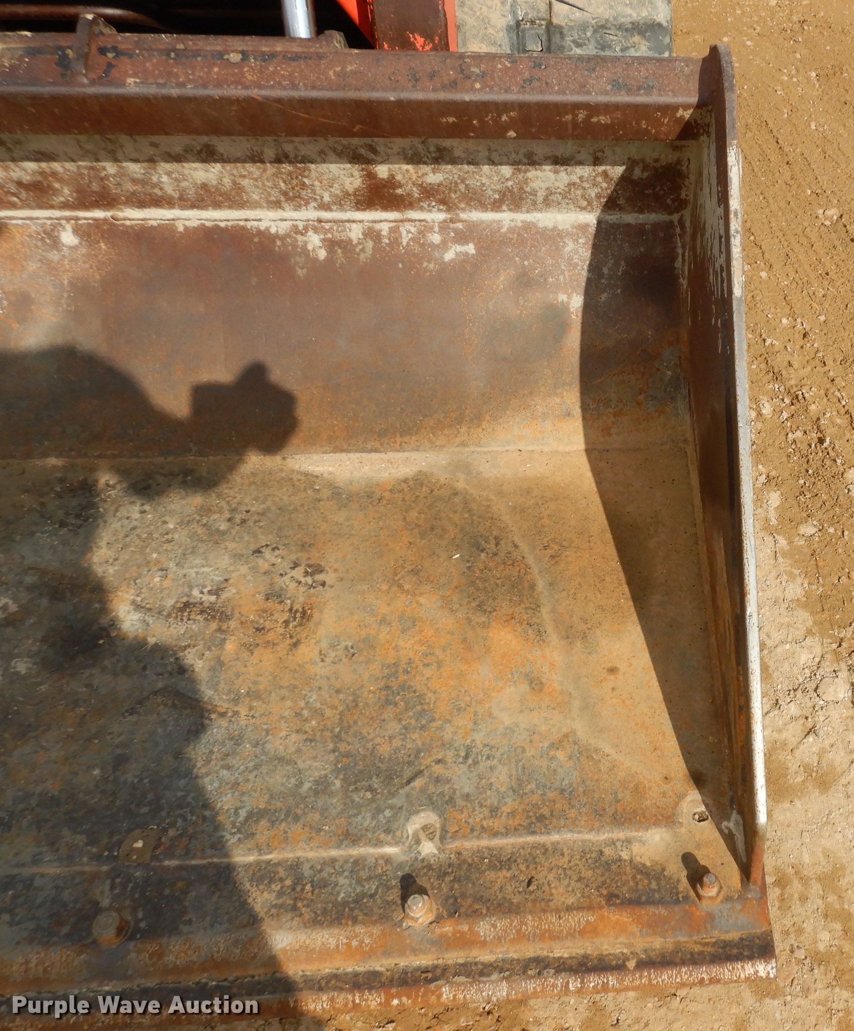 2014 Kubota SVL90-2 tracked skid steer loader. 2,384 hours on meter, Serial: 13245. Engine Kubota, Cylinders: 4, Fuel type: Diesel. Transmission Hydrostatic, Two speed travel. Operators station Enclosed cab, AC, Heat, Bucket control: Hand, Electronic Monitoring System panel. Operational Auxiliary hydraulics, Quick coupler: Manual, Bucket Width: 78", Cutting edge: Bolt-on. Tracks Brand: Maximizer, Width: 18". Notes Unit requires starting fluid to start. Crawford Equipment, Inc.. Mayfield, KY 42066