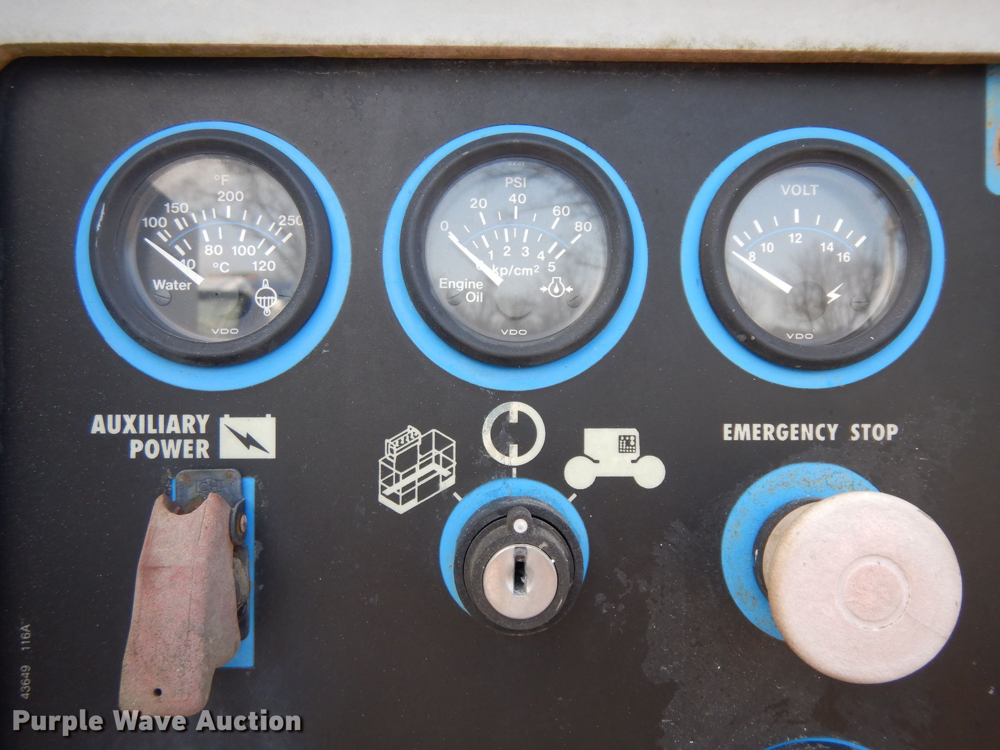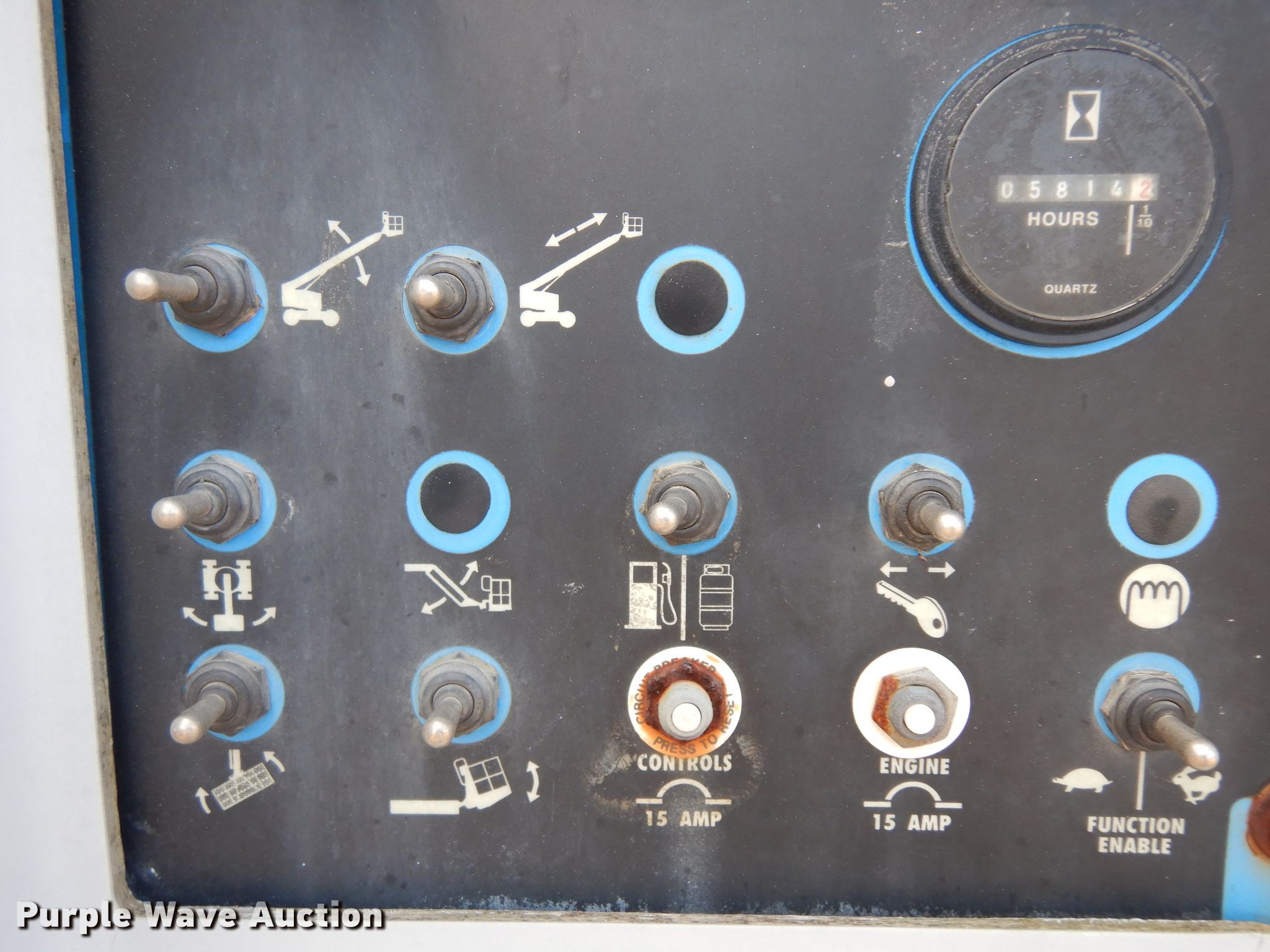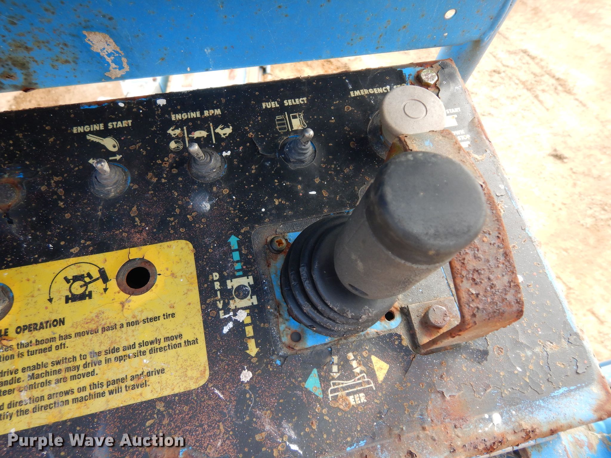 1998 Genie S60 boom lift. 5,814 hours on meter, Serial: 2855. Engine Cylinders: 4, Fuel type: Gas. Chassis Four wheel drive. Operational Rough terrain, Maximum lift capacity: 600 lbs, Maximum reach length: 51' 3", Maximum lift height: 60', Hydraulic leveling, Platform: 96" L x 36" W, AC power outlet, Controls: Platform, Ground, Platform rotation: Manual. Tires Tire size: 15-19.5. Notes Non-operational unit. Crawford Equipment, Inc.. Mayfield, KY 42066