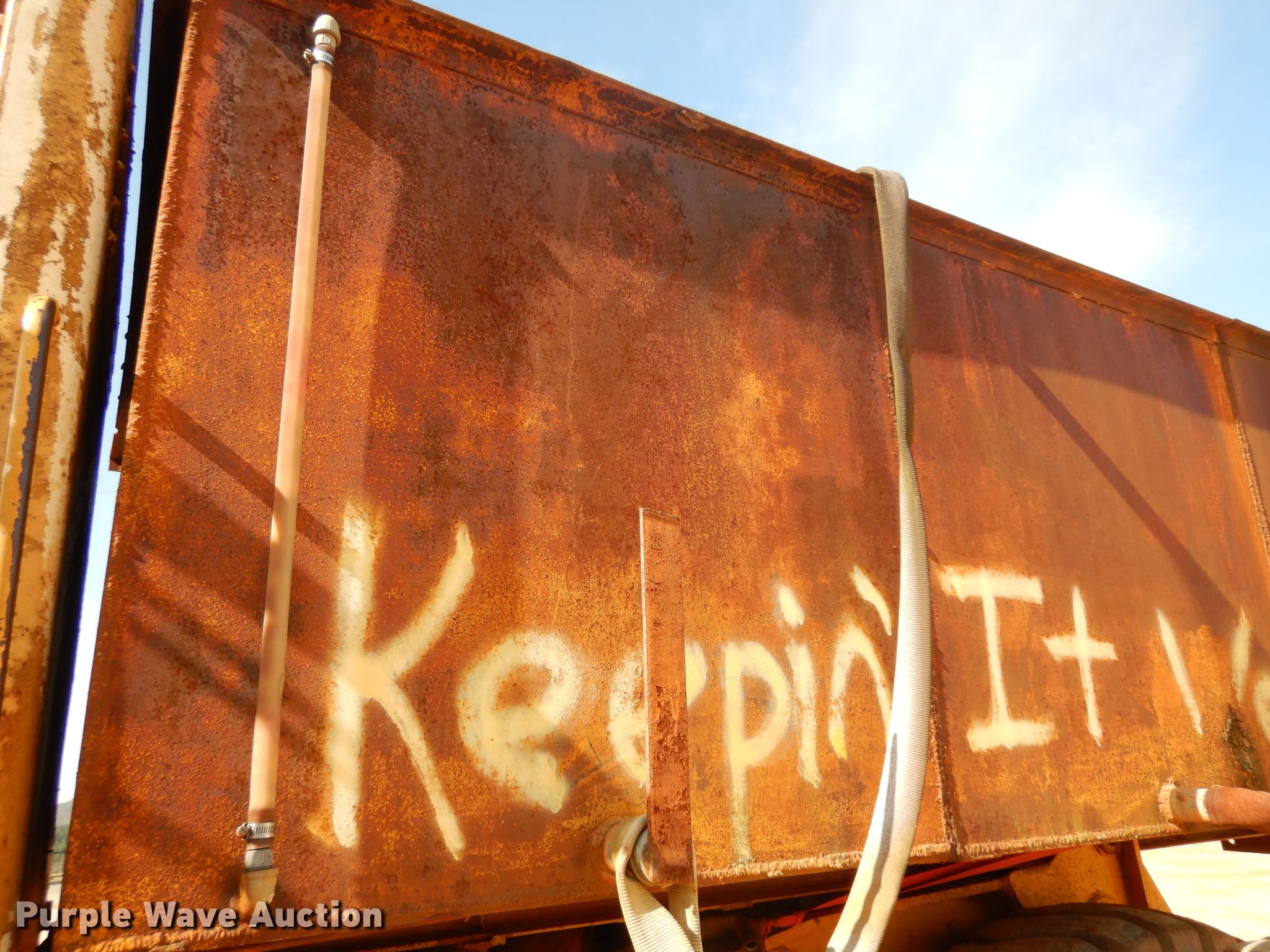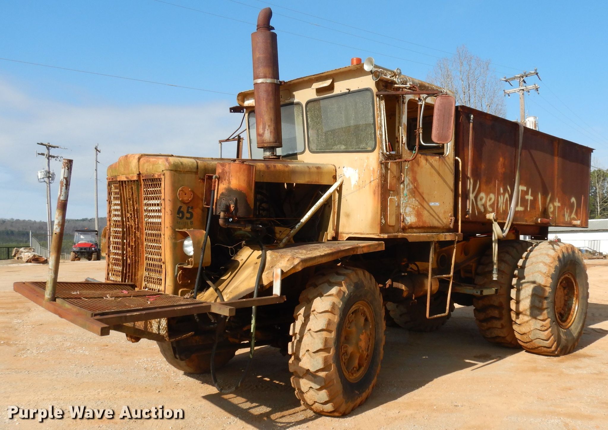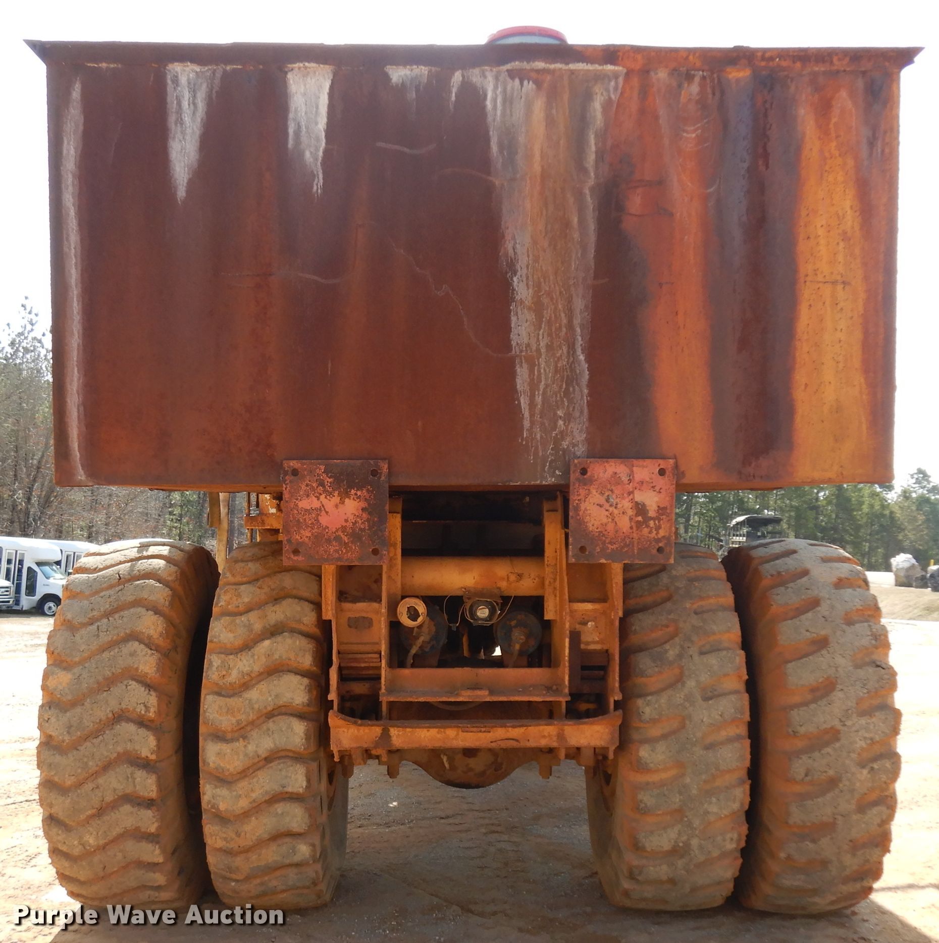 International 65B tank truck. Unknown hours on meter. Engine International, Cylinders: 8, Fuel type: Diesel. Transmission Powershift. Chassis Axles: Single, Suspension: Spring, Brakes: Air. Operational Bed / tank 12'L x 8'W x 4'H, Top fill, Sight tube. Tires Front: 14.00-24, Rear: 18.00-25. 211 Crystal Ridge Ln. Jessieville, AR 71949
