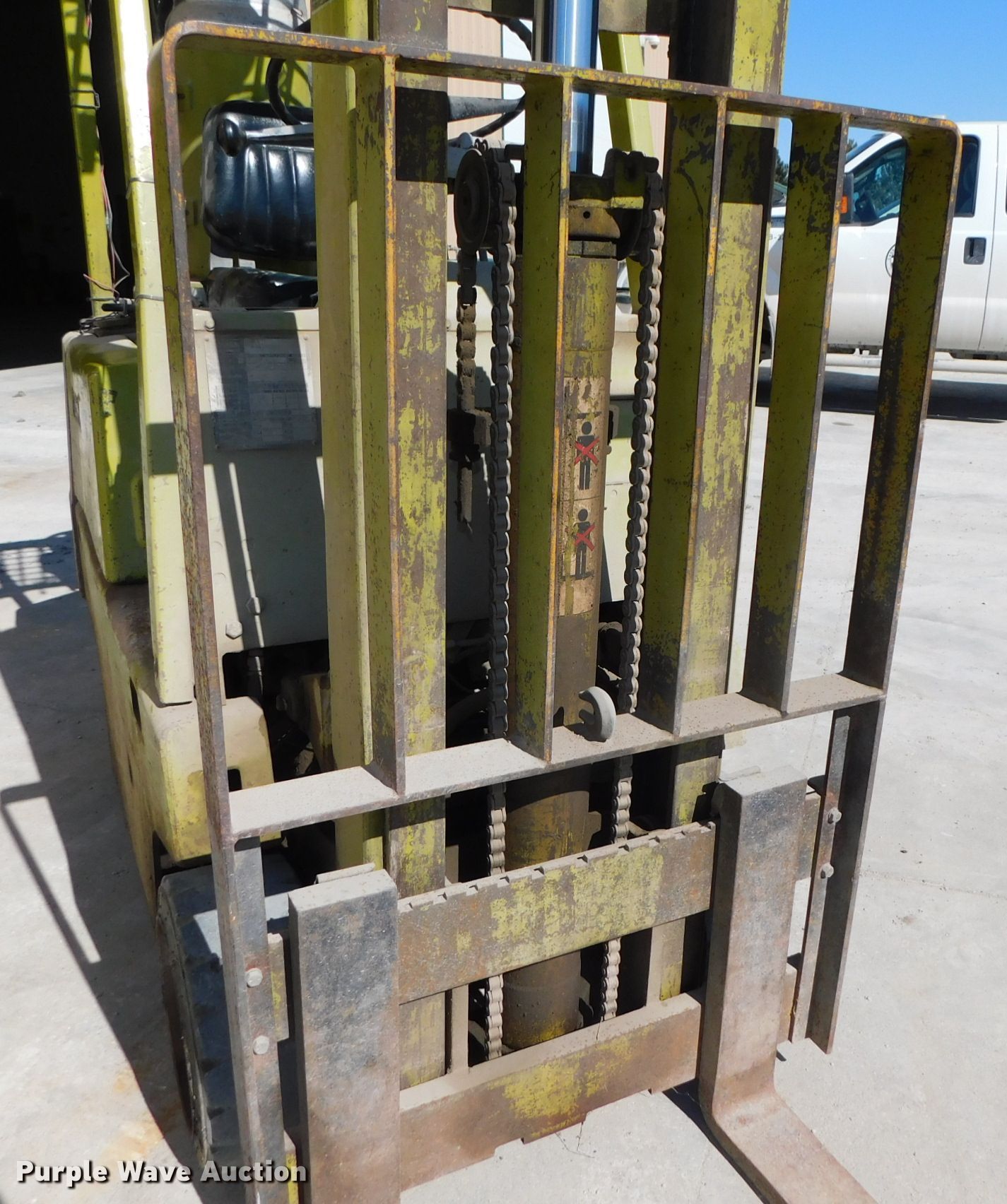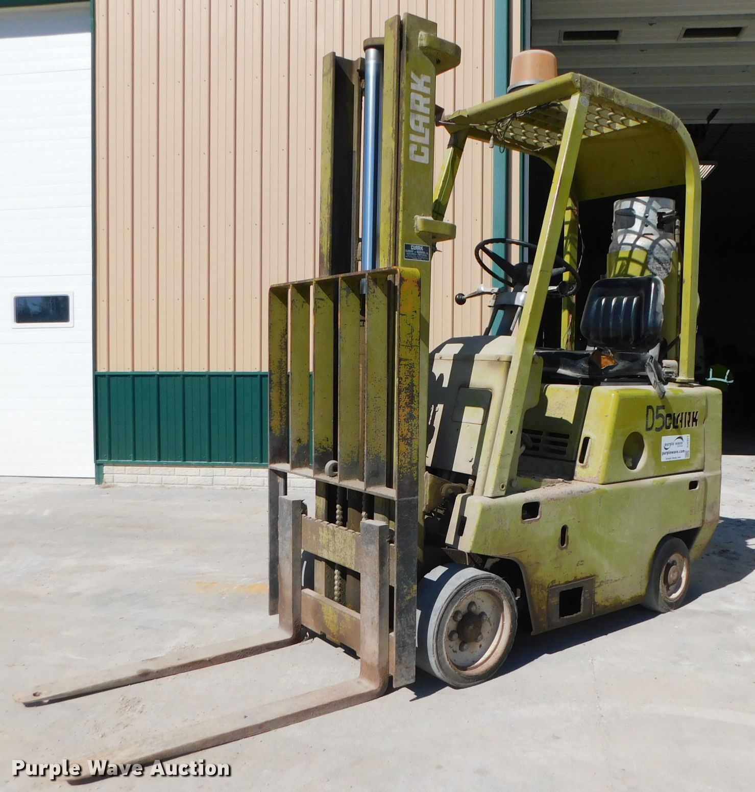 Purple Wave is selling a used Warehouse Forklift in Nebraska. This item is a Clark C500530LPG forklift with the following: Unknown hours on meter, Serial: 2358622202572, Unit #: D5