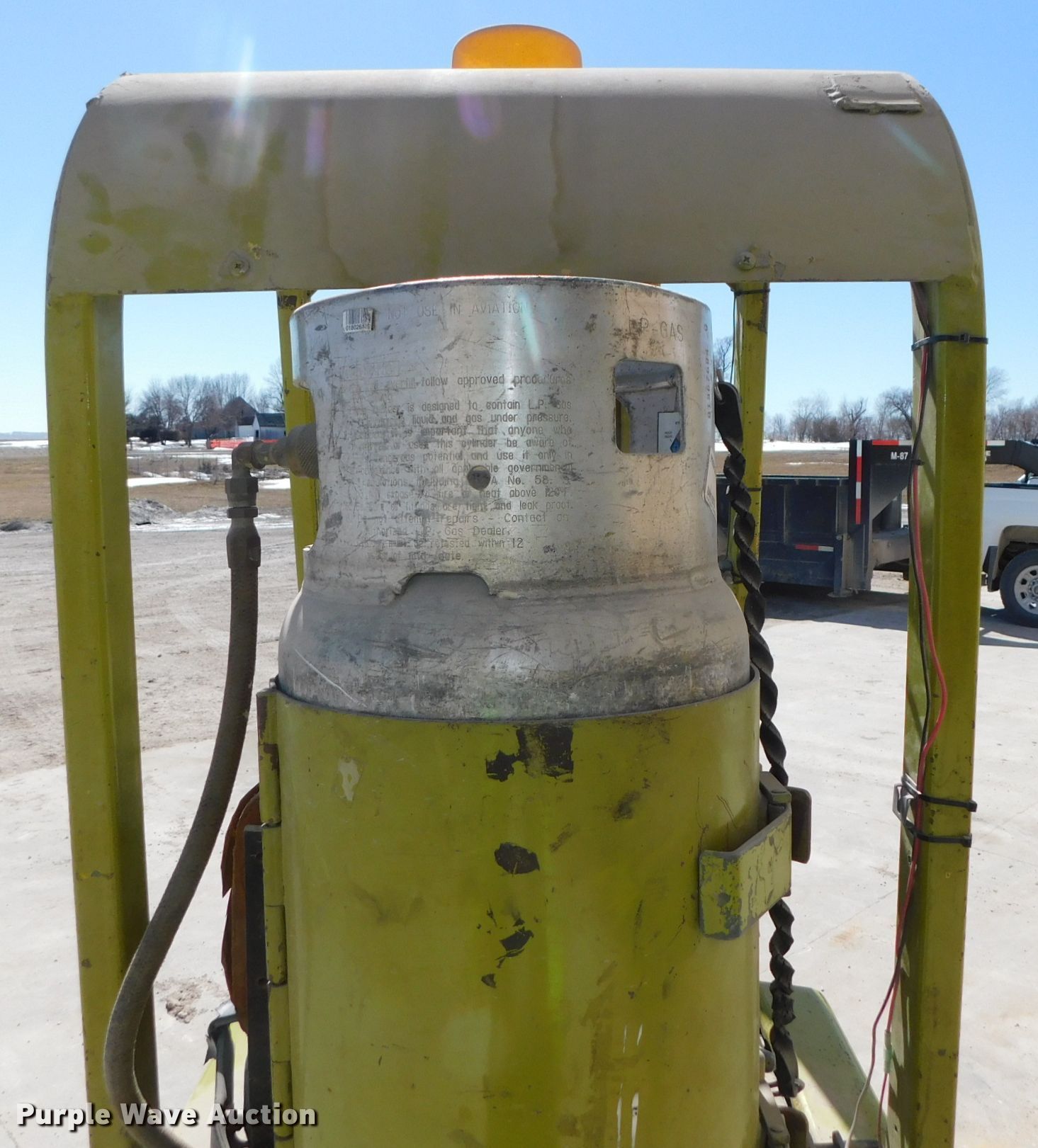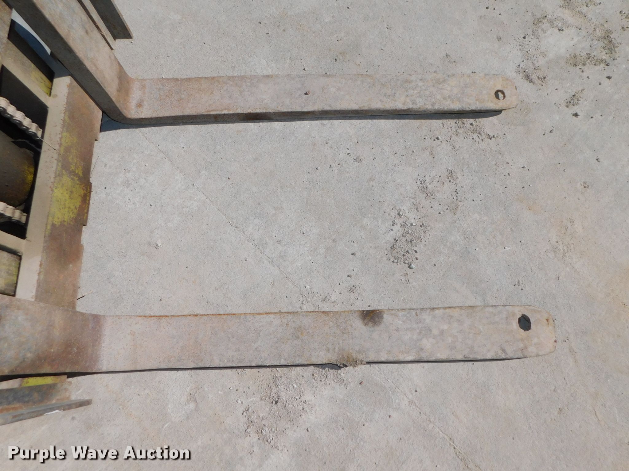 Clark C500530LPG forklift. Unknown hours on meter, Serial: 2358622202572, Unit #: D5. Engine Cylinders: 4, Fuel type: LPG LP bottle: Included. Transmission Powershift 1F-1R. Operators station Canopy. Operational Maximum lift capacity: 3,000 lbs, Mast stages: 2, Mast tilt, Fork length: 36". Tires Front: 16x7x12-1/2, Rear: 14x4-1/2x8, Solid. Notes Hard to start, No load chart, Unknown operating condition. Cass County, NE. 7600 NE-50. Weeping Water, NE 68463