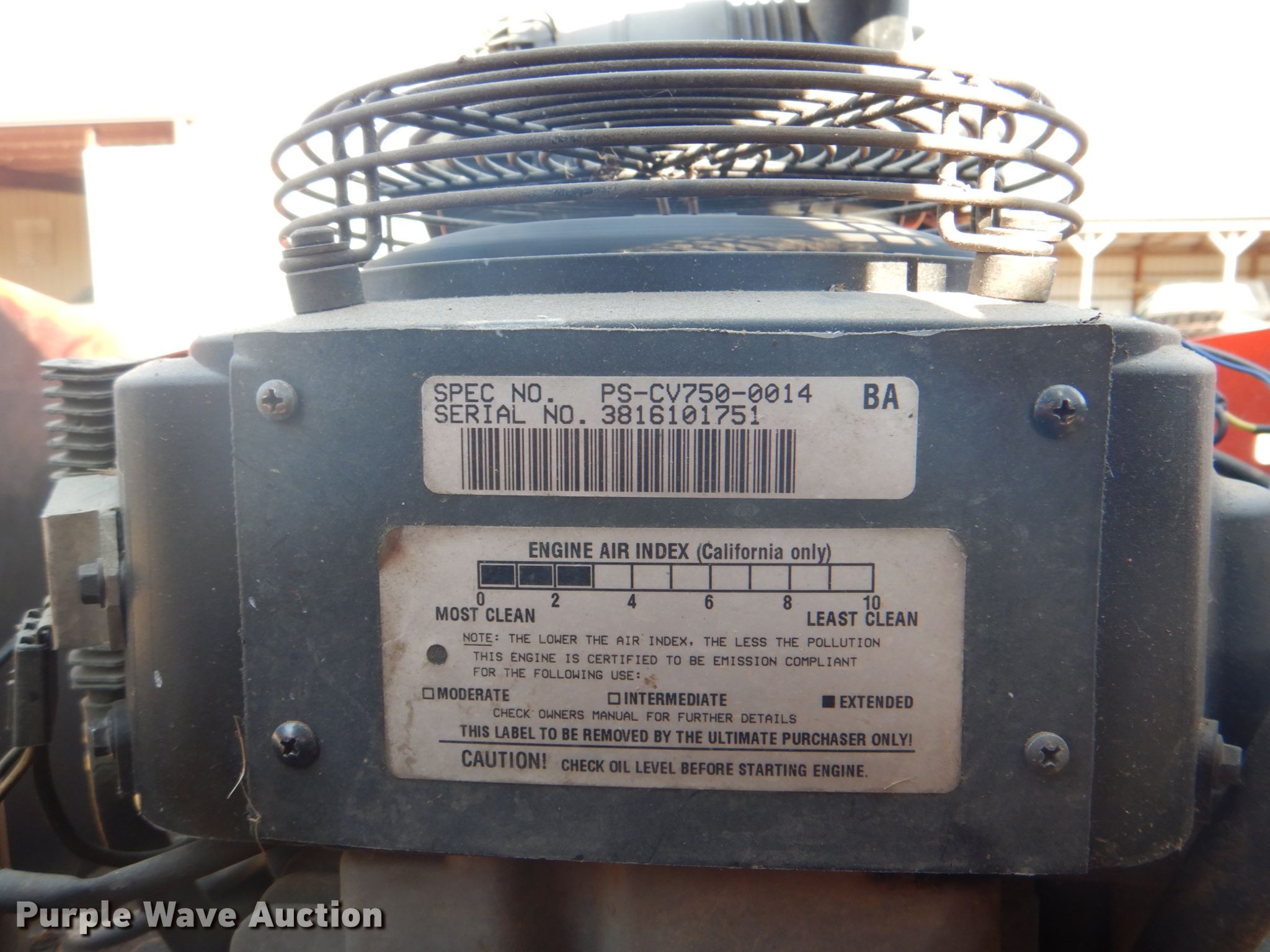 Bad Boy 6000PUP lawn mower. 1,137 hours on meter, Cutting width: 60", Serial: BBP6030KO05092254. Engine Kohler PS-SV750-0014, Serial: 3816101751, Displacement: 725cc, Cylinders: 2, Fuel type: Gas. Transmission Hydrostatic. Tires Front: 13x6.5-6, Rear: 24x12.00-12. City of Stilwell, OK. 10 W Walnut St. Stilwell, OK 74960