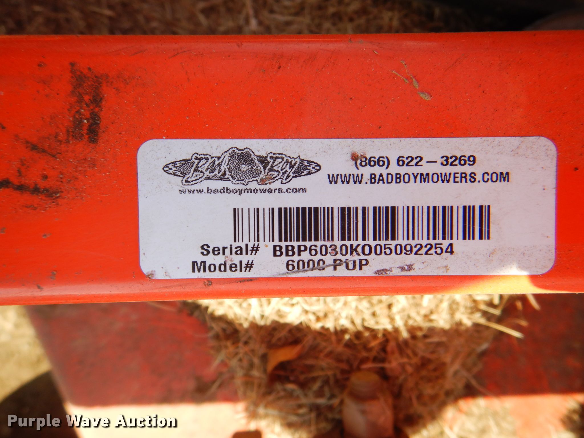 Purple Wave is selling a used Commercial Turf Mower in Oklahoma. This item is a Bad Boy 6000PUP lawn mower with the following: 1,137 hours on meter, Cutting width: 60", Serial: BBP6030KO05092254