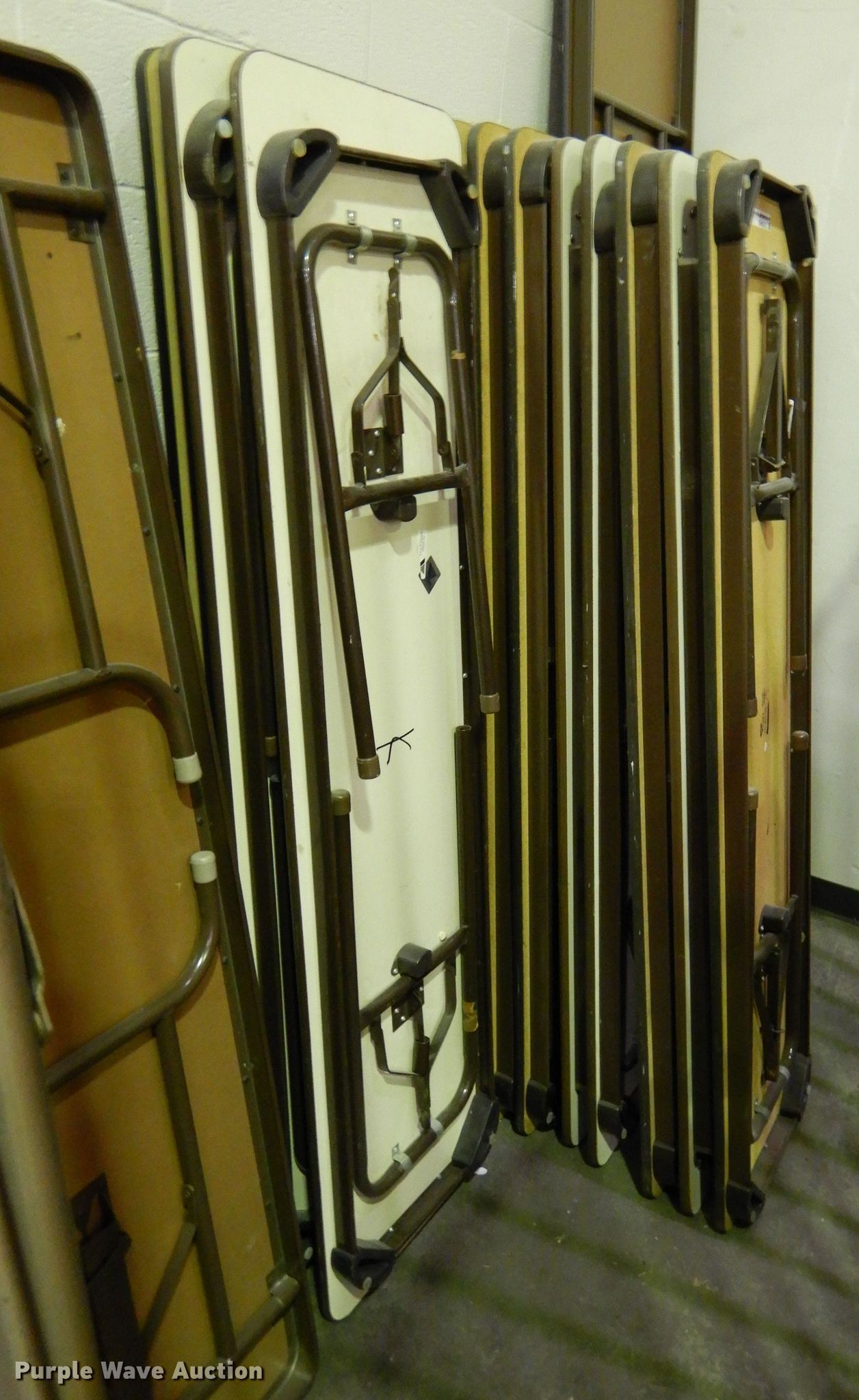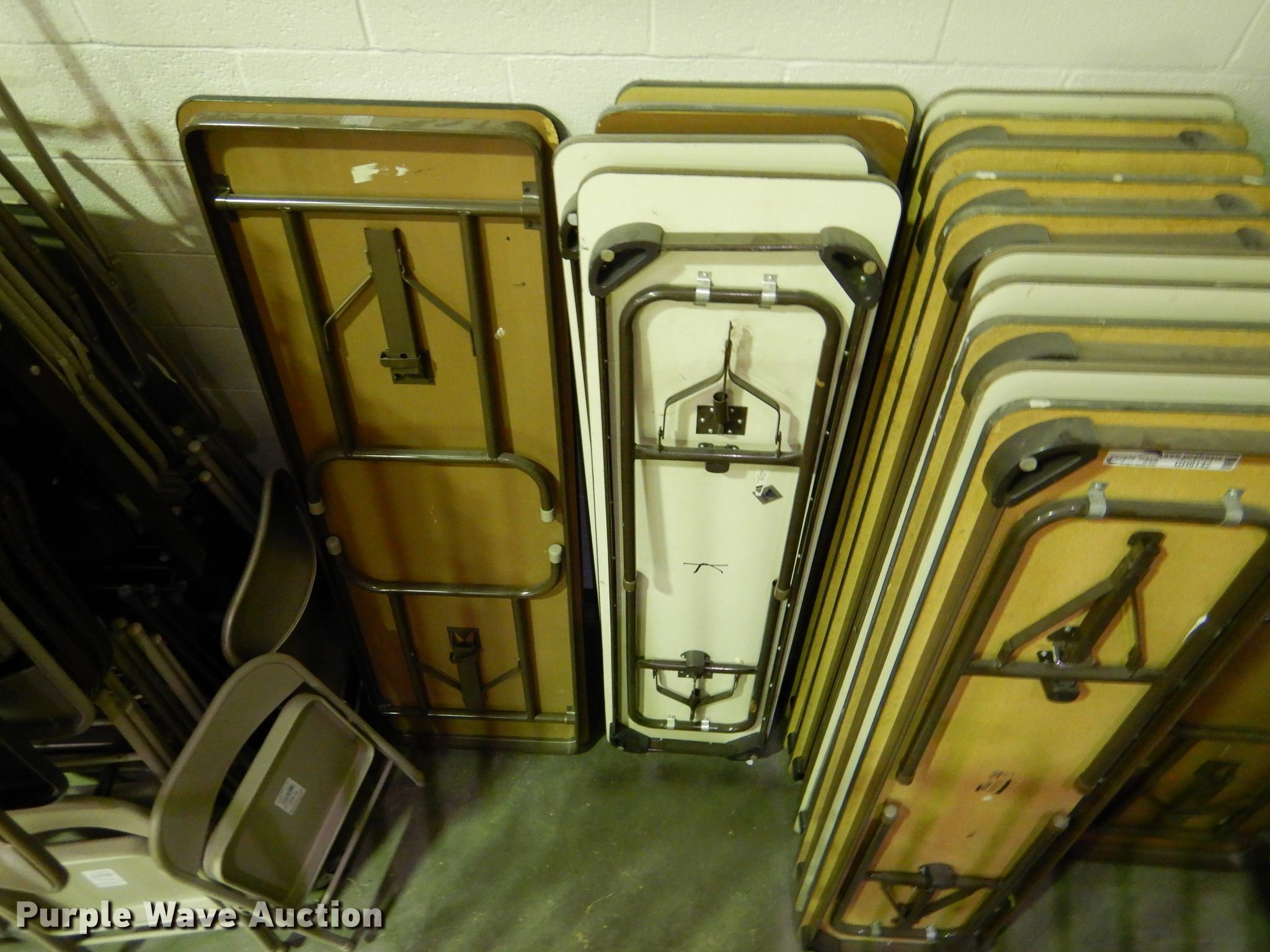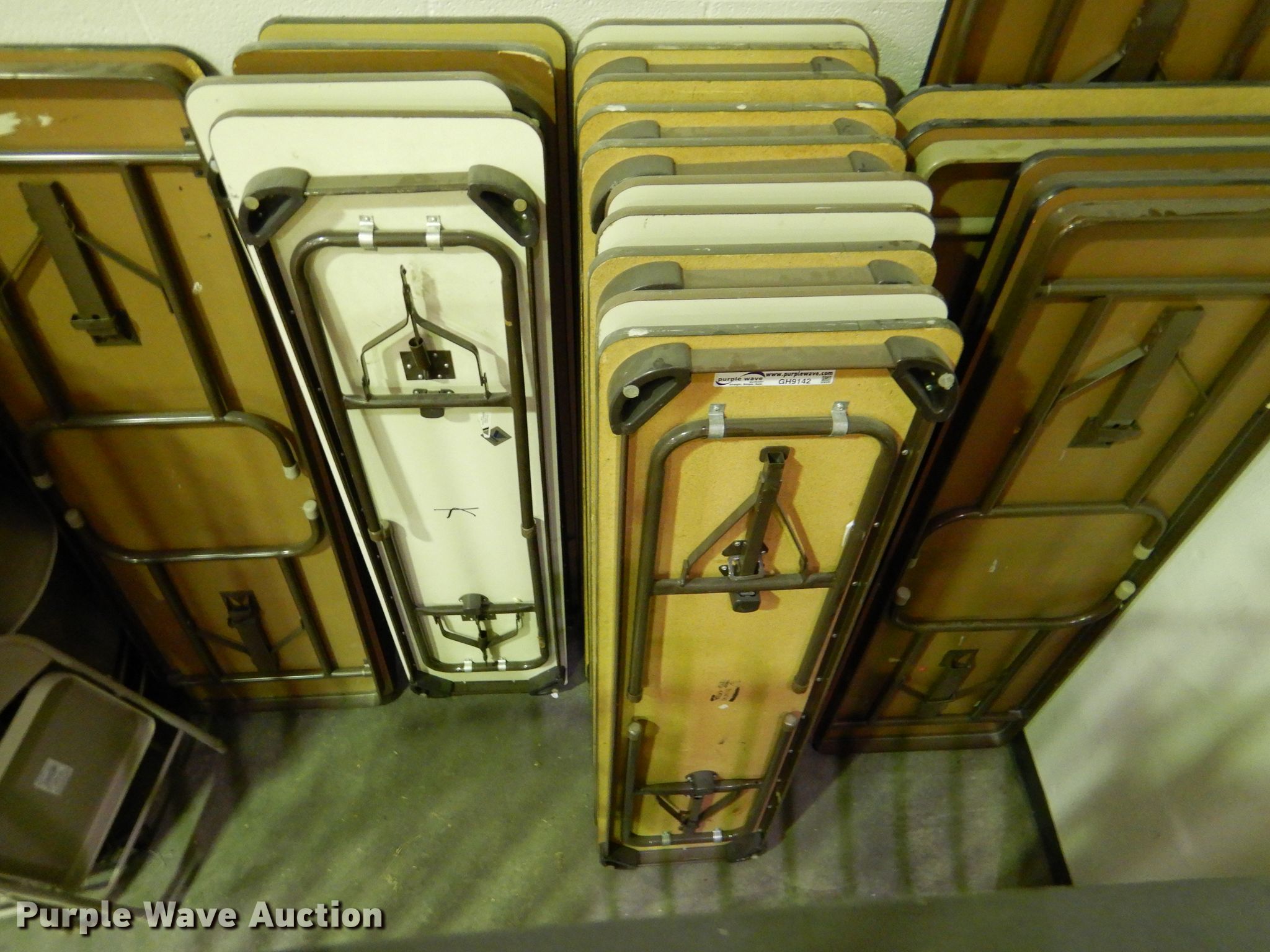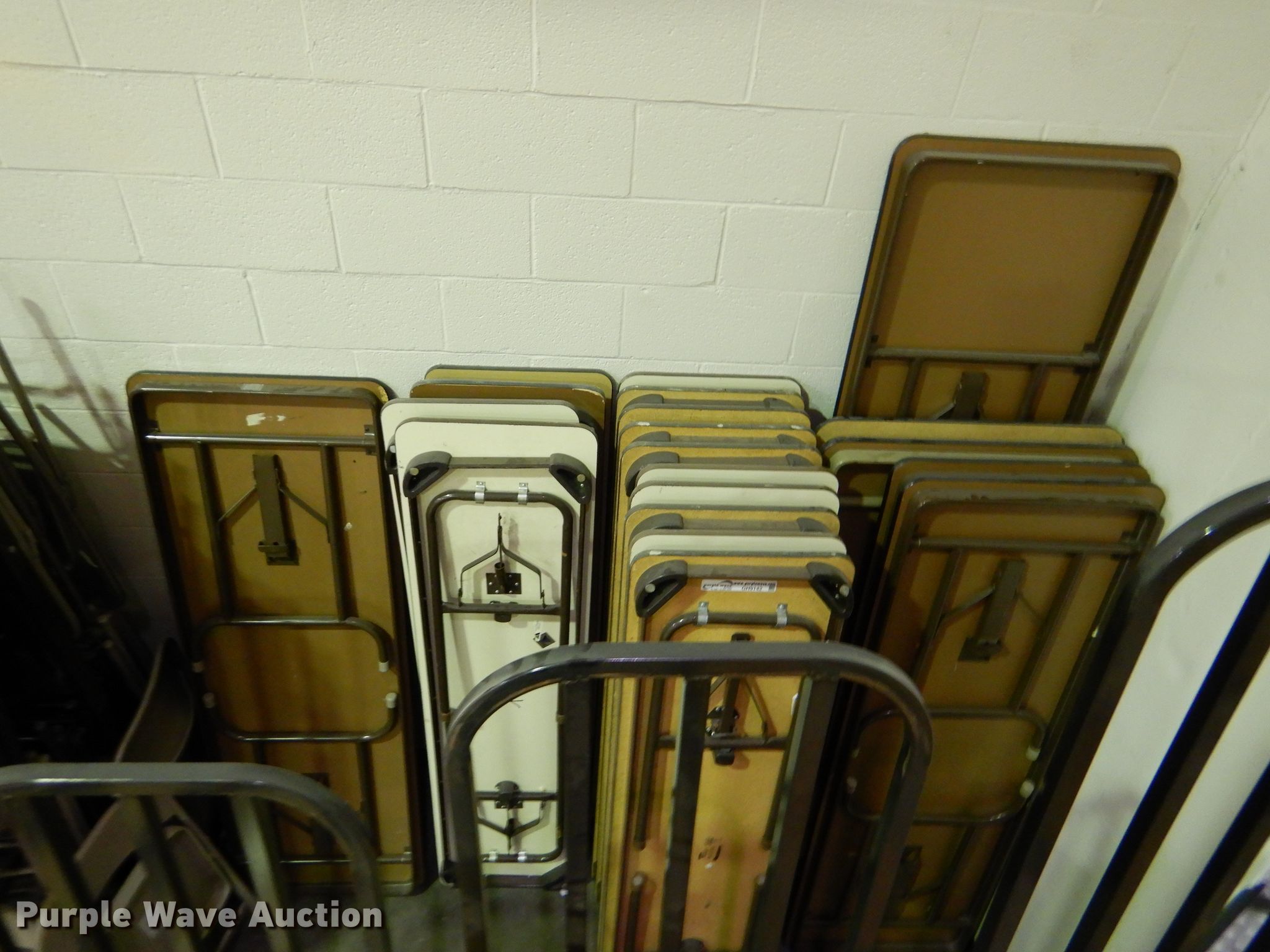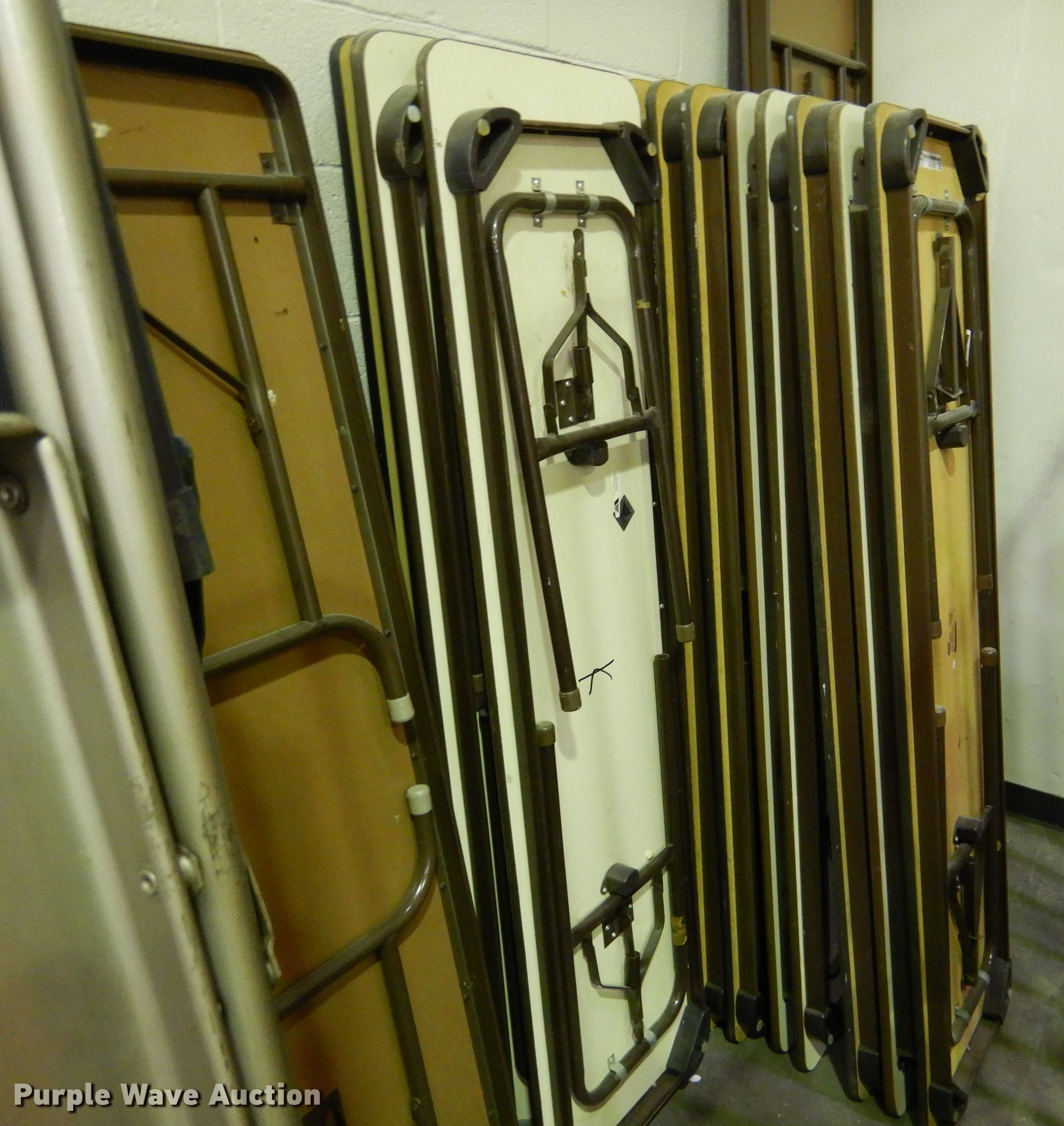 Purple Wave is selling a used Furniture in Kansas. This item is a (20) tables with the following: (3) approx. 72" x 24", (14) approx. 72" x 18", (2) approx. 72" x 30", Approx. 8' x 24"