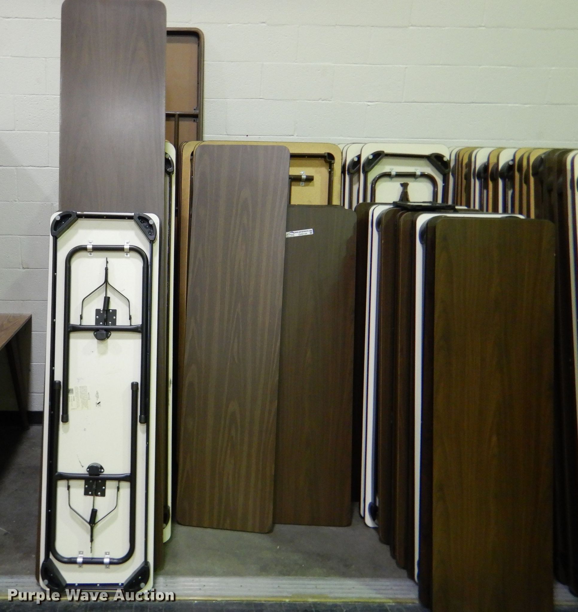 Purple Wave is selling a used Furniture in Kansas. This item is a (26) tables with the following: 8' x 18", 60" x 18", 72" x 18", 72" x 30", 60" x 24"