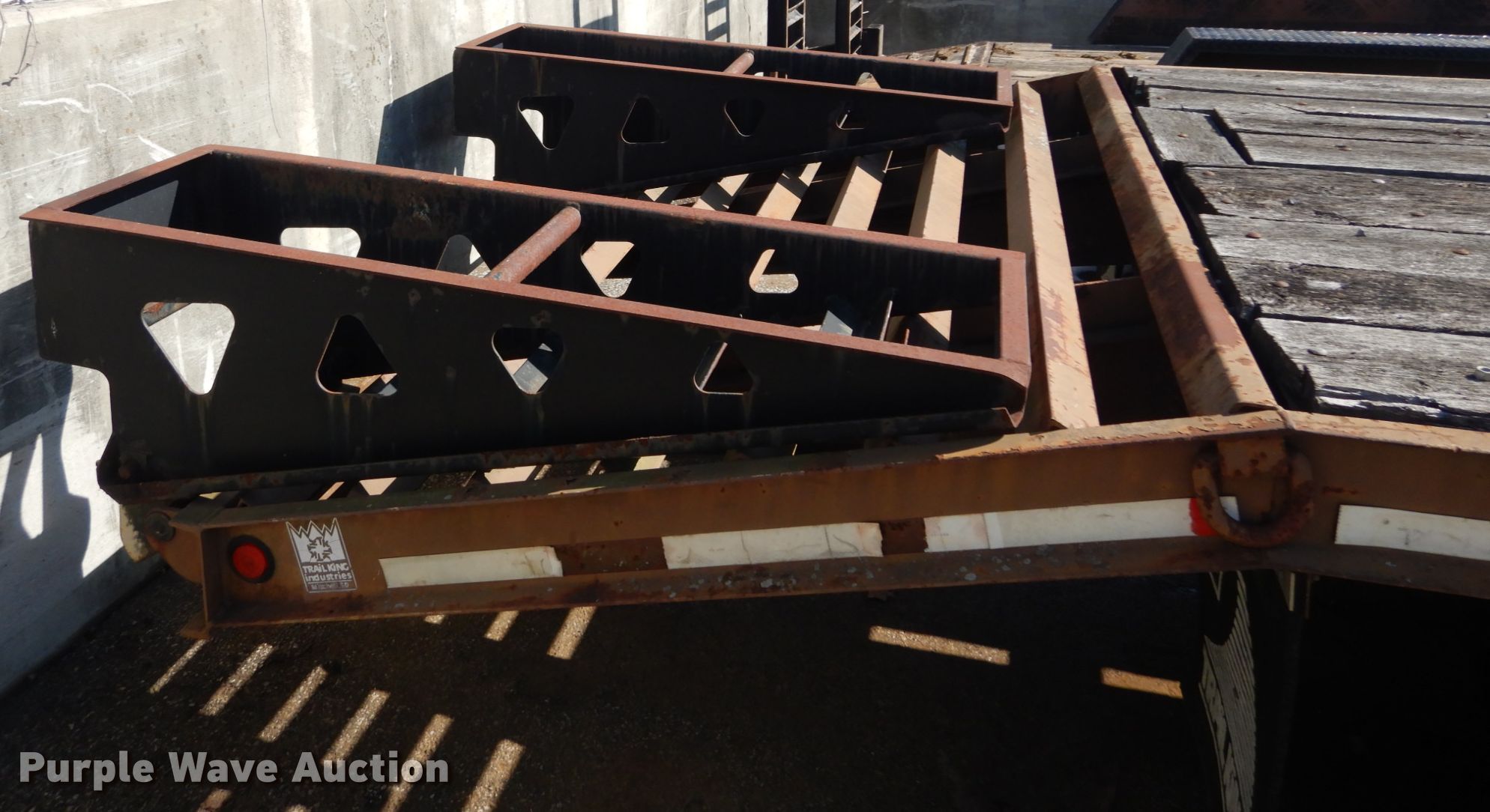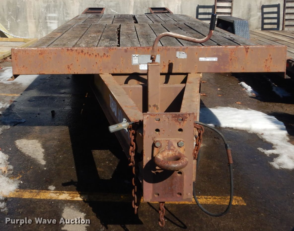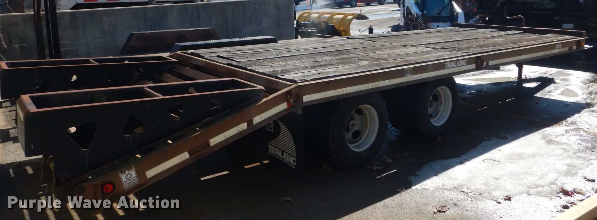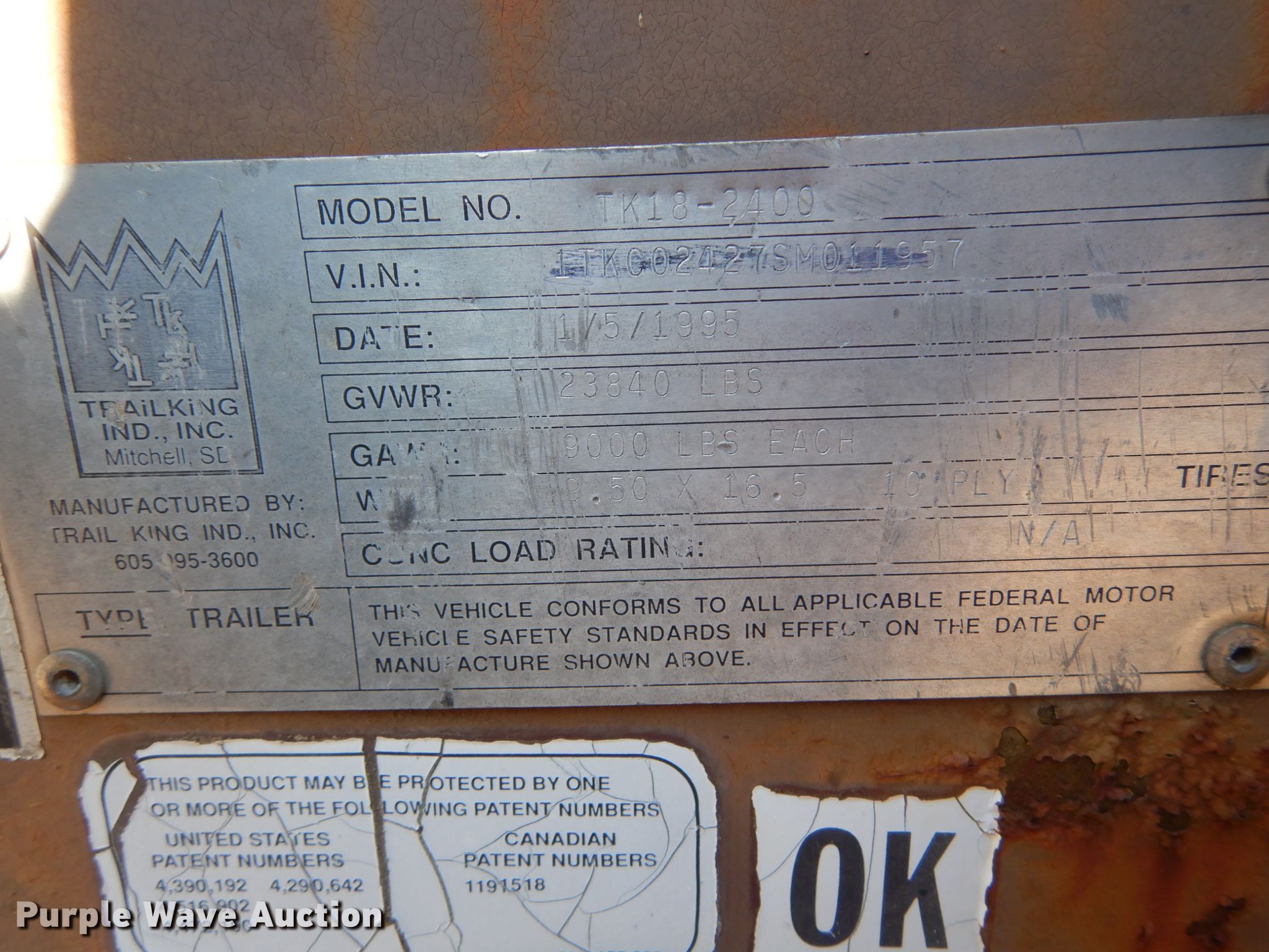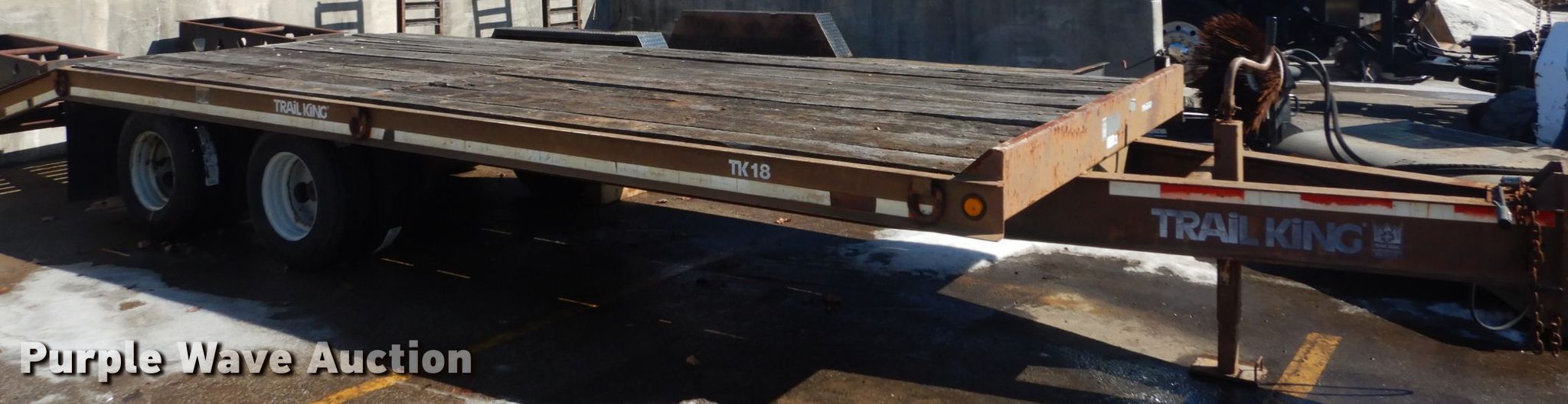 Purple Wave is selling a used Equip. Trailer in Illinois. This item is a 1995 Trailer King TK18 equipment trailer with the following: 30'L x 96"W overall, 19'L x 96"W deck, 5' tail length, 36" deck height, 5'L ramp, Wood deck, Single leg landing gear, Spring suspension, Electric brakes, Tandem axle, Steel wheels, 9.50R16.5 tires, GVWR 23,840 lbs, GAWR 9,000 lbs