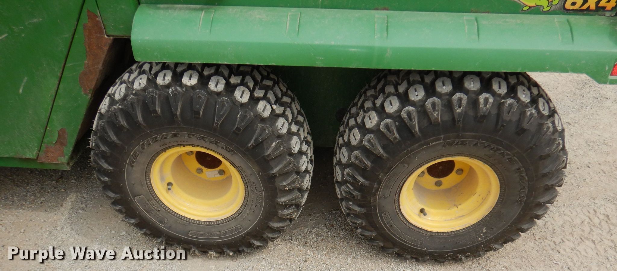 1999 John Deere 6X4 Gator utility vehicle. 2,458 hours on meter. Engine Fuel type: Gas. Transmission Automatic. Operators station Enclosed cab, Heat. Operational Dump bed 45" L x 52" W. Tires Front: 22.5x10-8, Rear: 25x13x9. Kansas non-highway title. W006X4X043597. Garnett, KS 66032