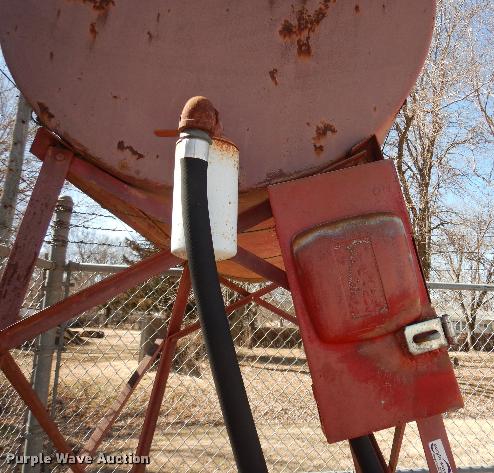 Purple Wave is selling a used Fuel and Lube in Kansas. This item is a Fuel tank with the following: 5' x 3', 5'W x 7'H stand