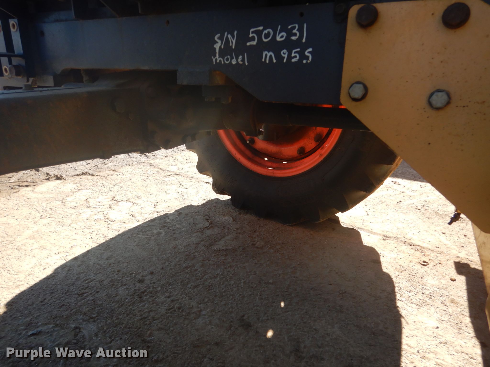 Kubota M95S MFWD tractor. 3,433 hours on meter, Serial: 50631. Engine Kubota , Cylinders: 4, Fuel type: Diesel. Transmission Synchro, 32F - 32R, Left-hand reverser. Operators station AC, Heat. Operational PTO: 540, Three point Top link, Seven pin outlet, Hydraulic remote sets Mid-mount: 2, Rear: 1, Side boom rotary mower Diamond , Width: 60", Serial: 2175. Tires Front: 13.6-24, Rear: 18.4-34. Notes Possible ignition or electrical issues. Split Rock Township. 1101 S Stoakes Ave. Sioux Falls, SD 57110