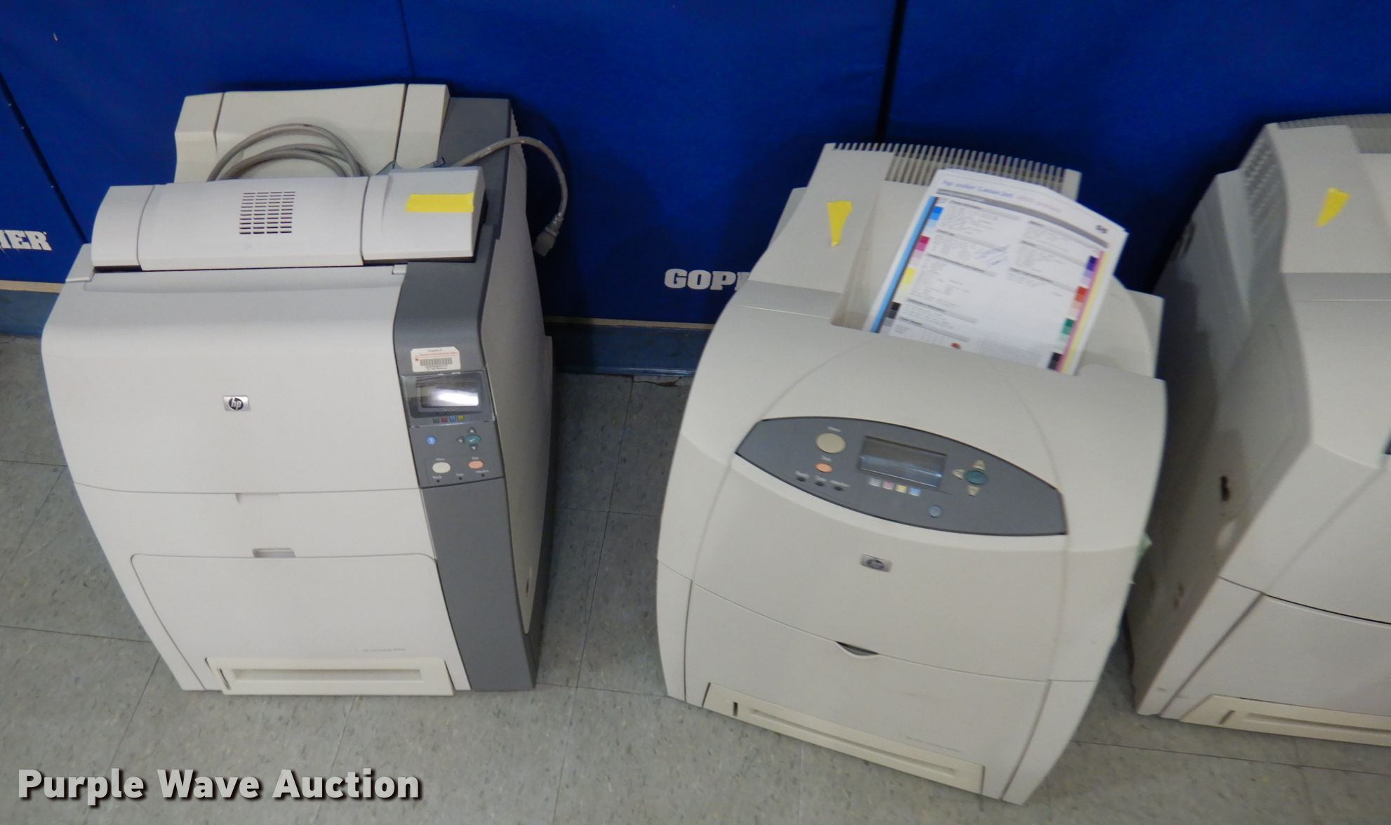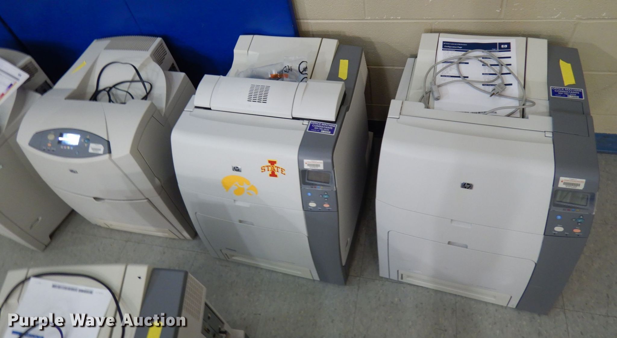 Purple Wave is selling a used Copy or Printing Machine in Iowa. This item is a (9) HP printers with the following: Model 9050DN, (4) model LaserJet 4700N, (2) model LaserJet 4650N, (2) model LaserJet 4600DN