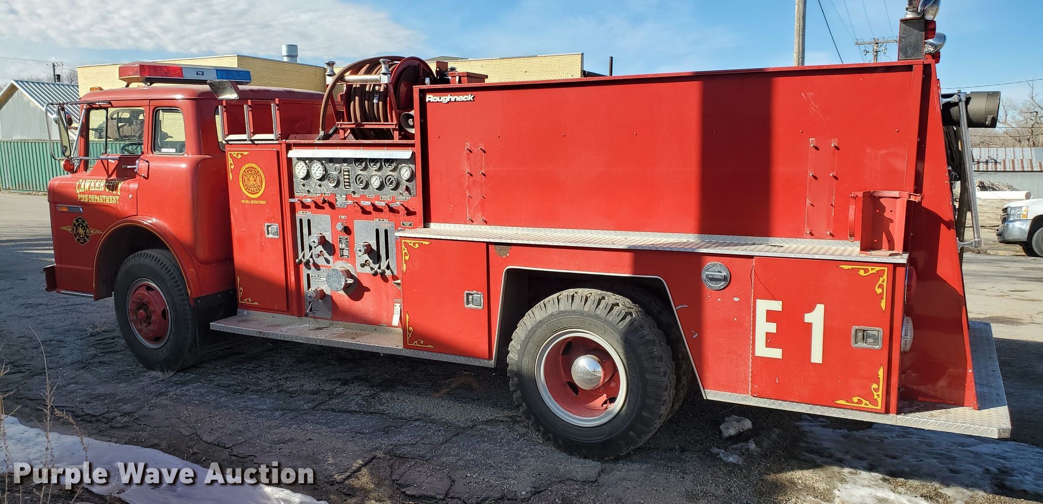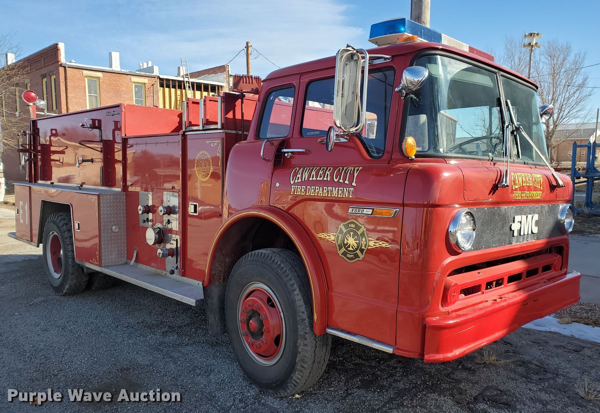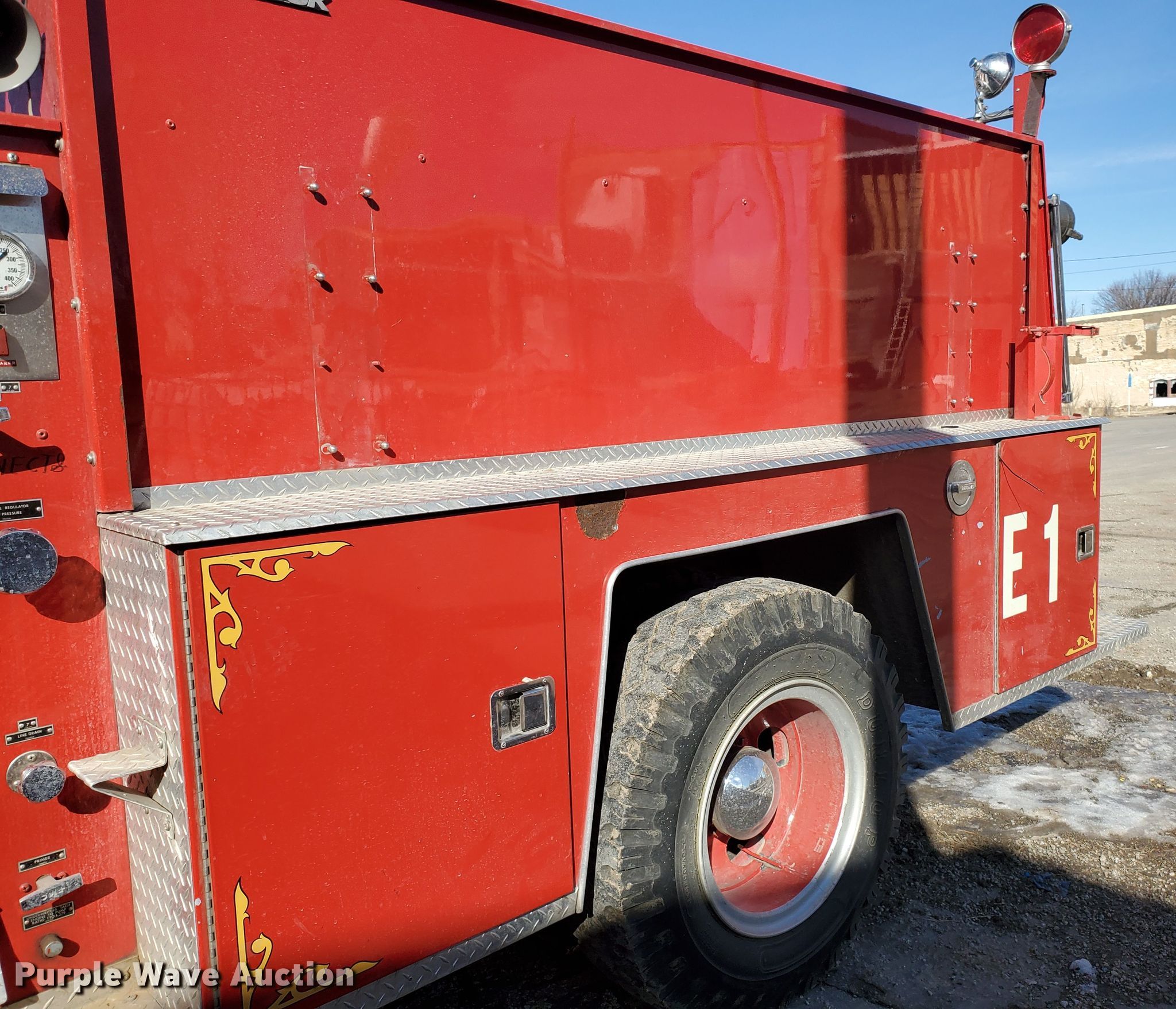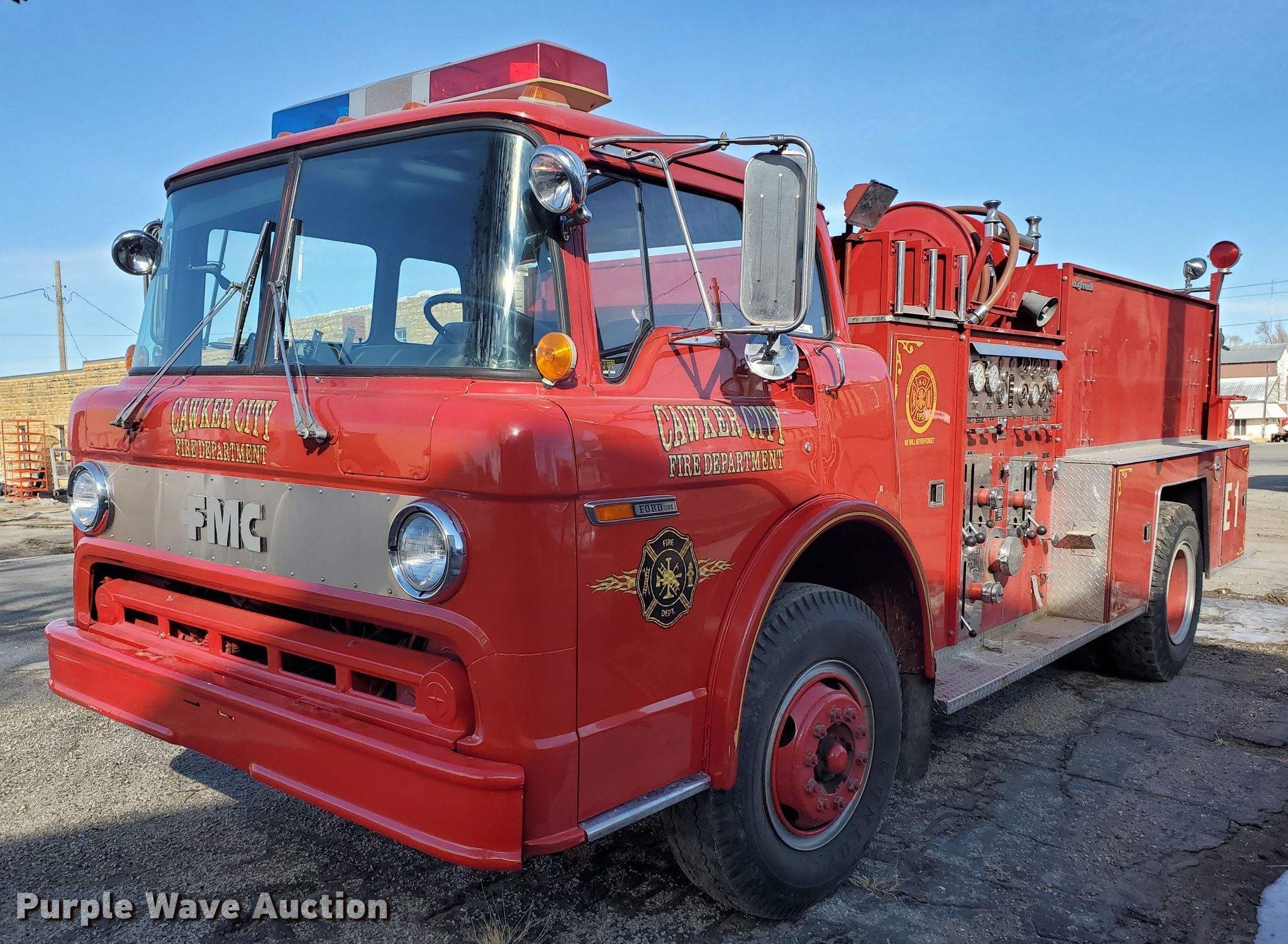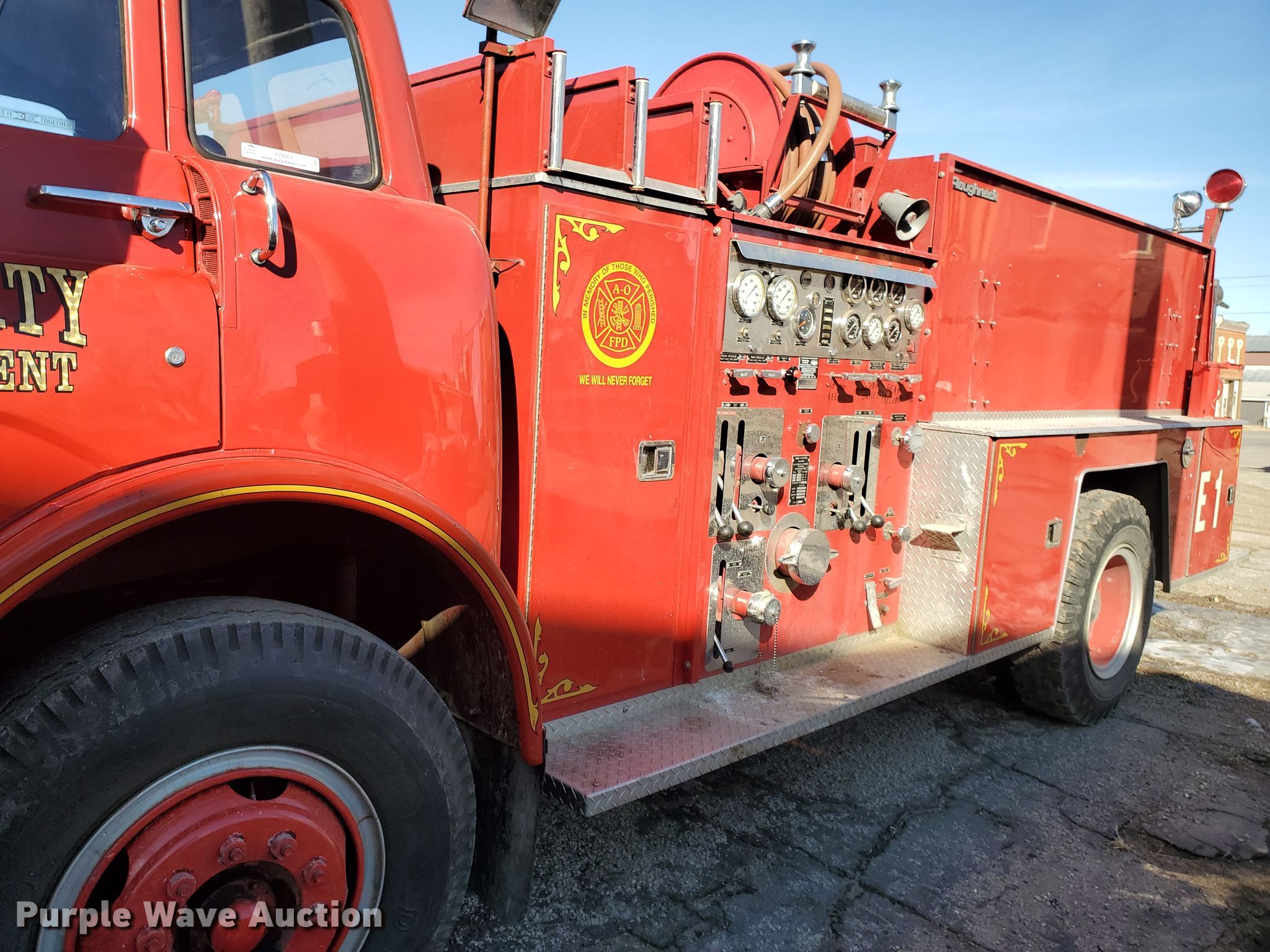 Purple Wave is selling a used Fire Truck or Emergency Vehicle in Kansas. This item is a 1985 Ford 800 pumper fire truck with the following: 15,876 miles on odometer