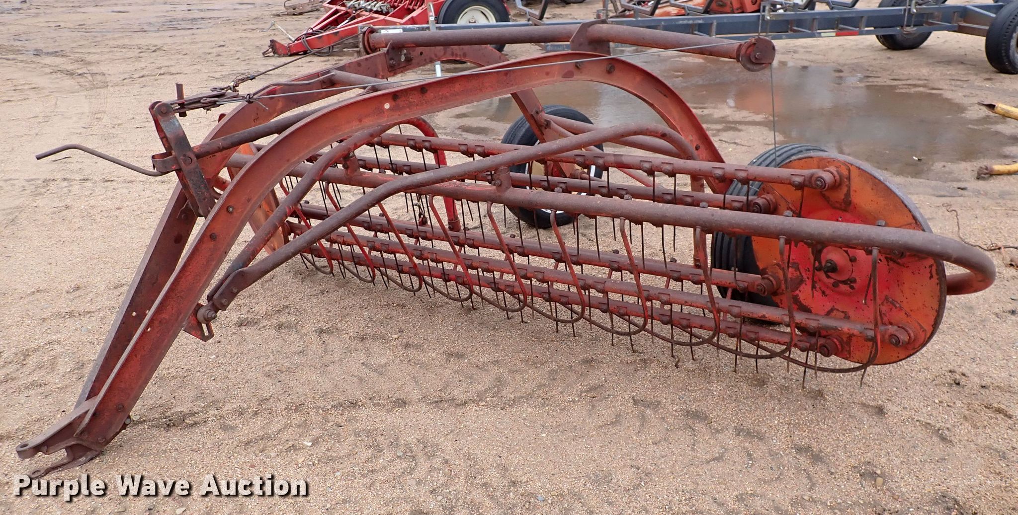 Purple Wave is selling a used Hay Rake in Kansas. This item is a Massey-Ferguson 36 hay rake with the following: 10' work width, 9.5L-15SL tires, Serial 422018709