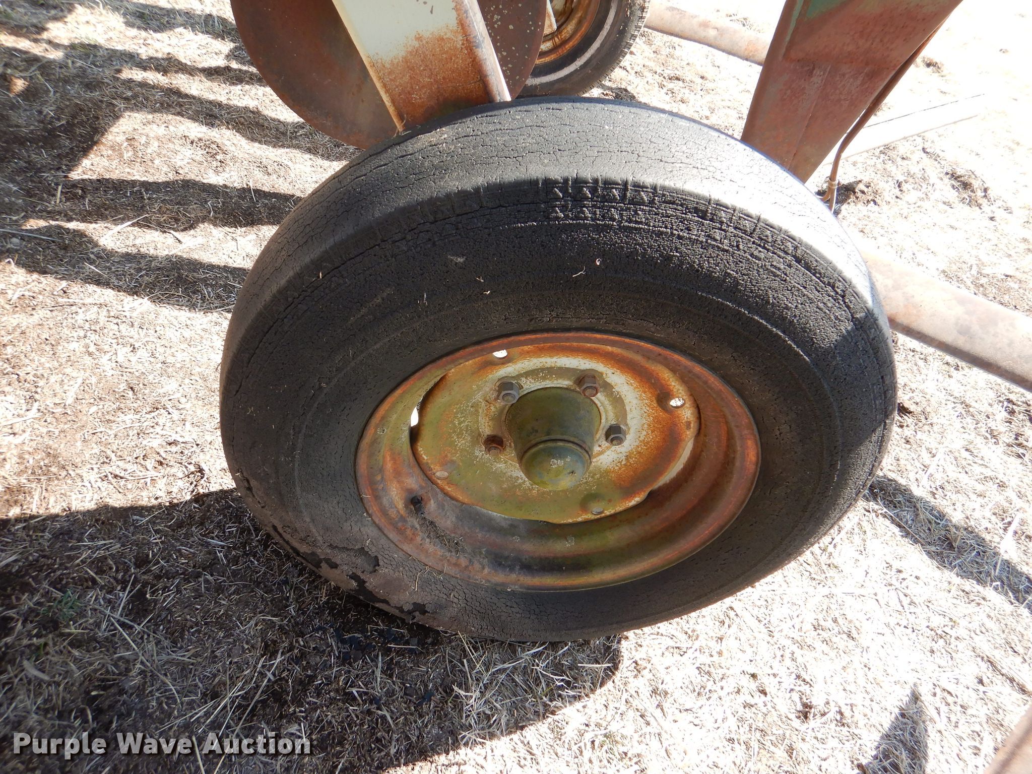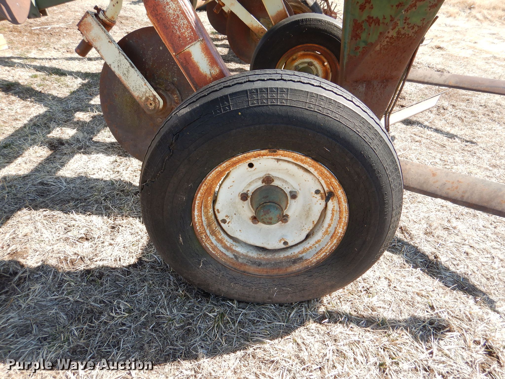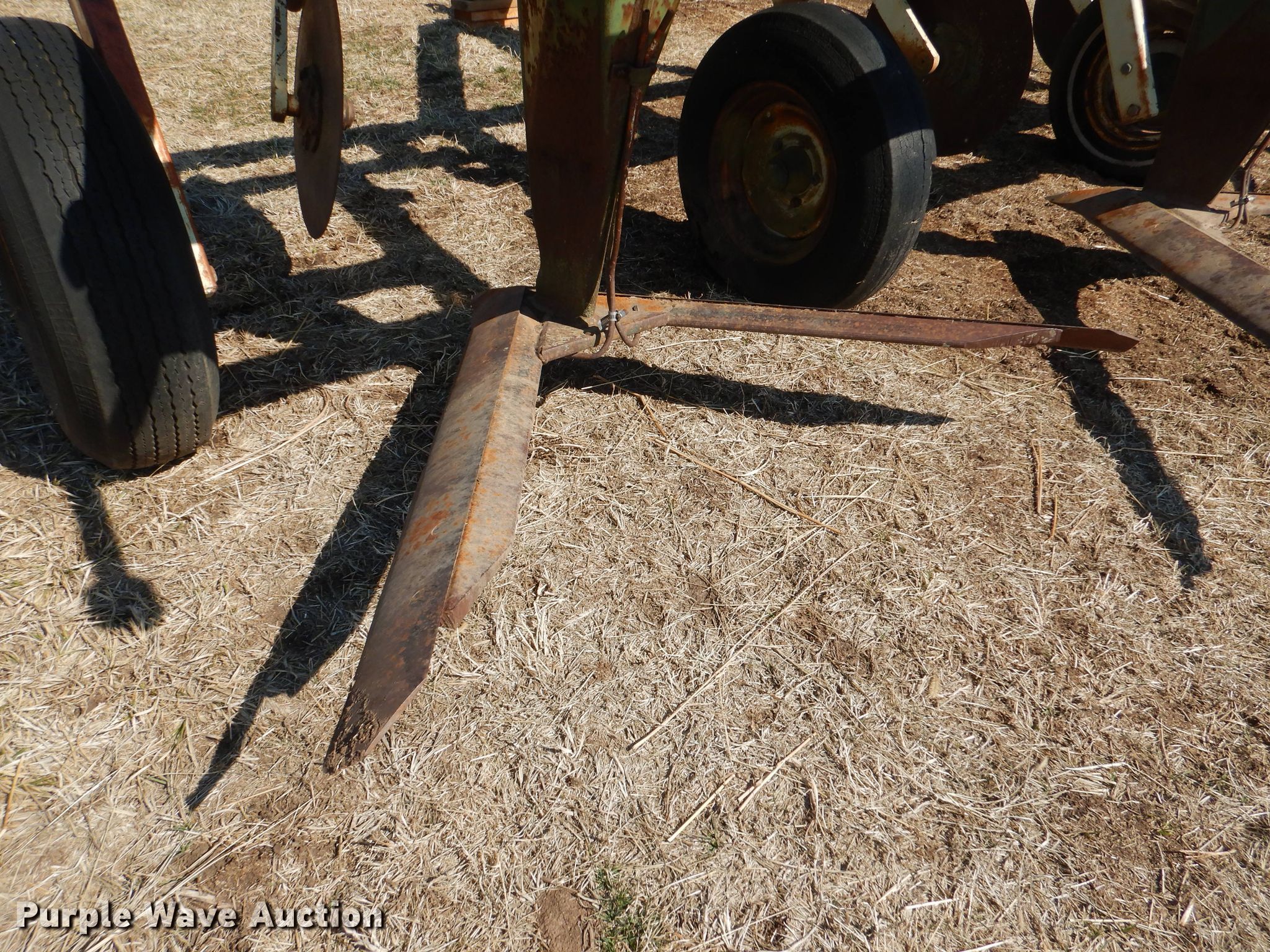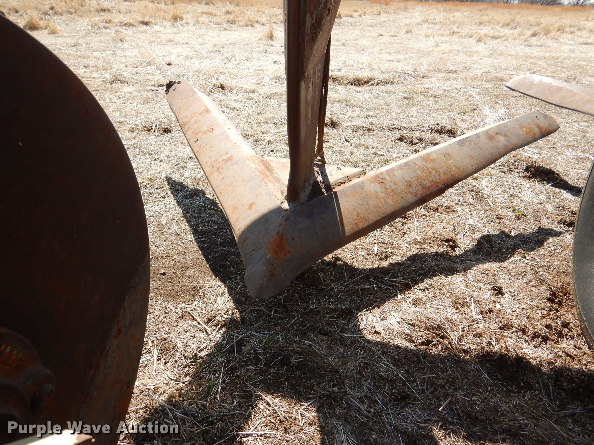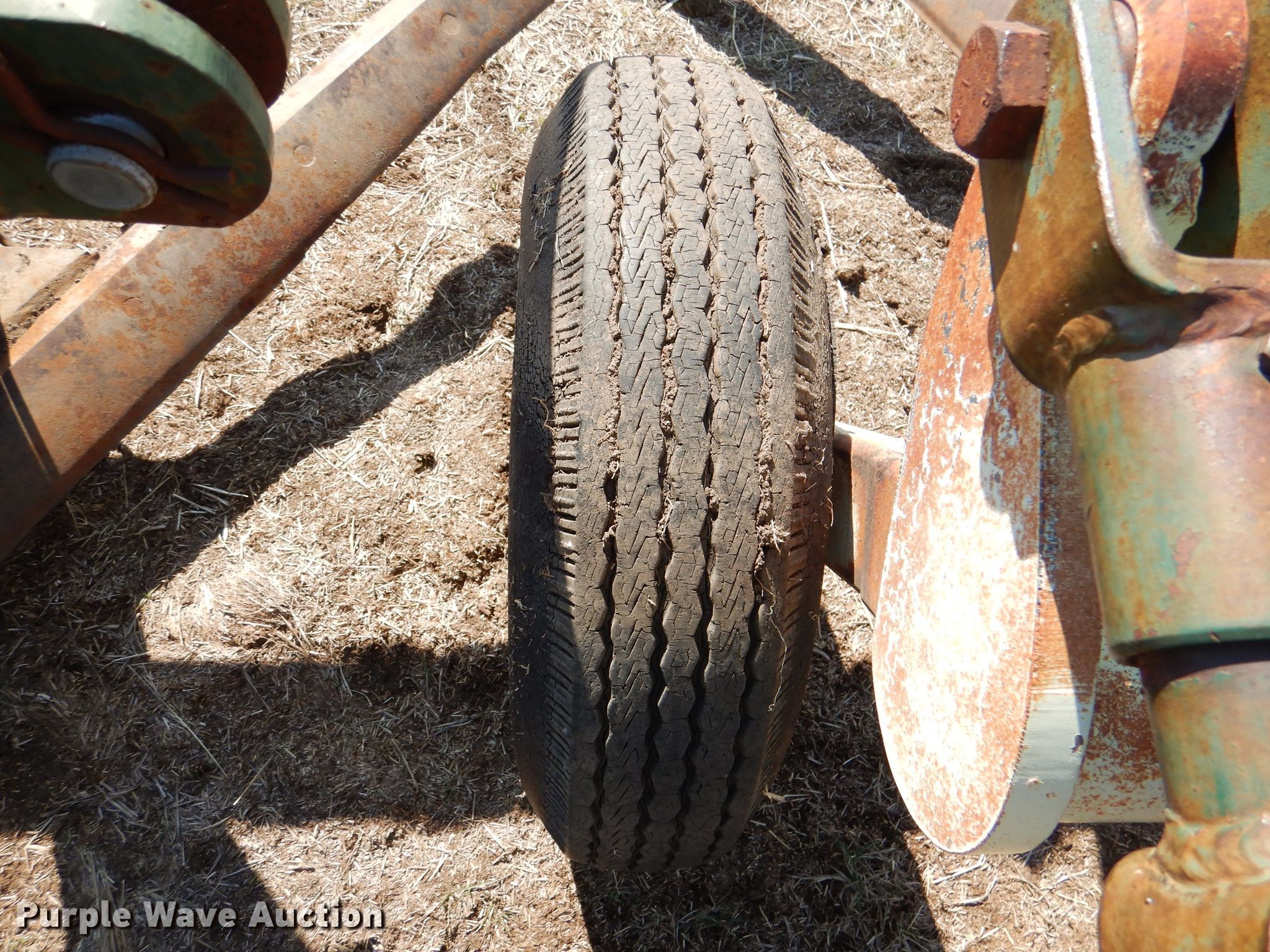 Flex King sweep plow. Overall width: 15', Serial: 1887. Operational Shanks: 3, Sweep width: 5', Blade diameter Front: 22". Tires Tire size: 8.55-14. Becca Farms. Sawyer, KS 67134