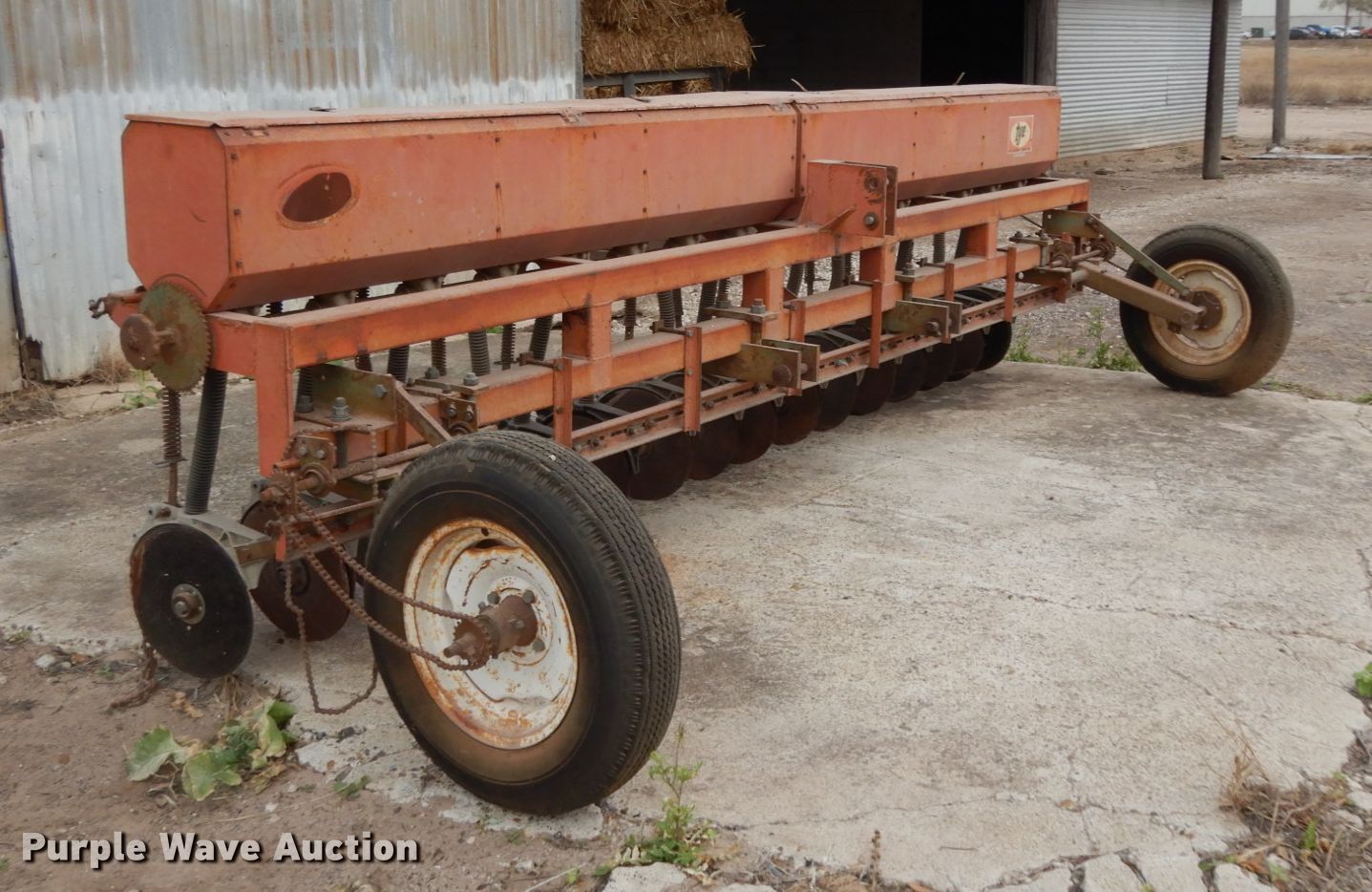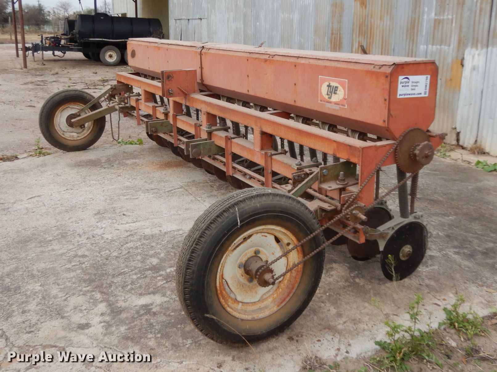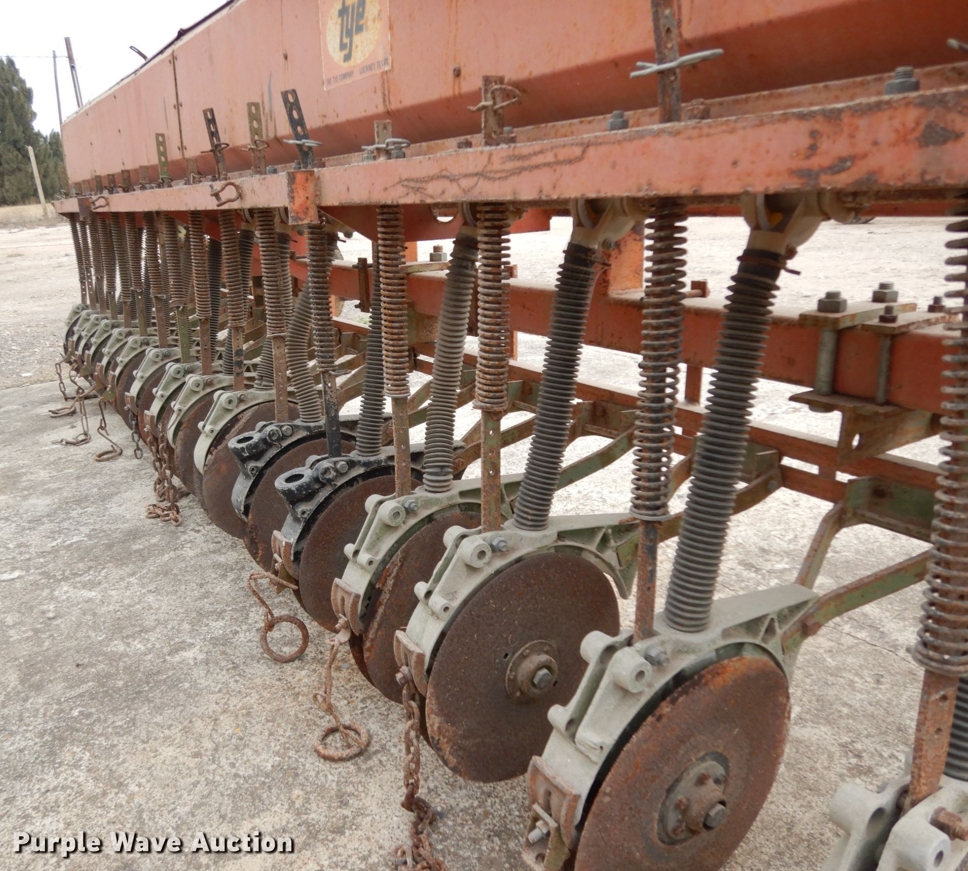 Purple Wave is selling a used Grain Drill or Seeder in Texas. This item is a Tye no-till grain drill with the following: Width: 13', Row units: 16, Row spacing: 10"