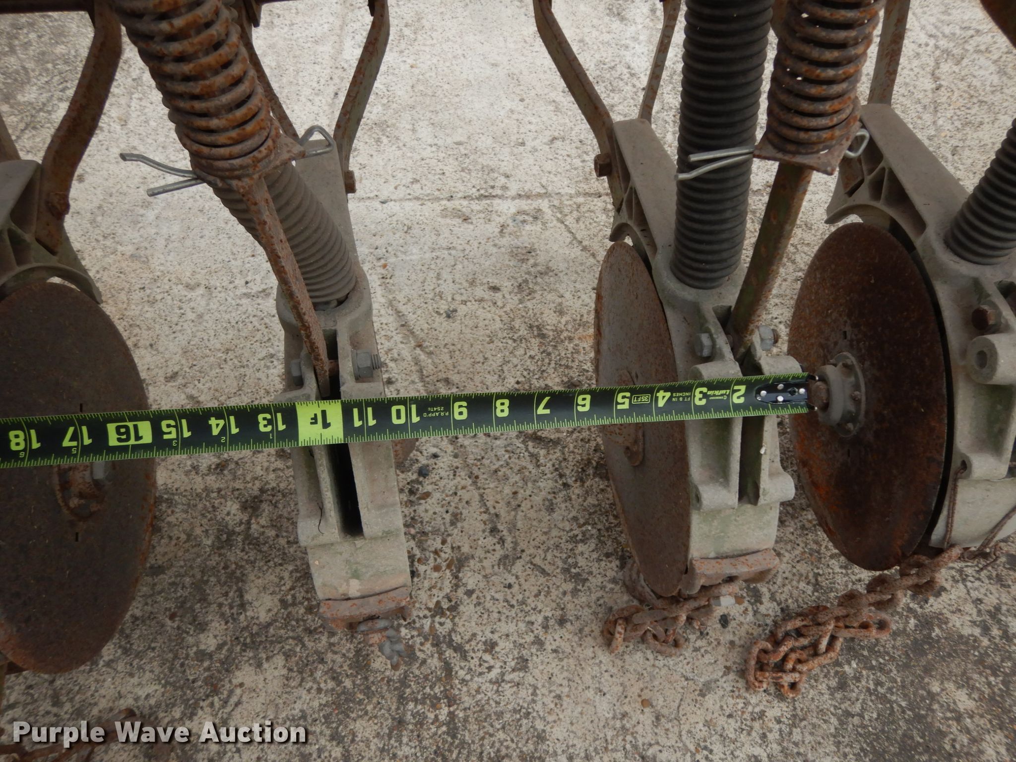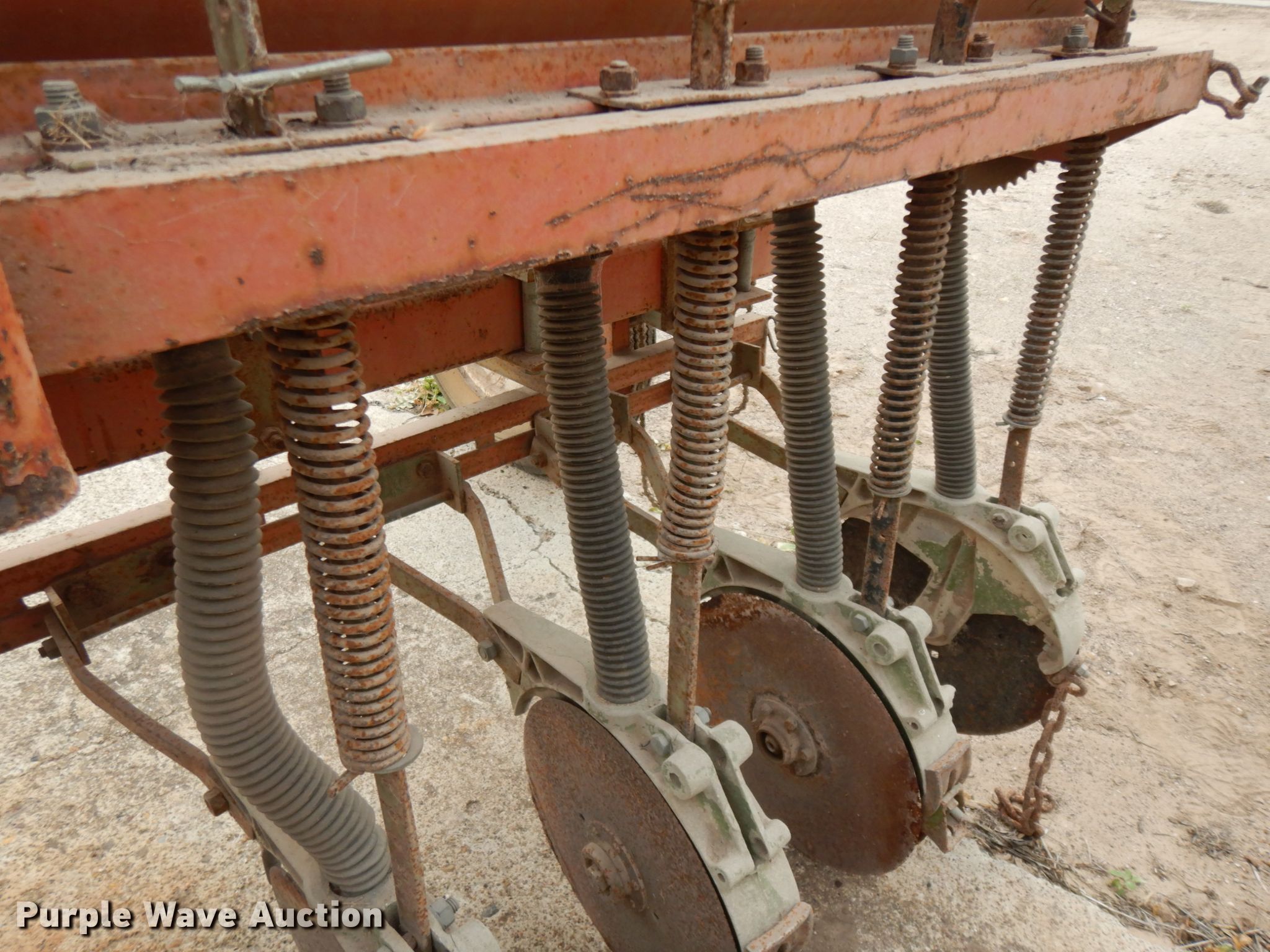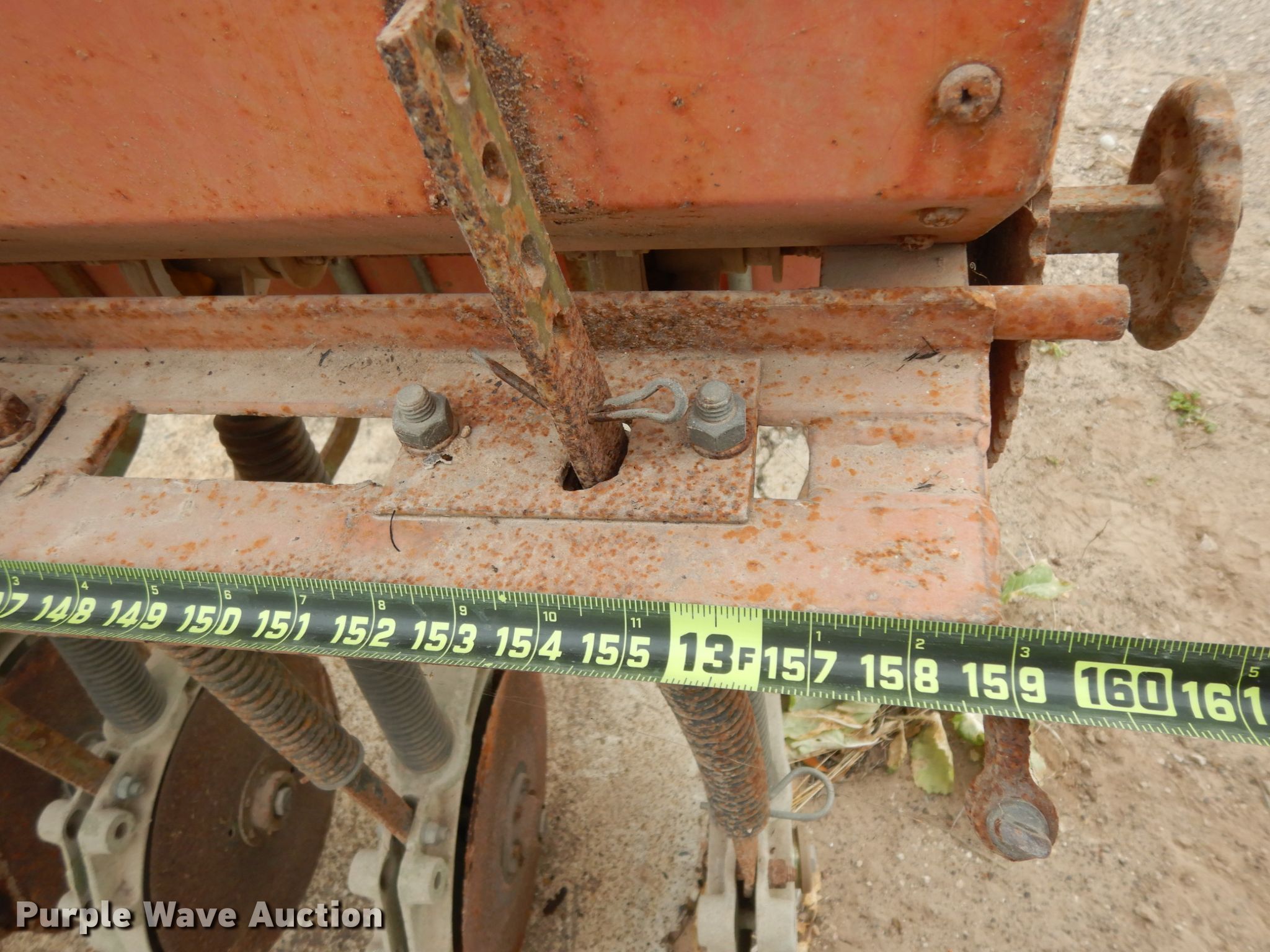 Purple Wave is selling a used Grain Drill or Seeder in Texas. This item is a Tye no-till grain drill with the following: Width: 13', Row units: 16, Row spacing: 10"