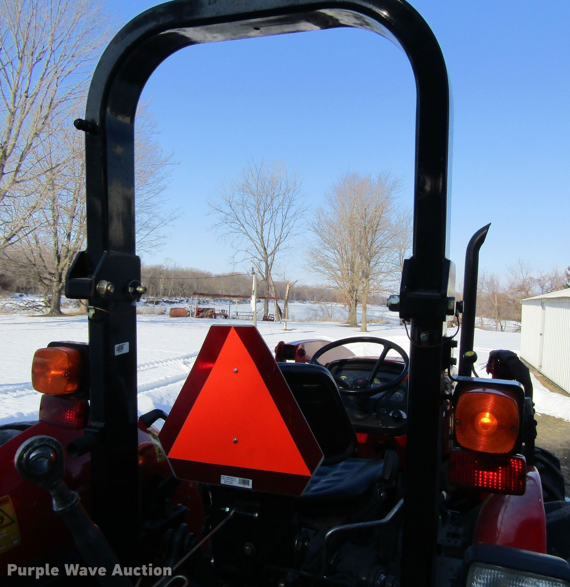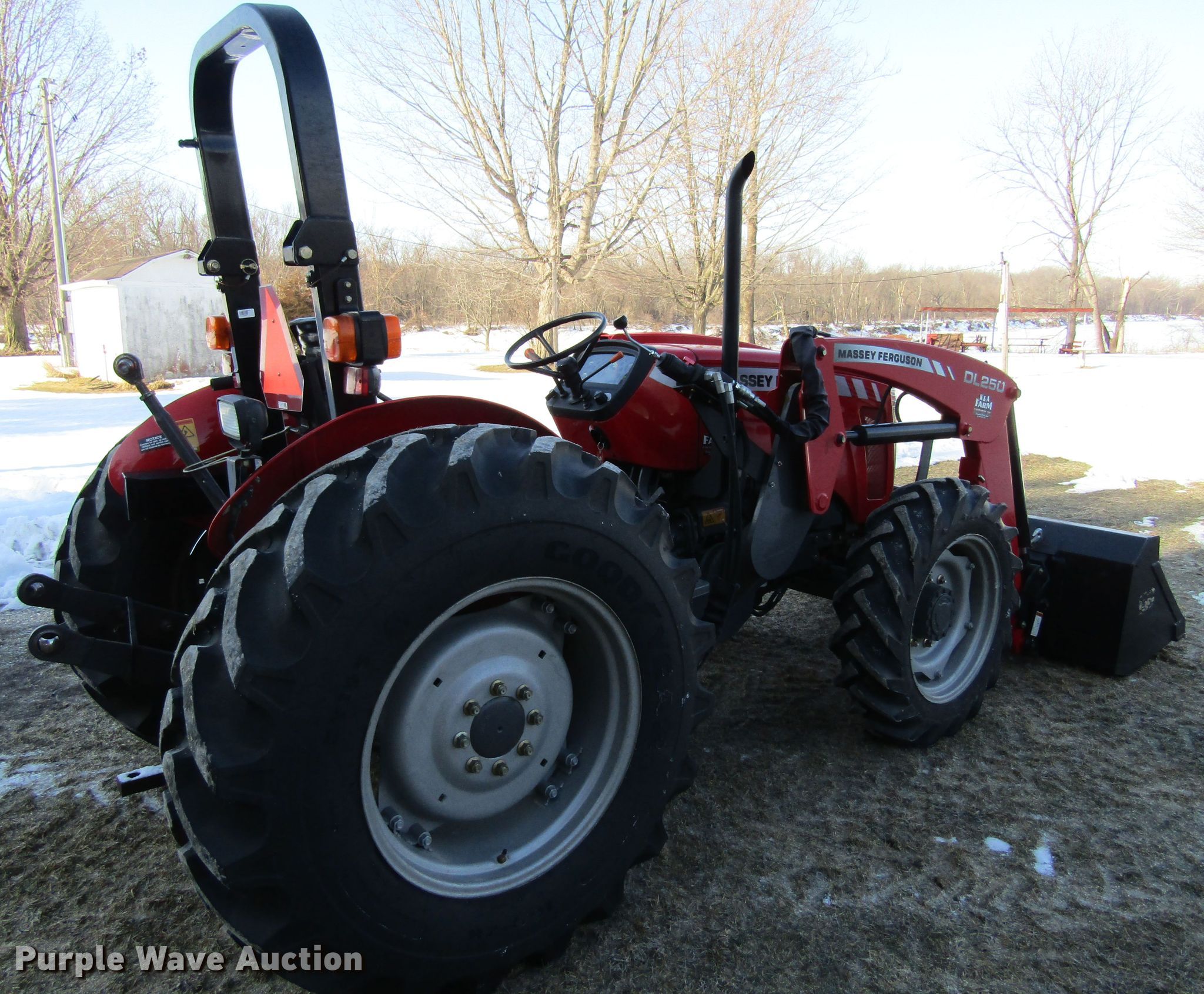 2012 Massey-Ferguson 2635 MFWD tractor. 693 hours on meter, Serial: EX723749. Engine Simpson, Cylinders: 4, Fuel type: Diesel. Transmission Manual, 8F - 2R, Differential lock. Operational PTO: 540, Three point, Loader Massey-Ferguson DL250, Controls: Joystick, Bucket Width: 72".. Tires Front: 9.5-24, Rear: 16.9-28, Wheelbase: 84". 4000 Wildlife Rd. Center Point, IA 52213