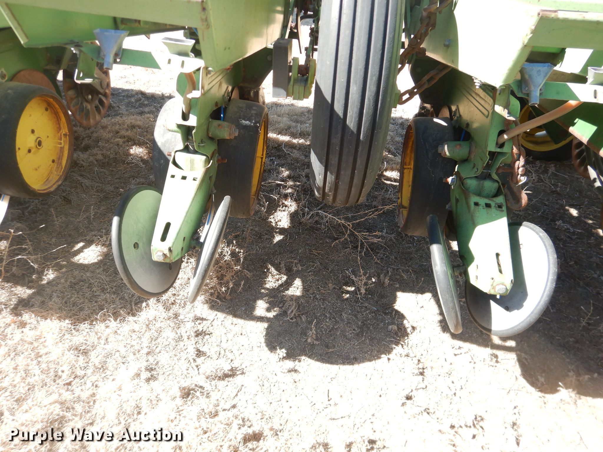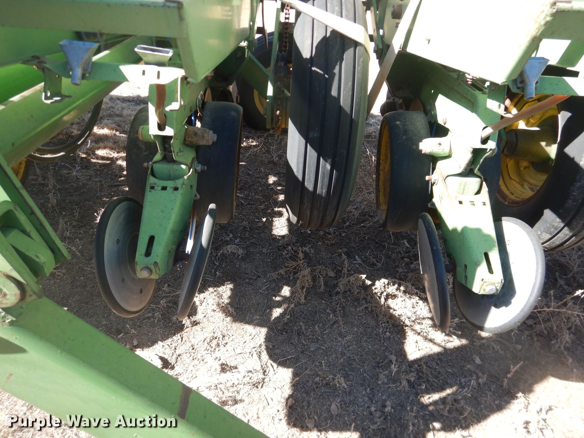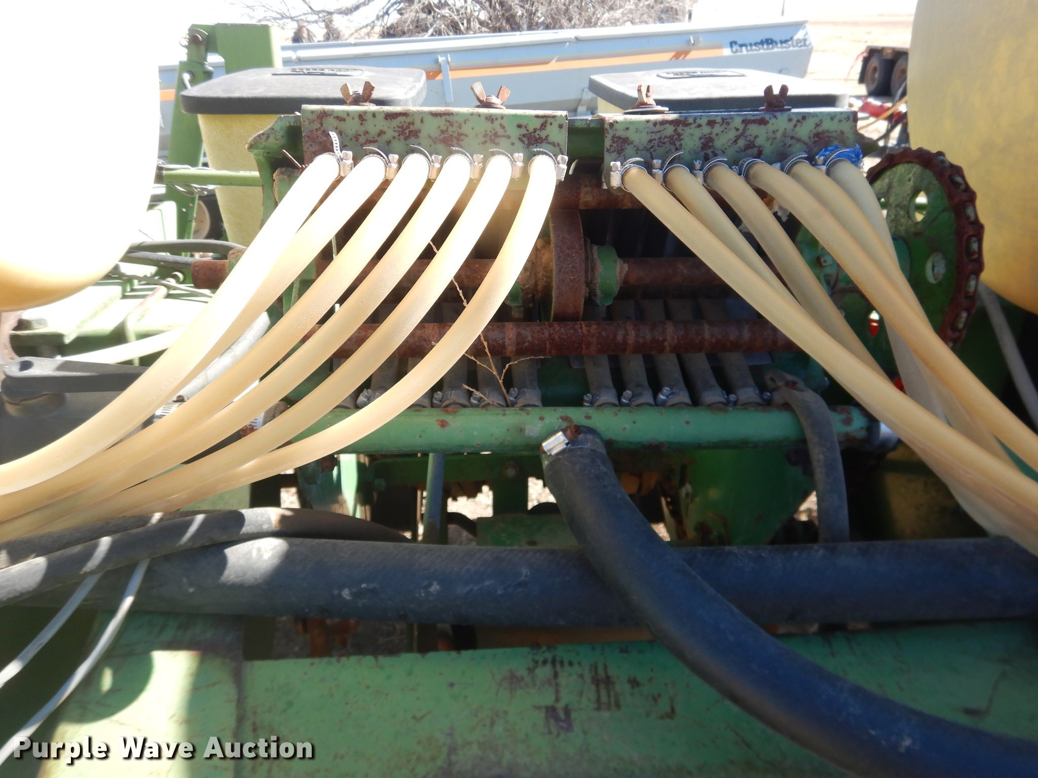 John Deere 7000 planter. Width: 30', Row units: 12, Row spacing: 30", Serial: 089494A. Operational Seed delivery Individual seed hoppers, Row units Meter drive: Ground, Down pressure: Spring, Disk openers: Double, Gauge wheels: Double, Closing system: Double Type: Rubber, Fertilizer/ insecticide Fertilizer Liquid capacity: 360 gallons.. Tires Transport tire size: 11L-15 Quantity: 2, Drive/outside tires Quantity: 7. Notes (12) additional seed hoppers, (12) additional corn fingers, (12) additional milo seeders. L5M Land and Cattle Company. Holly, CO 81047