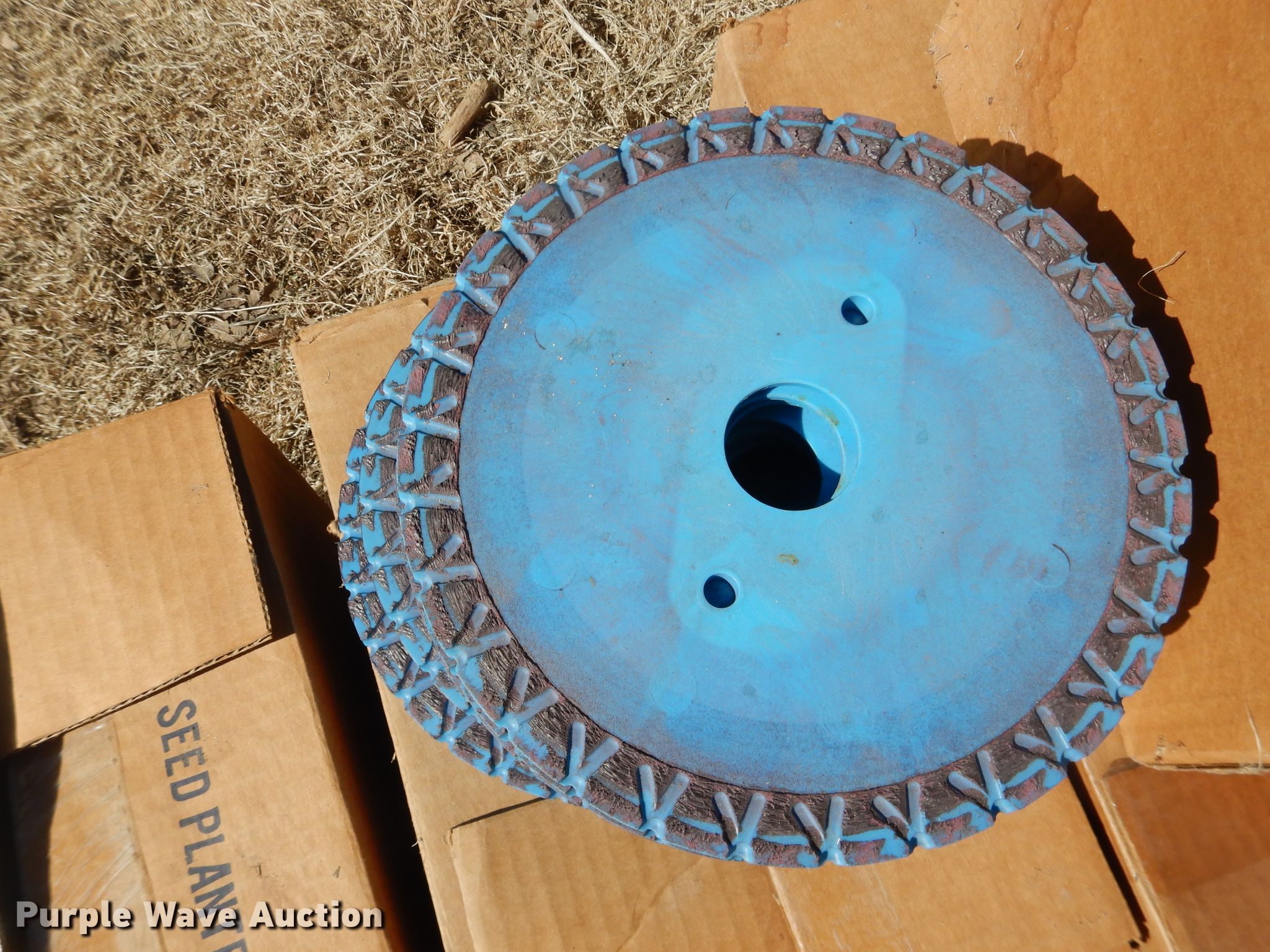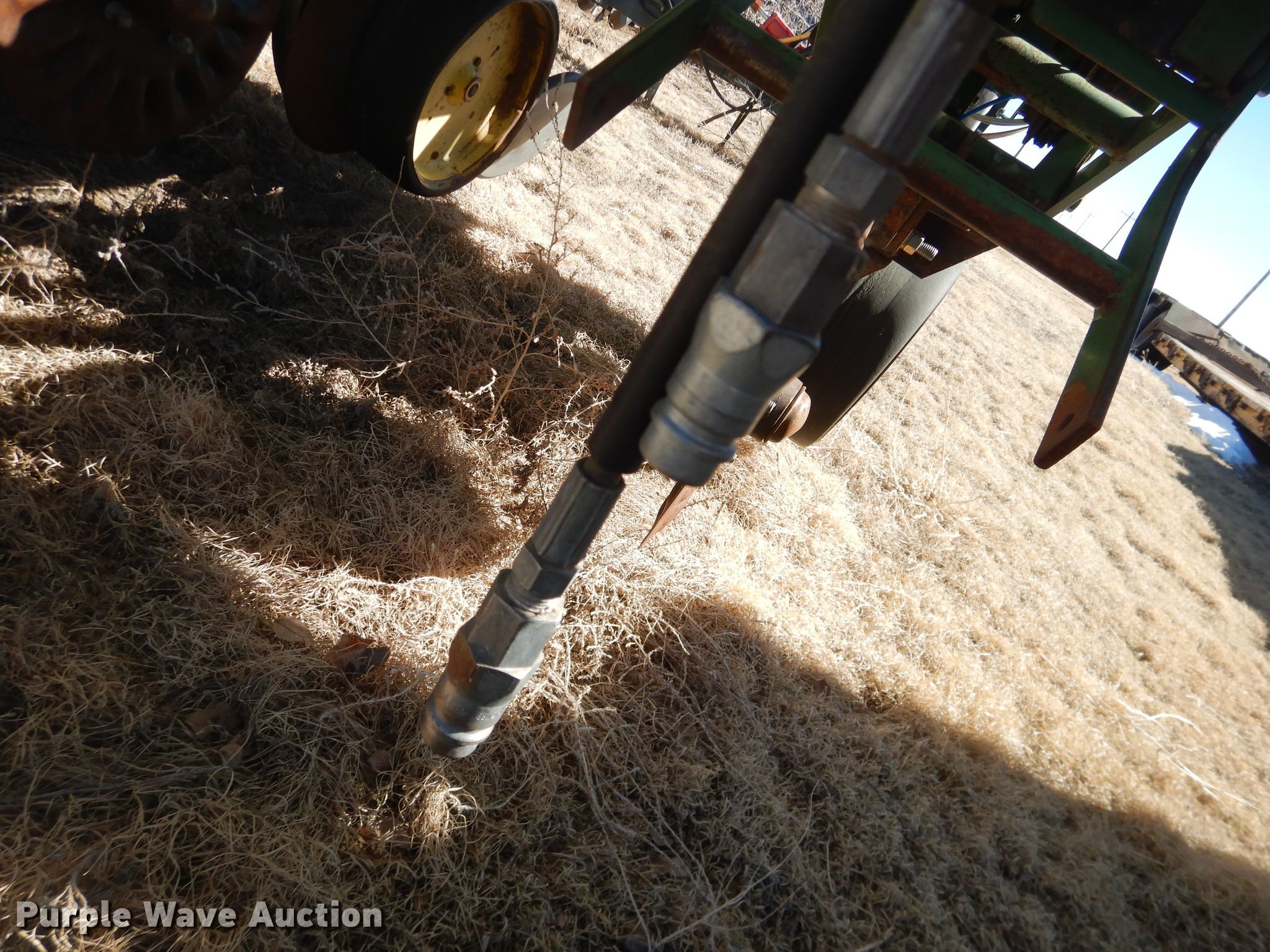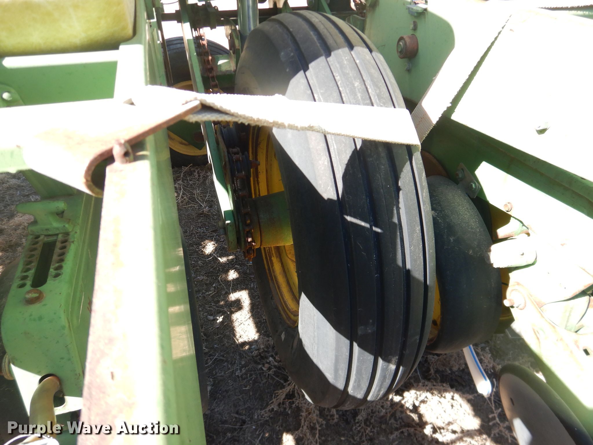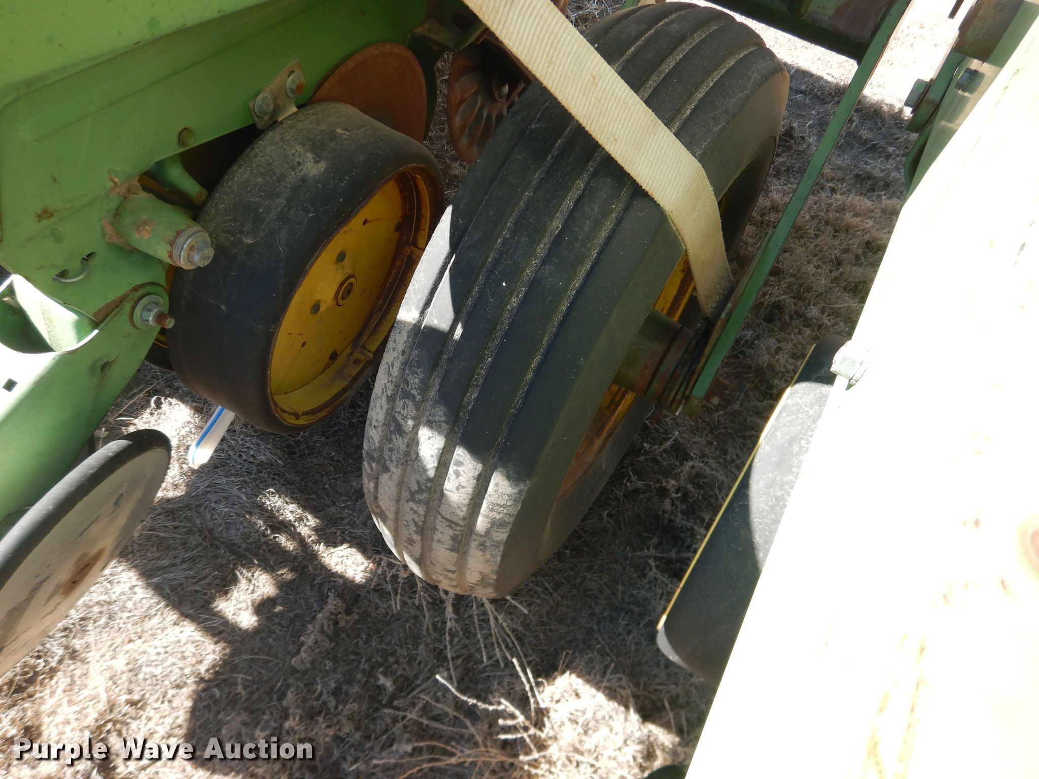 John Deere 7000 planter. Width: 30', Row units: 12, Row spacing: 30", Serial: 089494A. Operational Seed delivery Individual seed hoppers, Row units Meter drive: Ground, Down pressure: Spring, Disk openers: Double, Gauge wheels: Double, Closing system: Double Type: Rubber, Fertilizer/ insecticide Fertilizer Liquid capacity: 360 gallons.. Tires Transport tire size: 11L-15 Quantity: 2, Drive/outside tires Quantity: 7. Notes (12) additional seed hoppers, (12) additional corn fingers, (12) additional milo seeders. L5M Land and Cattle Company. Holly, CO 81047