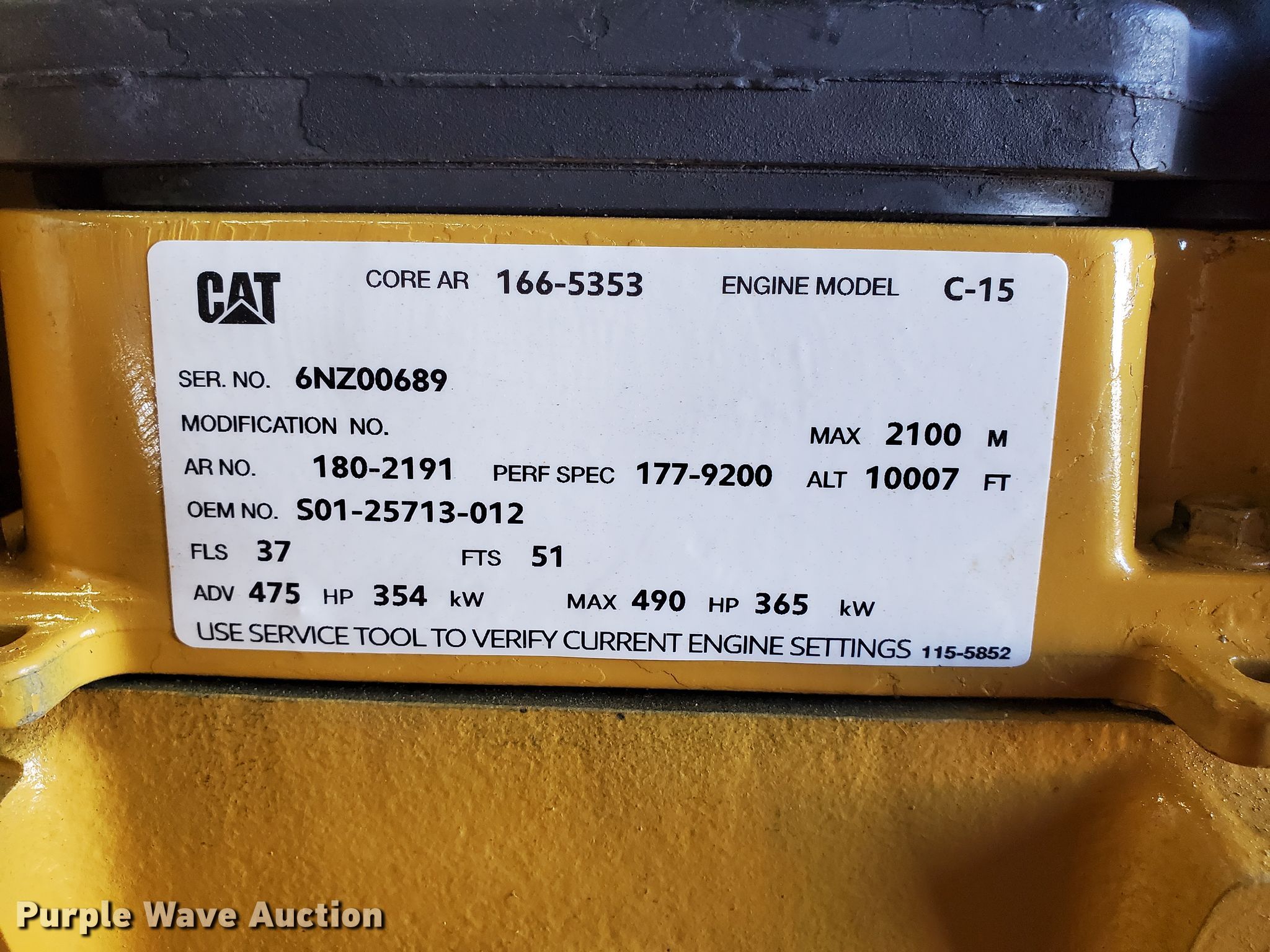 Purple Wave is selling a used Engine in Kansas. This item is a Caterpillar C15 engine with the following: Displacement: 14.6L, Cylinders: 6, Fuel type: Diesel, HP: 475, Serial 6NZ00689