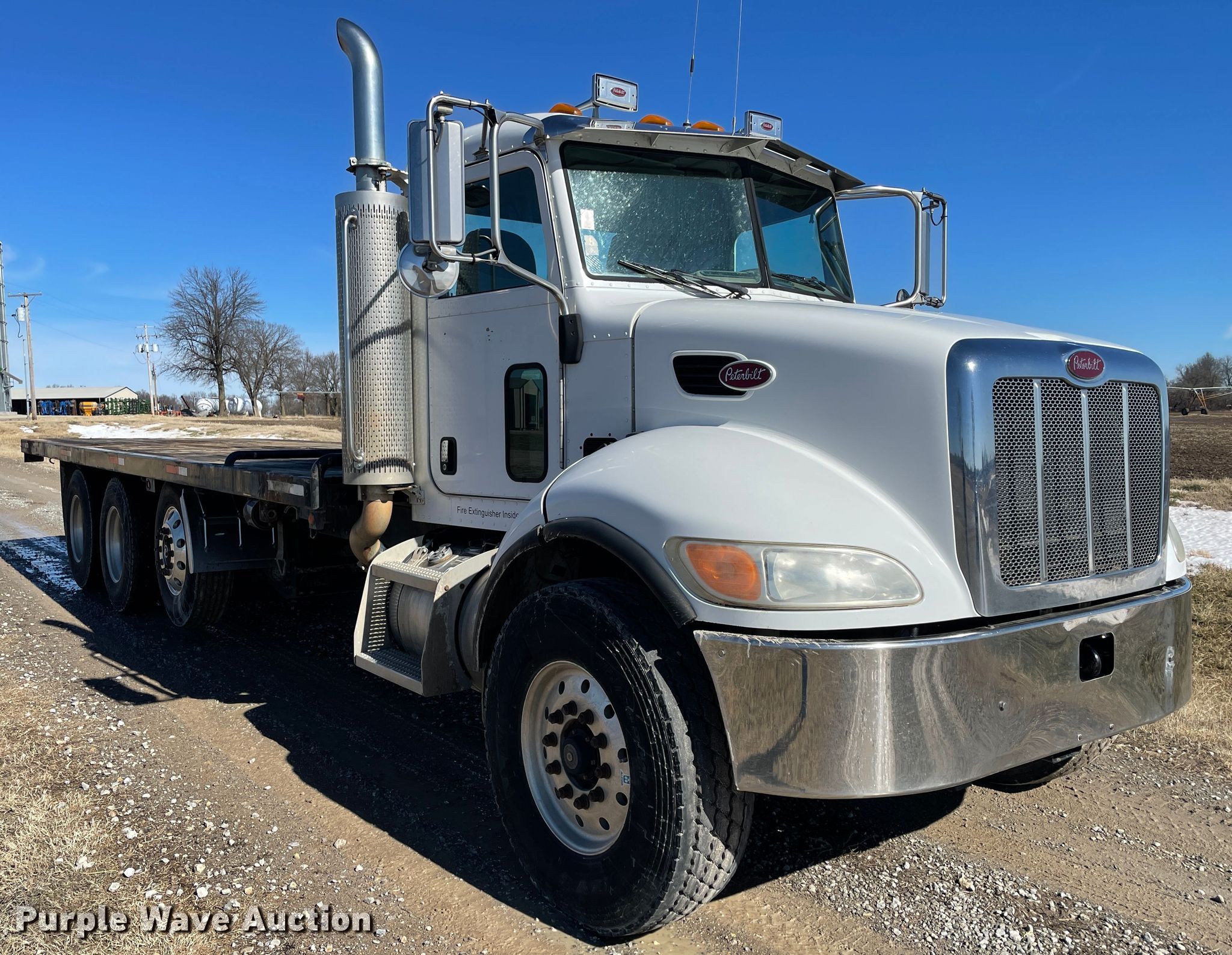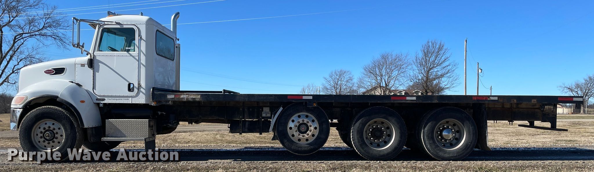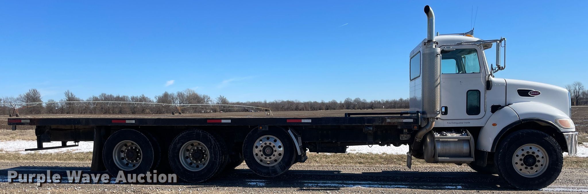 Purple Wave is selling a used Flat Bed Truck in Kansas. This item is a 2006 Peterbilt 335 flatbed truck with the following: 198,546 miles on odometer, Engine hours: 3,729