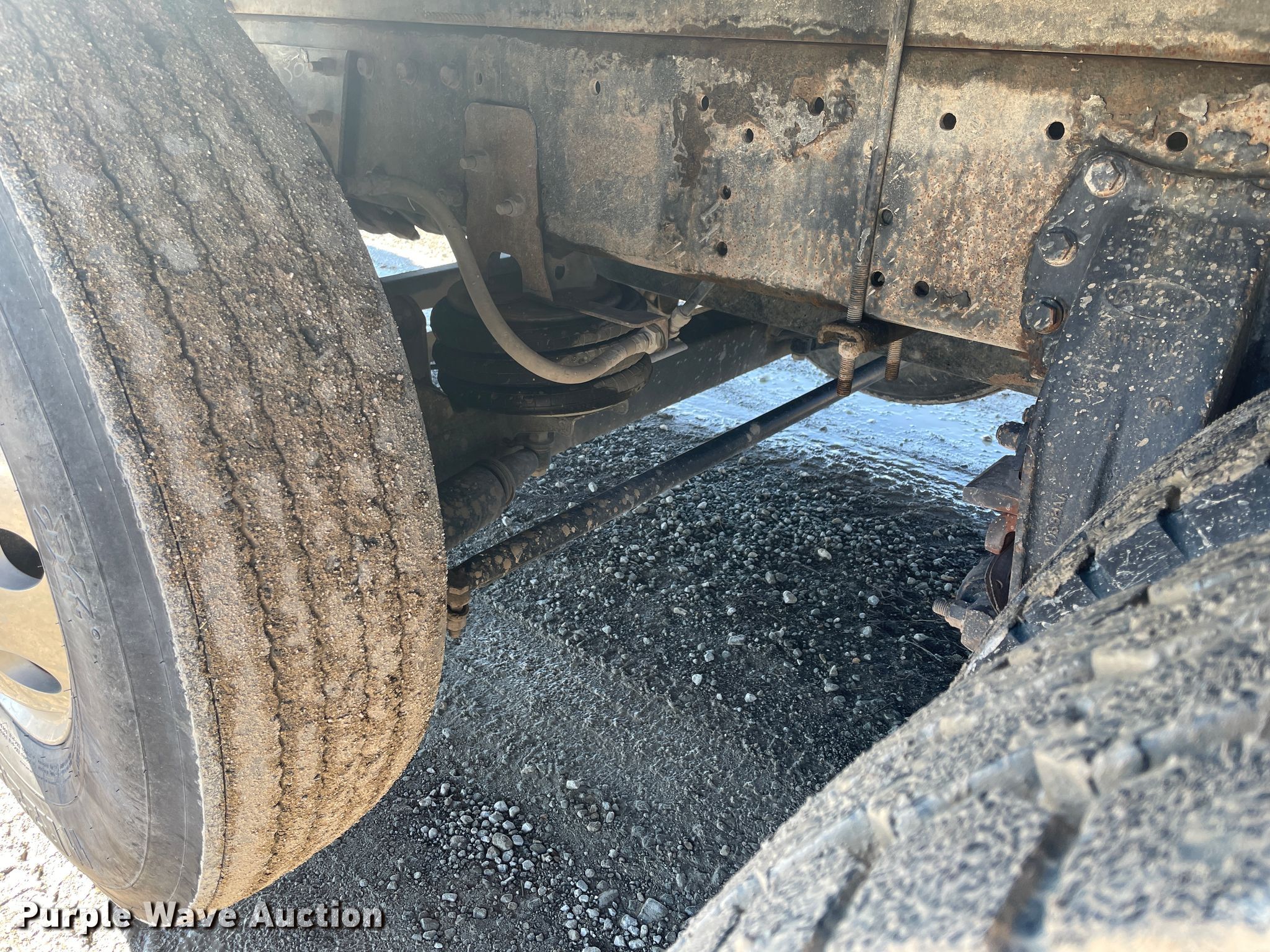2006 Peterbilt 335 flatbed truck. 198,546 miles on odometer, Engine hours: 3,729. Engine Caterpillar C7, Displacement: 7.2L, Cylinders: 6, Fuel type: Diesel. Transmission Manual, Speed: 9. Chassis Axles: Triple, Pusher axle Steerable, Suspension: Spring, Brakes: Air, PTO, GVWR: 58,000 lbs. Interior AC, Heat, Cruise control. Operational Flatbed Length: 26', Width: 102". Tires Front: 315/80R22.5, Rear: 11R22.5. Kansas title. 2NPLLD0X96M635571. Hutto Grain and Livestock Inc. 6663 SE Messer Rd. Galena, KS 66739