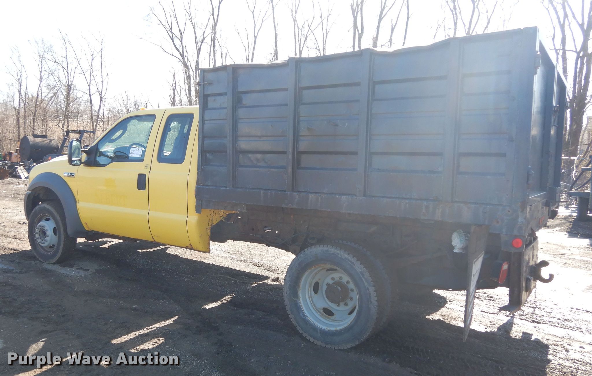 Purple Wave is selling a used Construction Dump Truck in Illinois. This item is a 2005 Ford F450 flat dump bed truck with the following: 127,042 miles on odometer