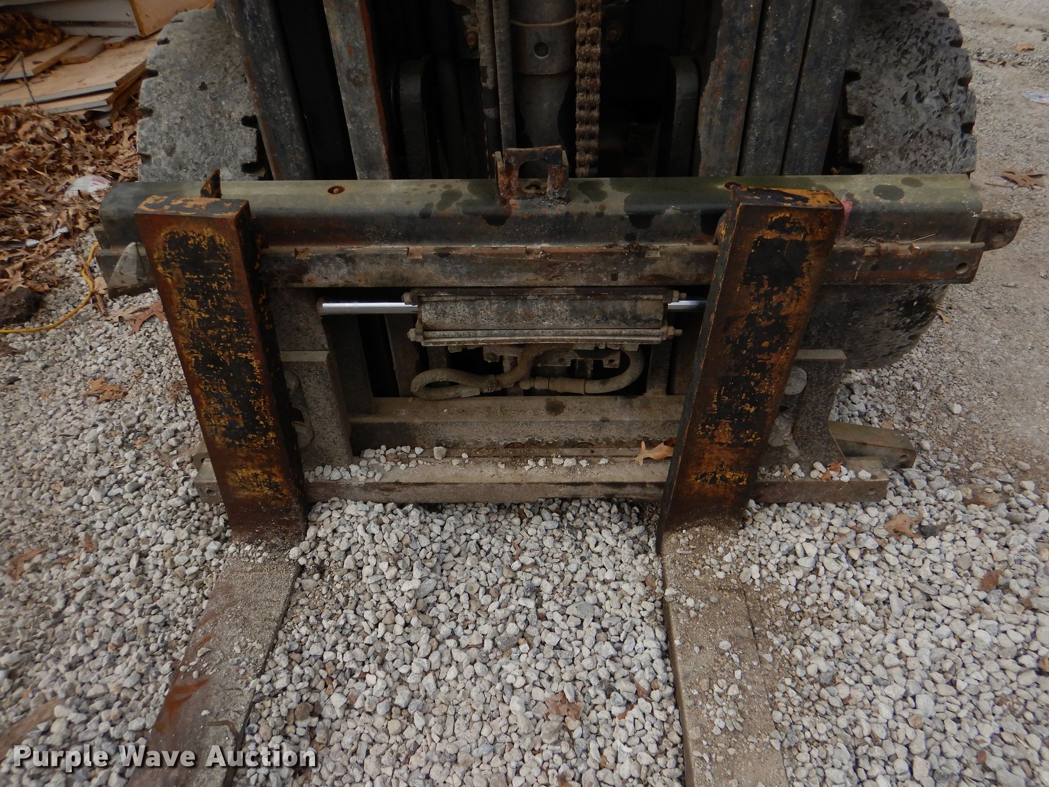 Hyster H50XM forklift. Unknown hours on meter, Serial: H177B21004X. Engine Cylinders: 6, Fuel type: LPG LP bottle: Not included. Transmission Powershift, 1F - 1R. Operators station OROPS. Operational Maximum lift capacity: 4,000 lbs, Maximum lift height: 189", Mast stages: 3, Side shift, Mast tilt, Fork length: 42". Tires Front: 7.00-12, Rear: 6.00-9. Notes Possible brake issue, Possible transmission issue. Tonganoxie, KS 66086