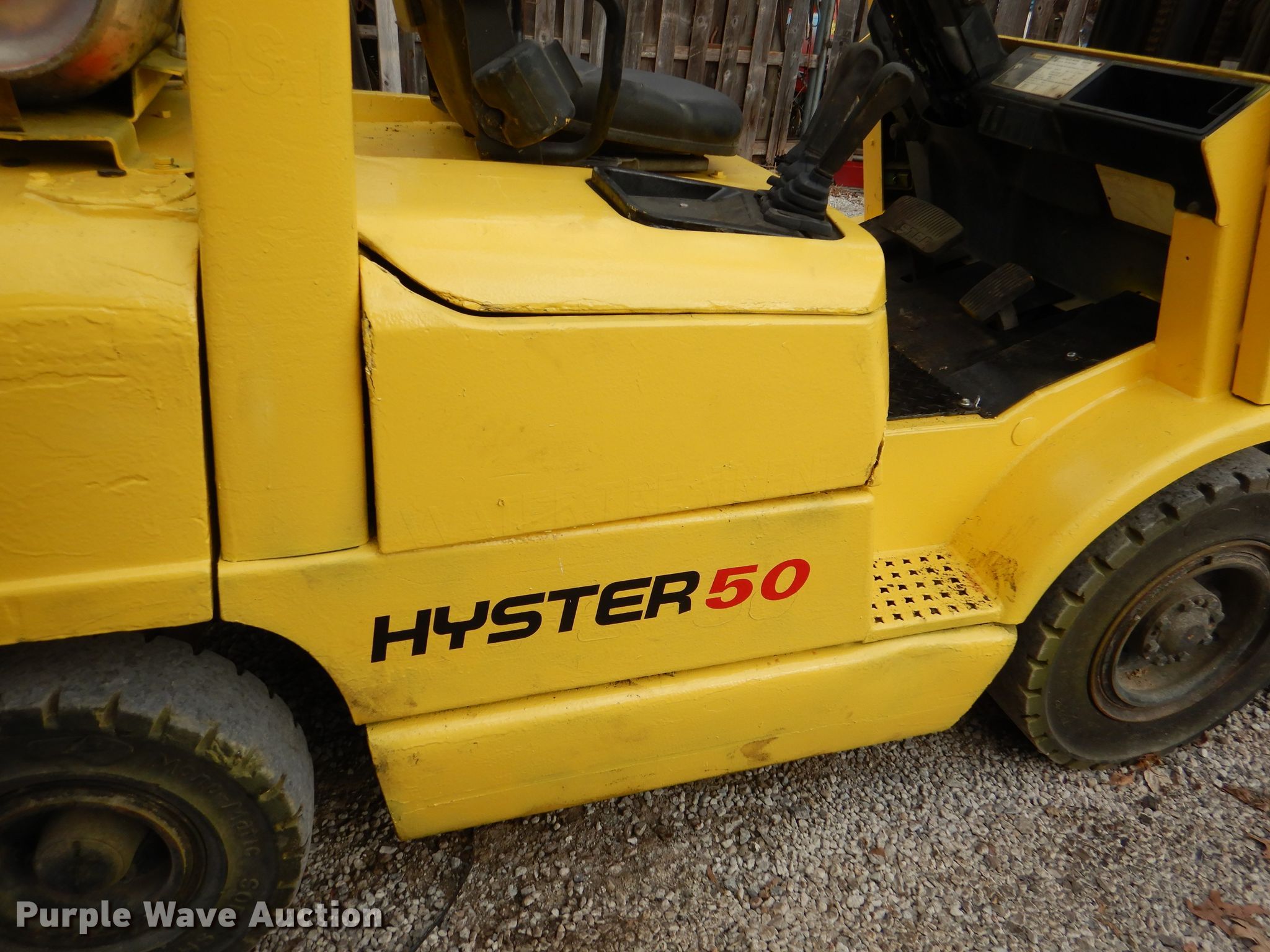 Purple Wave is selling a used Warehouse Forklift in Kansas. This item is a Hyster H50XM forklift with the following: Unknown hours on meter, Serial: H177B21004X