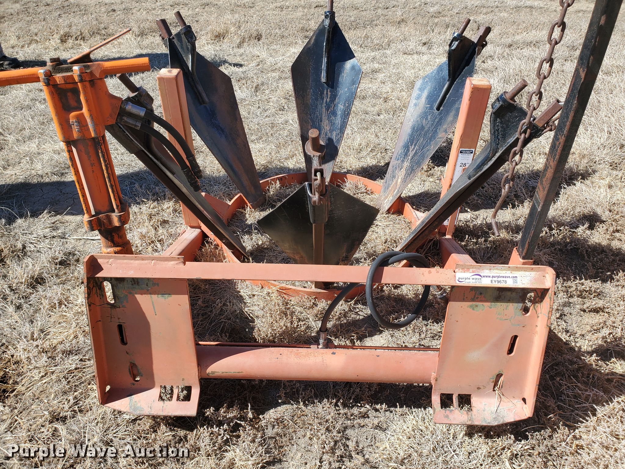 Purple Wave is selling a used Skid Steer Attach. in Kansas. This item is a Mid Dakota SS28 skid steer tree spade with the following: Jack hammer, Serial 215