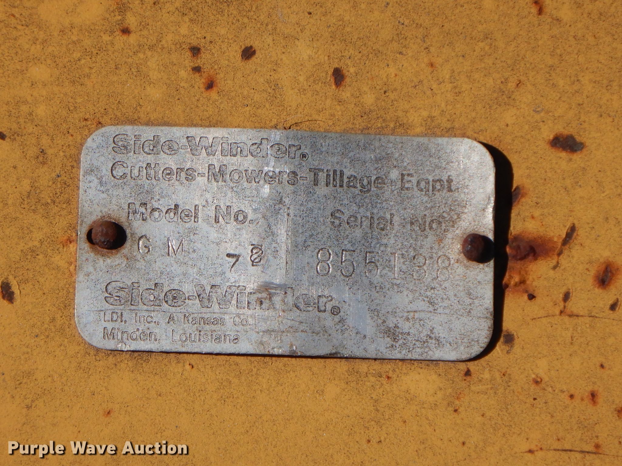 Purple Wave is selling a used Mower, Cutter, Shredder in Oklahoma. This item is a Side Winder rotary mower with the following: 6'W, 540 PTO, Three point