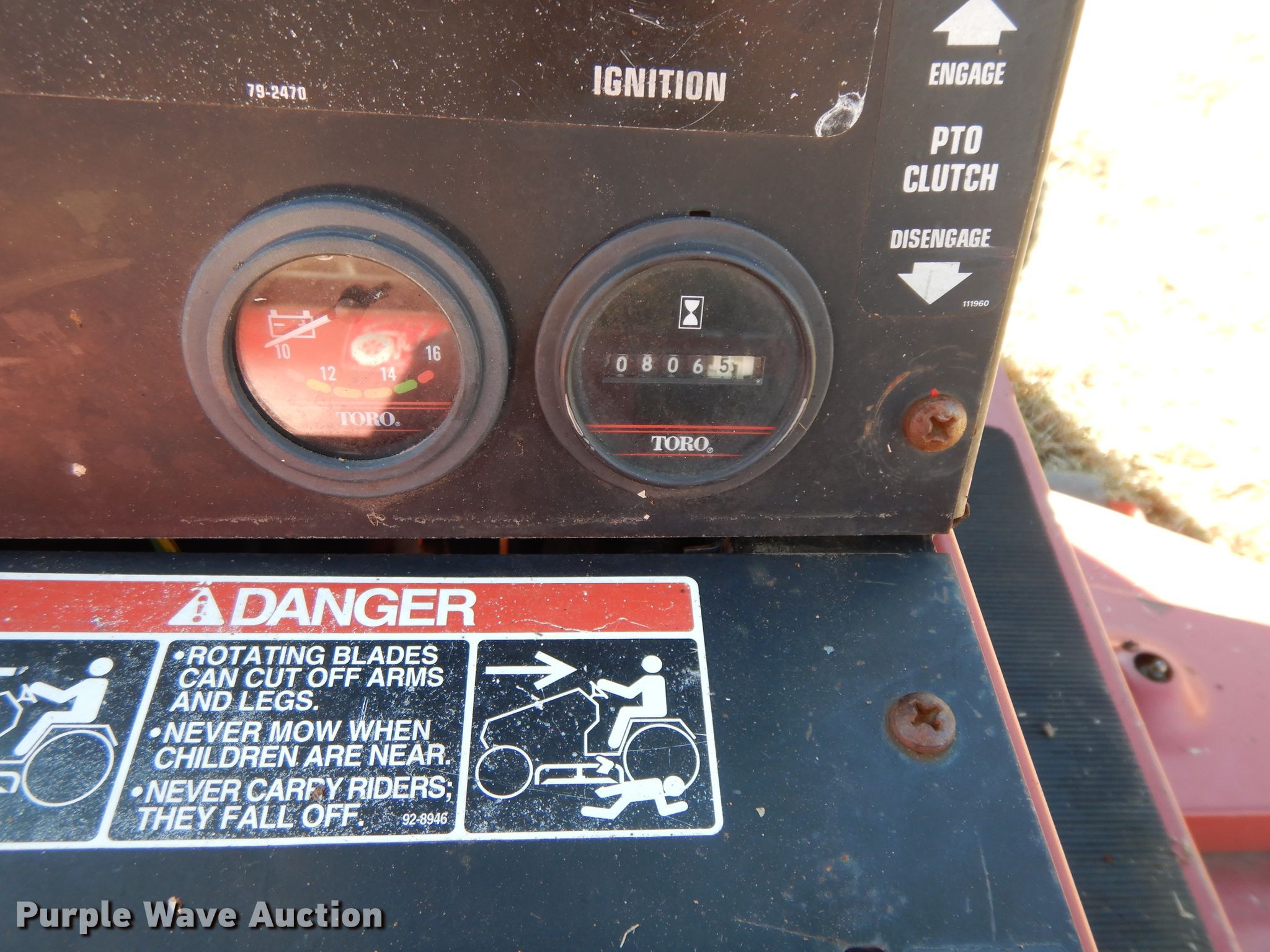 Purple Wave is selling a used Lawn Mower in Oklahoma. This item is a Toro 314 Hydro lawn mower with the following: 806 hours on meter, Cutting width: 42", Serial: 4900792