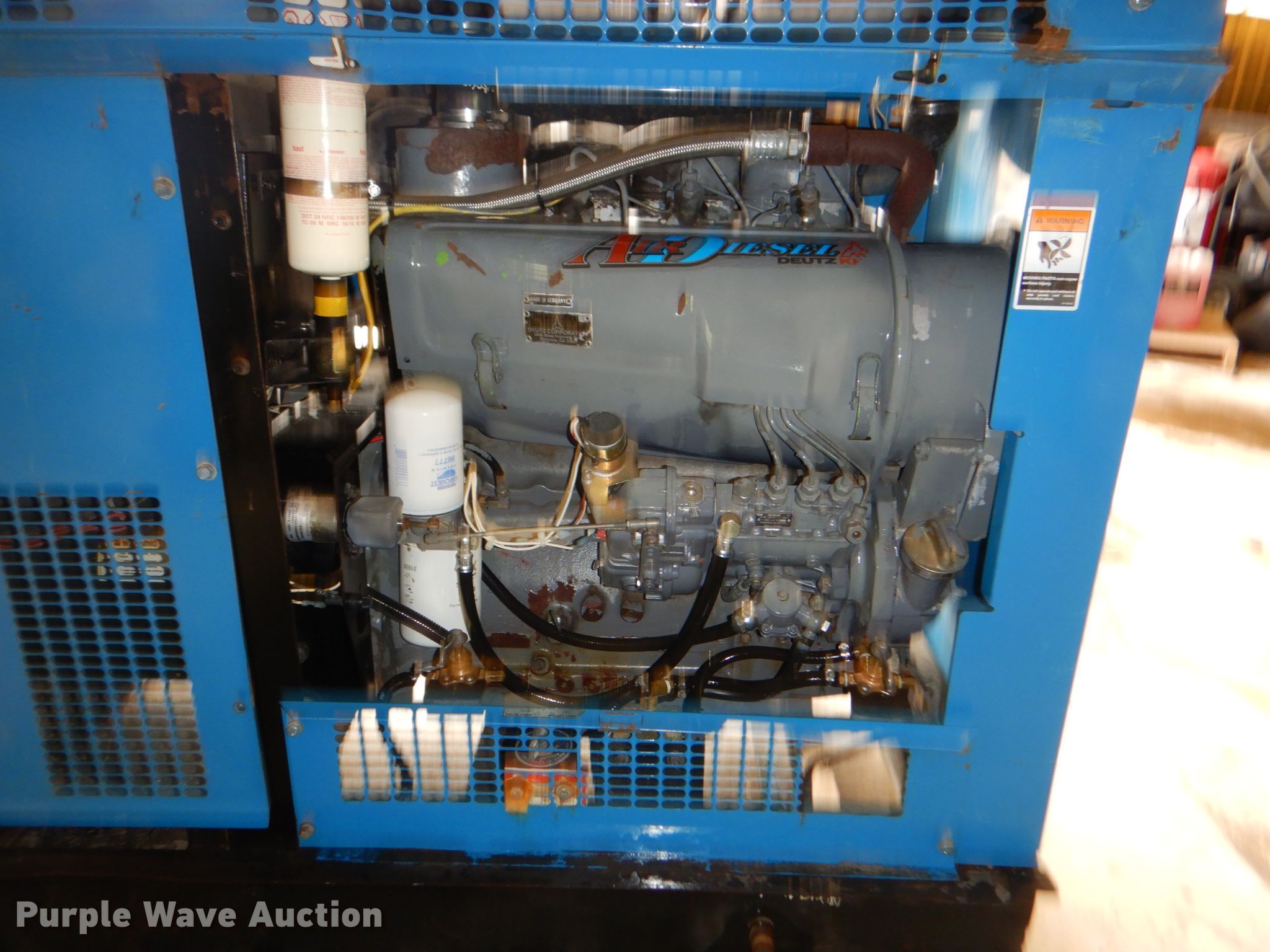 Purple Wave is selling a used Welder (Manual) in Oklahoma. This item is a Miller Big Blue Air Pak welder/generator with the following: 411 hours on meter, Deutz BF4M four cylinder diesel engine, 64.3 HP, Stick, MIG, Flux core, Submerged arc, AC TIG, and DC TIG capable, 4,000 watt generator, Ingersoll Rand CE55 G1 air compressor, CFM: 60, Single and three phase, Serial KF947646