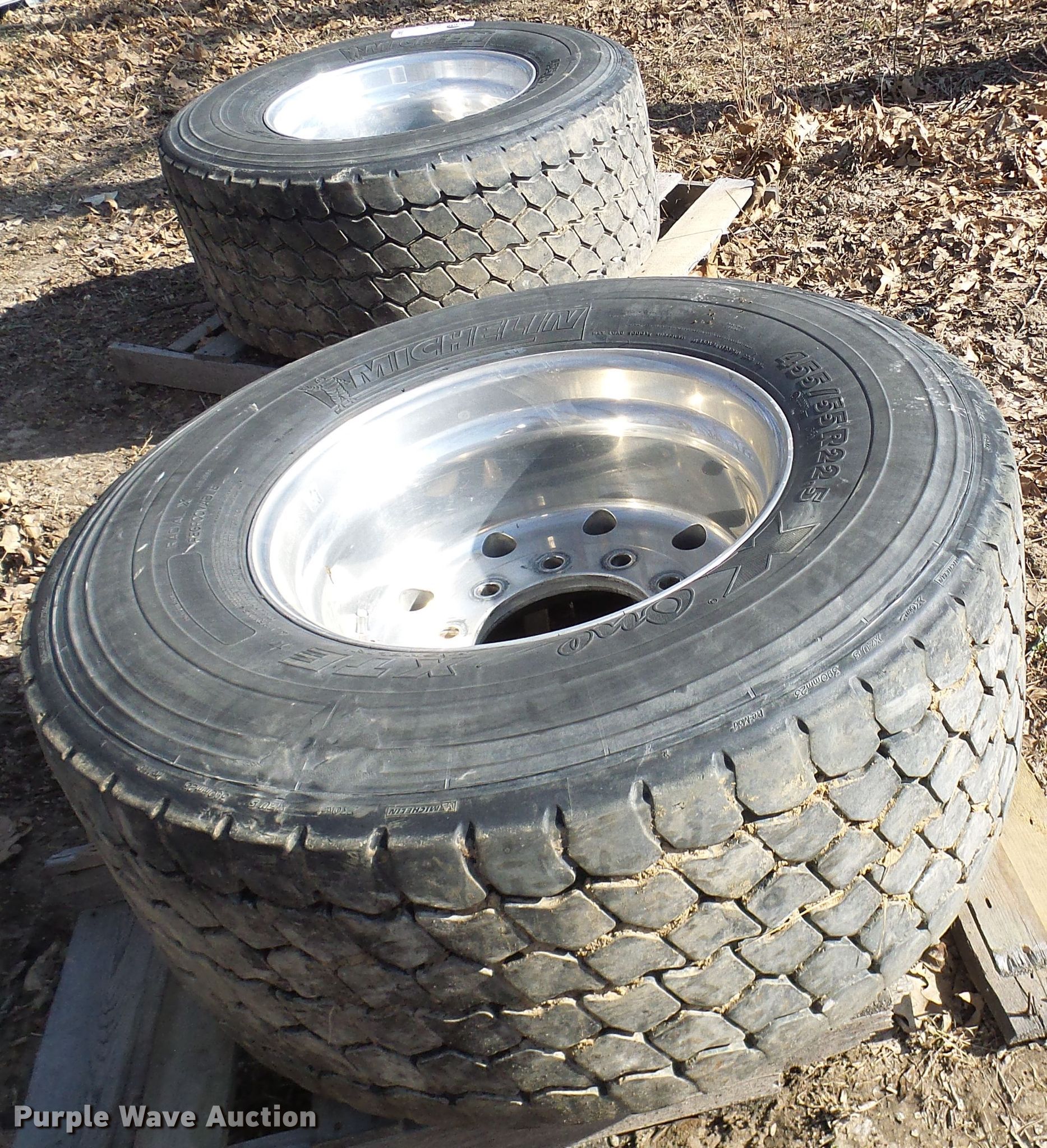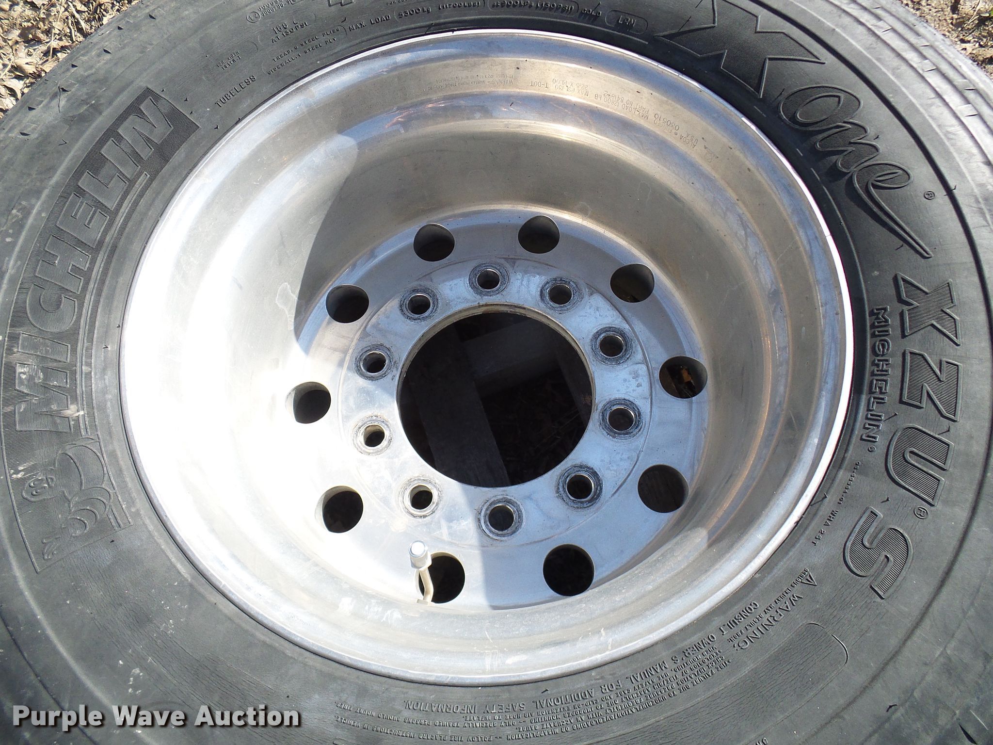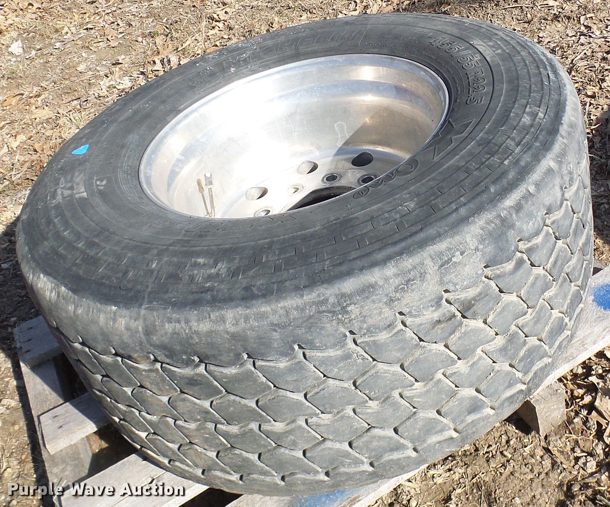 Purple Wave is selling a used Fleet Tires in Missouri. This item is a (4) Michelin 455/55R22.5 super single tires and wheels with the following: Aluminum wheels