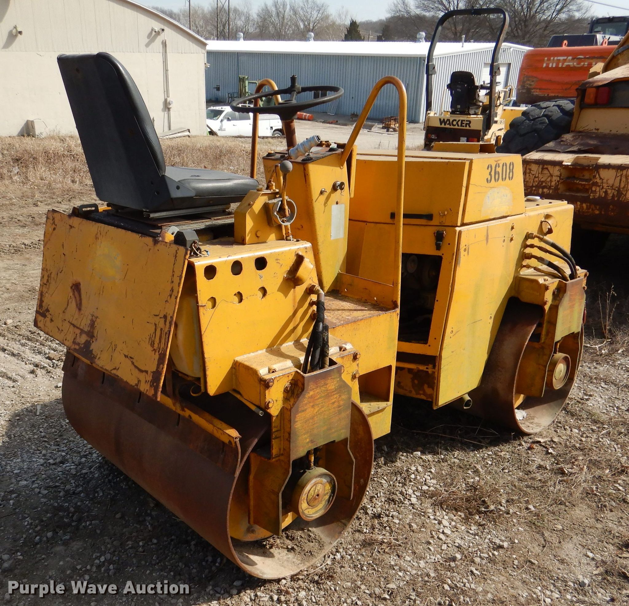 Bomag BW120AD double drum roller. 2,066 hours on meter, Serial: 101170020176, Unit #: 3608. Engine Deutz, Cylinders: 2, Fuel type: Diesel. Transmission Hydrostatic. Operational Drum: Smooth, Front drum Width: 47", Diameter: 26", Rear drum Width: 47", Diameter: 26", Drum scrapers: Front, Rear, Water spray applicator: Rear. Notes Non-operational unit. Max Rieke and Brothers. 15400 Midland Dr. Shawnee, KS 66217