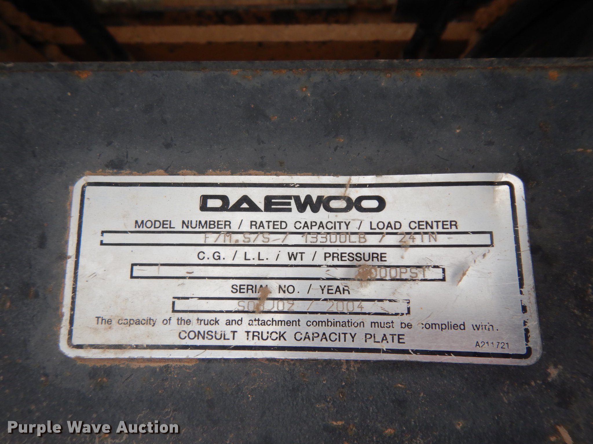 Purple Wave is selling a used Strt. Mast Rough Terr. Forklift in Texas. This item is a 2004 Daewoo D60A-2 forklift with the following: Serial: DP-00165