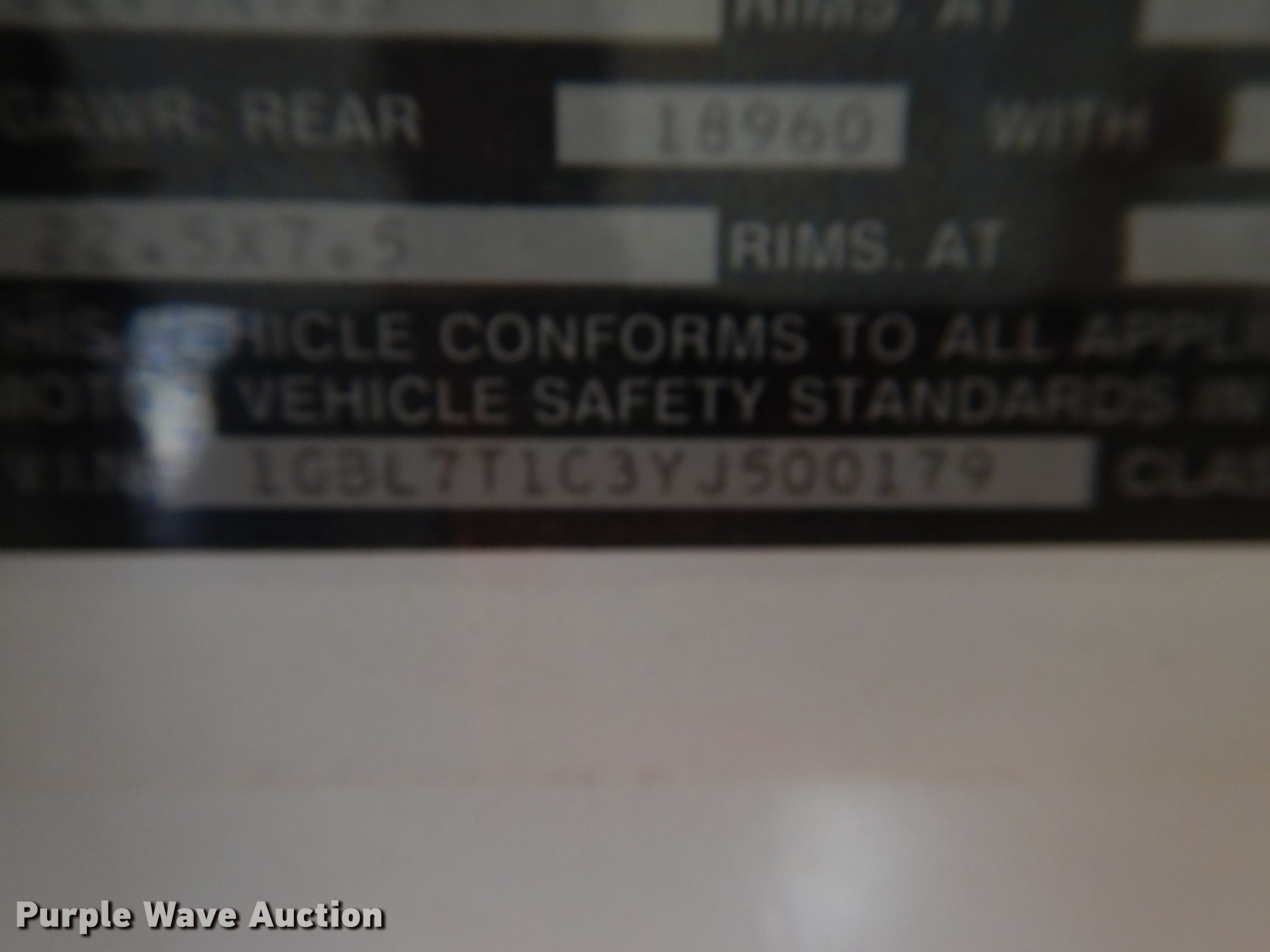 2000 Chevrolet Blue Bird school bus. 143,379 miles on odometer, Unit #: 20. Engine Caterpillar 3126, Serial: 8YL00651, Displacement: 7.2L, Cylinders: 6, Fuel type: Diesel, HP: 190. Transmission Automatic. Chassis Axles: Single, Suspension: Spring, Brakes: Hydraulic, GVWR: 27,060 lbs. Interior Heat, Passengers: 53. Tires Size: 10R22.5. Notes Windshield chipped or cracked, Possible brake issues. Title distribution may be delayed up to 14 days from verification of funds. 1GBL7T1C3YJ500179. White City, KS 66872