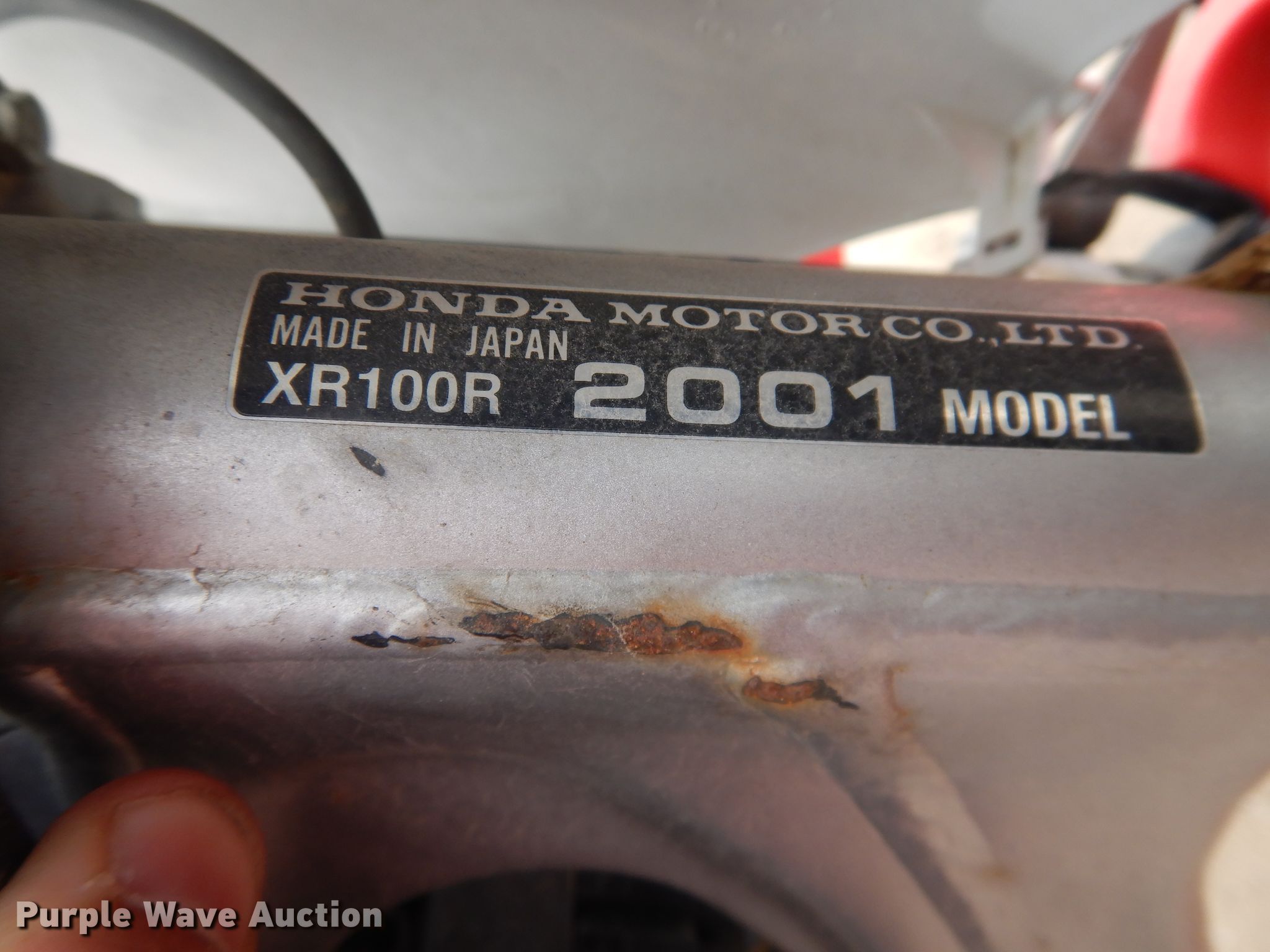 Purple Wave is selling a used Motorcycle in Colorado. This item is a 2001 Honda XR100R dirk bike with the following: 100cc single cylinder gas engine, 80/100-21 front tire, 100/100-17 rear tire, Unknown operating condition