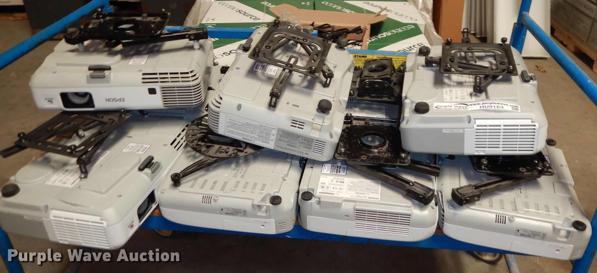 Purple Wave is selling a used Electronics in Kansas. This item is a (11) Epson projectors with the following: (9) power cords, (4) remotes