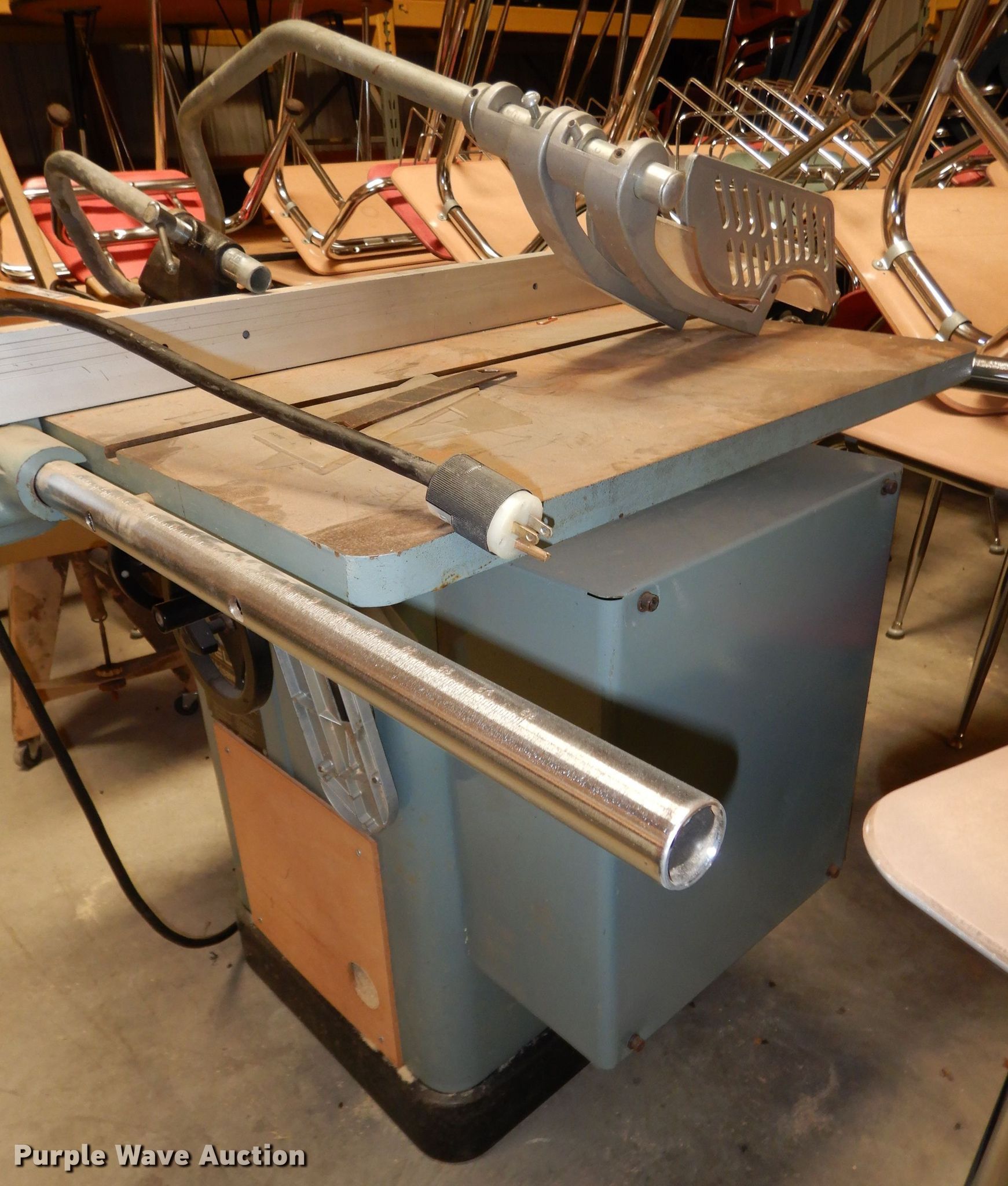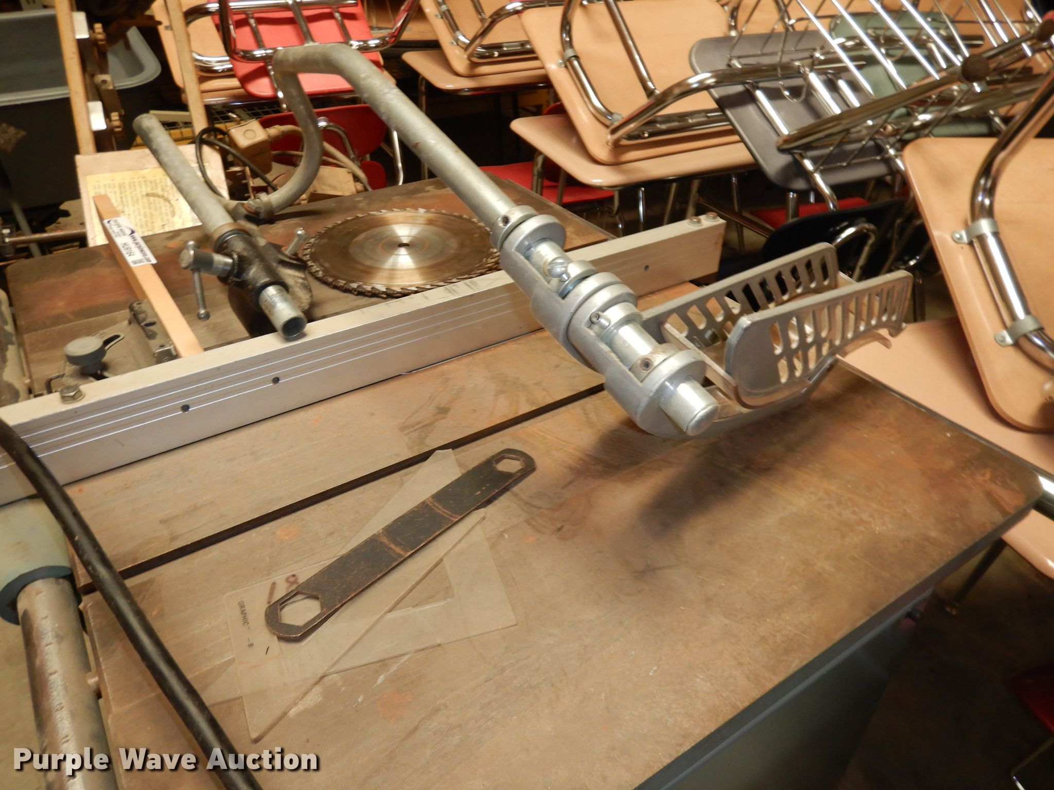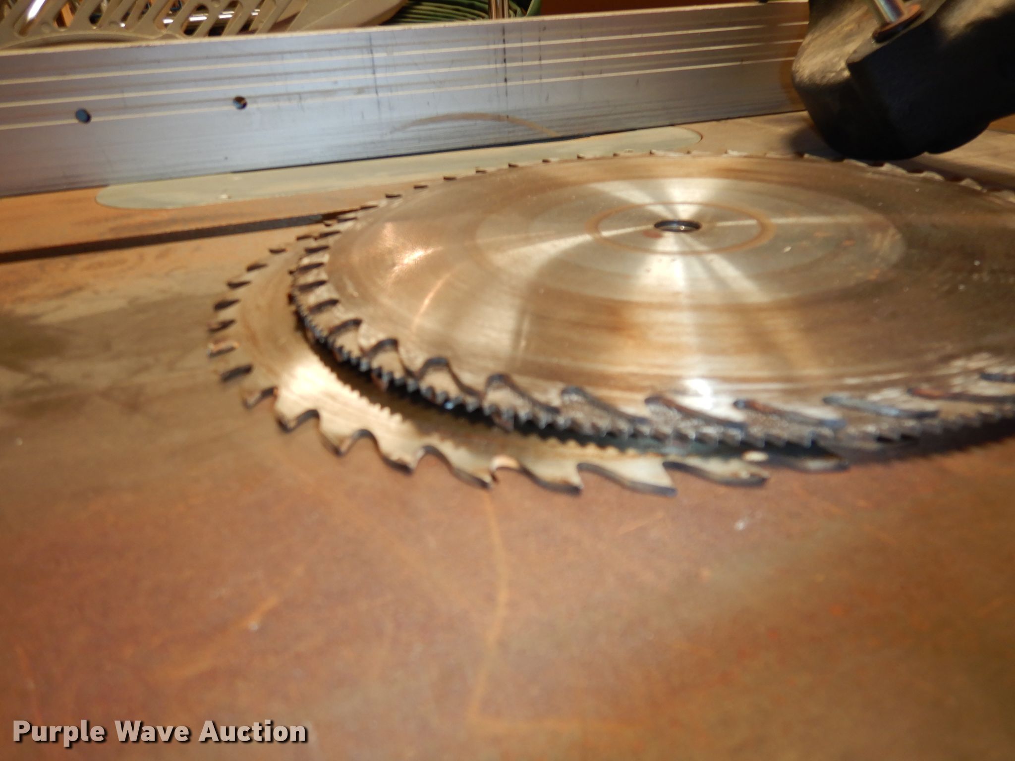 Purple Wave is selling a used Tools in Kansas. This item is a Delta unisaw with the following: (4) 10" blades, Guide, Serial 86B00497