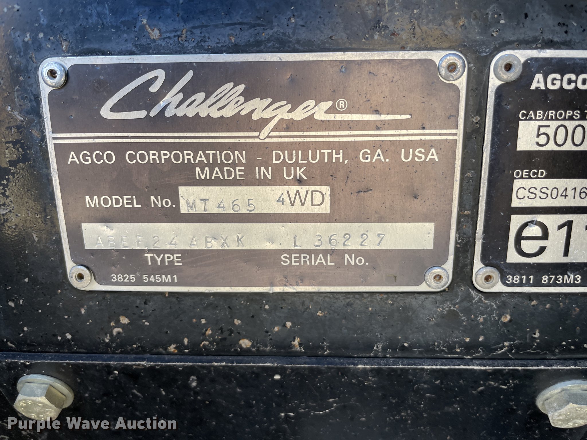 Purple Wave is selling a used Tractor in Kansas. This item is a 2002 Challenger MT465 MFWD tractor with the following: Perkins, Displacement: 4.0L, Cylinders: 4, Fuel type: Diesel