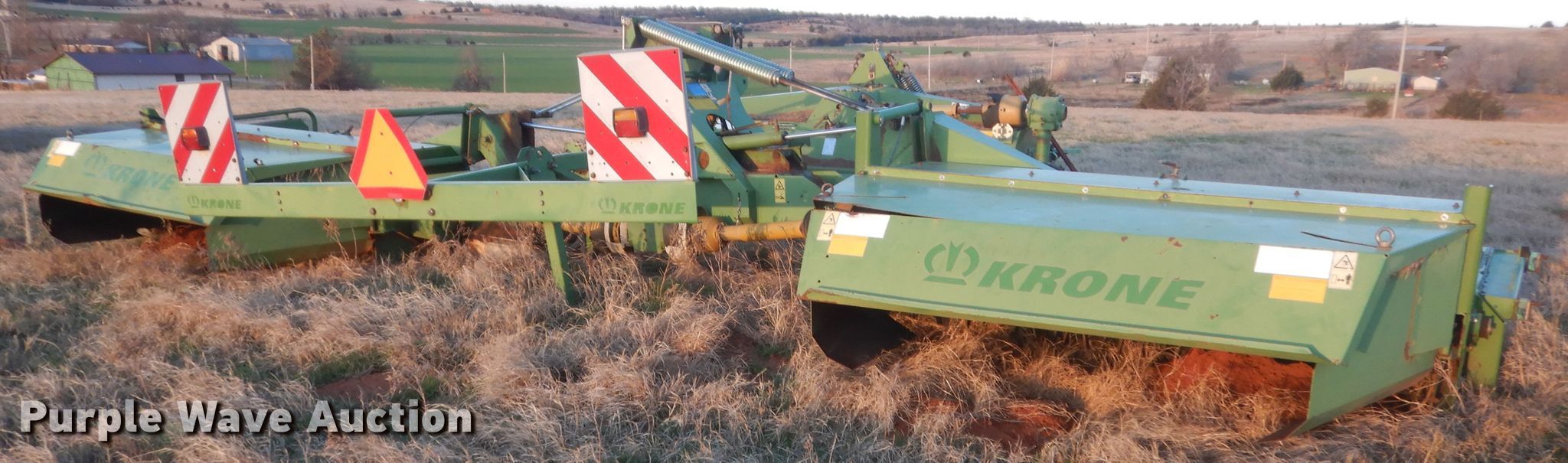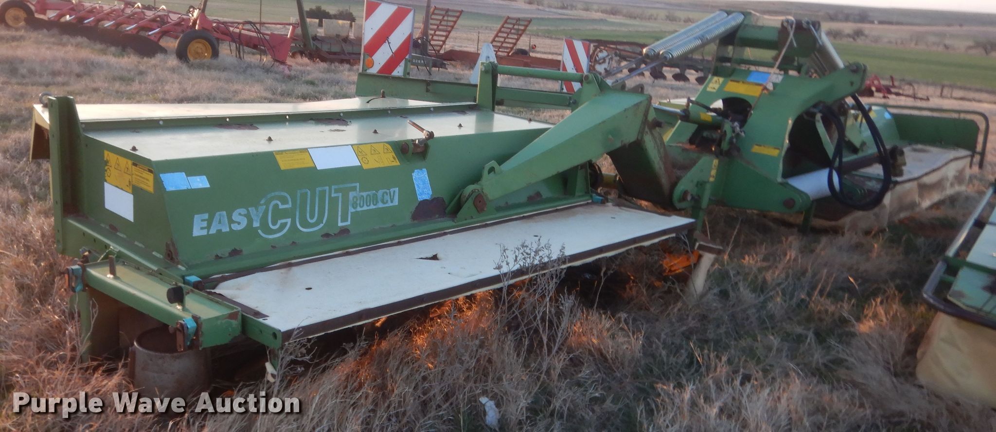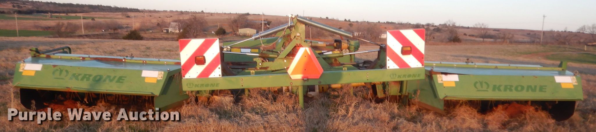 Purple Wave is selling a used Disc or Sickle Mower in Oklahoma. This item is a (2) 2004 Krone disc mowers with the following: Model Easy Cut 8000CV, Model Easy Cut 32CV, 30'W overall cutting capacity, 1000 PTO, Hydraulic fold, Floating and transport control, Mounts, Serial 591655,585607