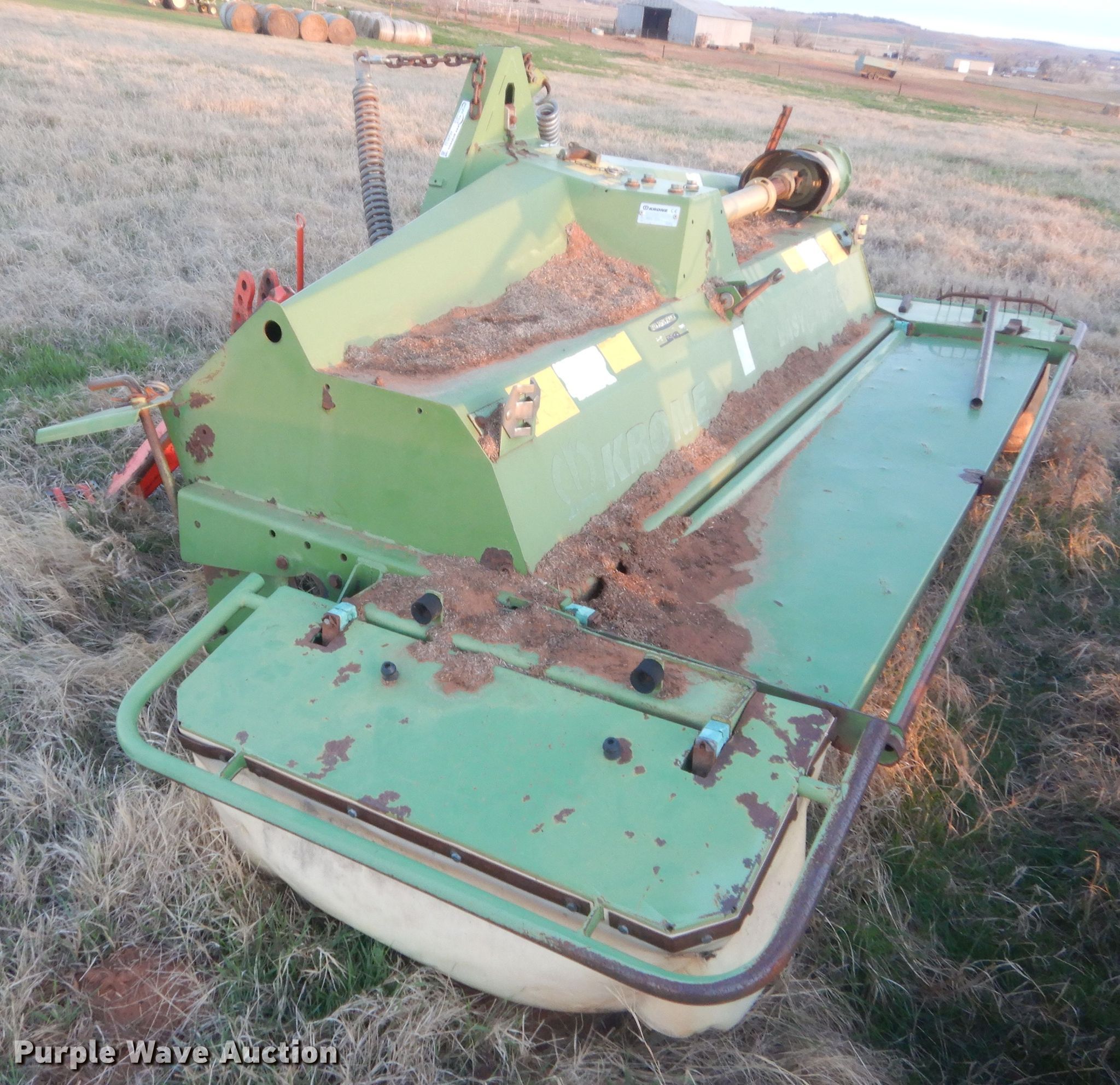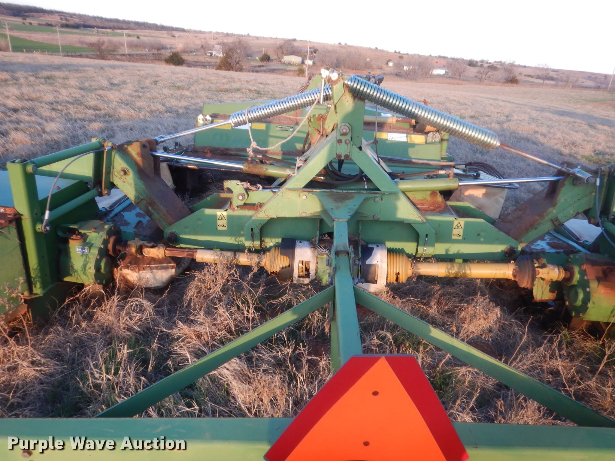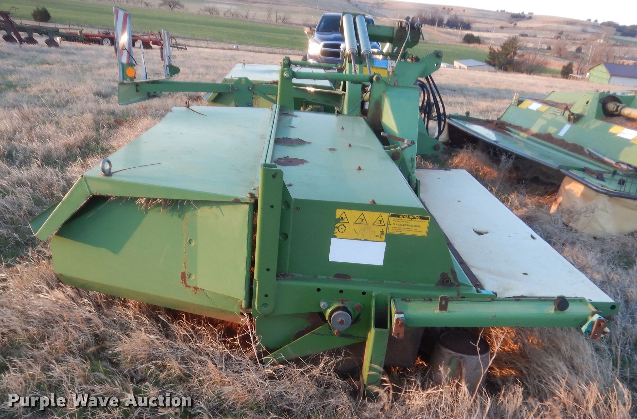 Purple Wave is selling a used Disc or Sickle Mower in Oklahoma. This item is a (2) 2004 Krone disc mowers with the following: Model Easy Cut 8000CV, Model Easy Cut 32CV, 30'W overall cutting capacity, 1000 PTO, Hydraulic fold, Floating and transport control, Mounts, Serial 591655,585607