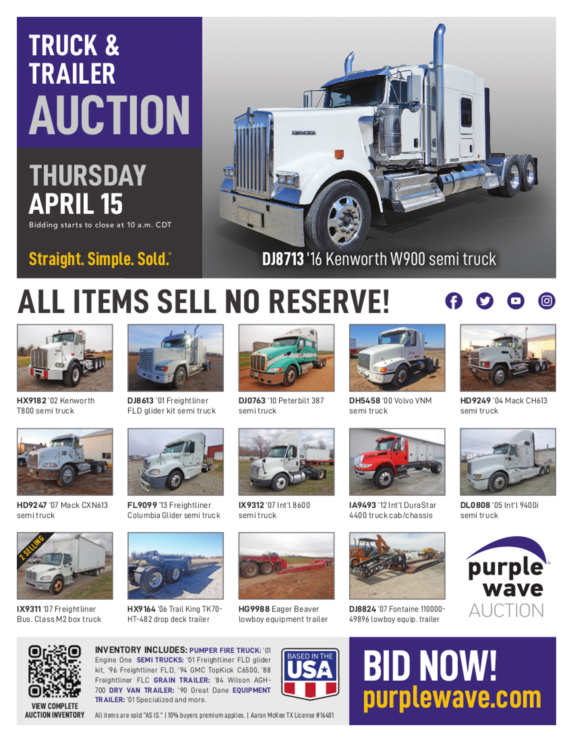 SOLD! Truck and Trailer Auction | 4-15-2021