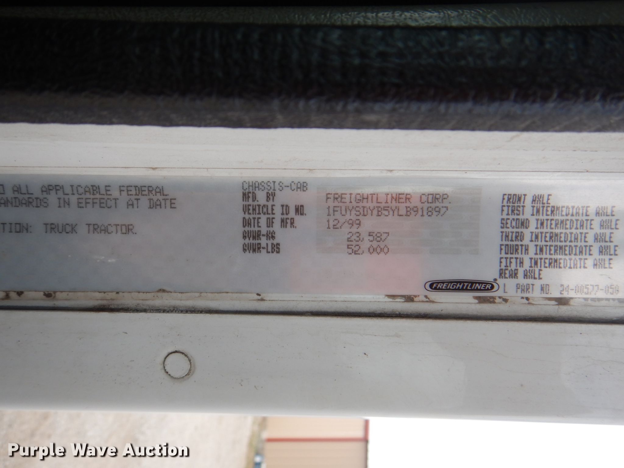 Purple Wave is selling a used Truck Tractor in Oklahoma. This item is a 2000 Freightliner Century Classic semi truck with the following: 648,971 miles on odometer