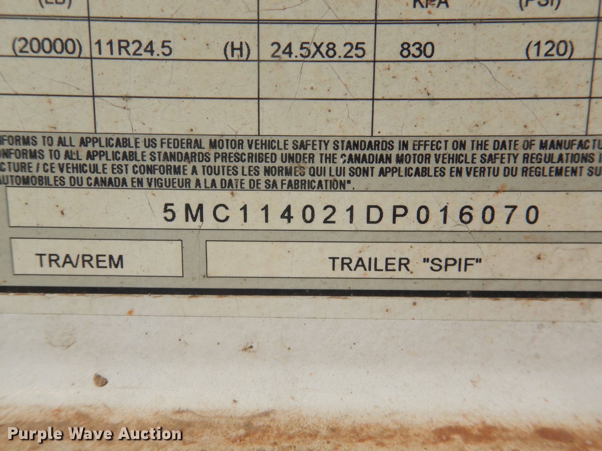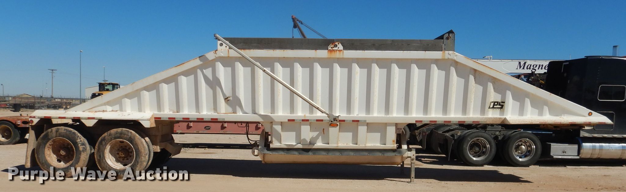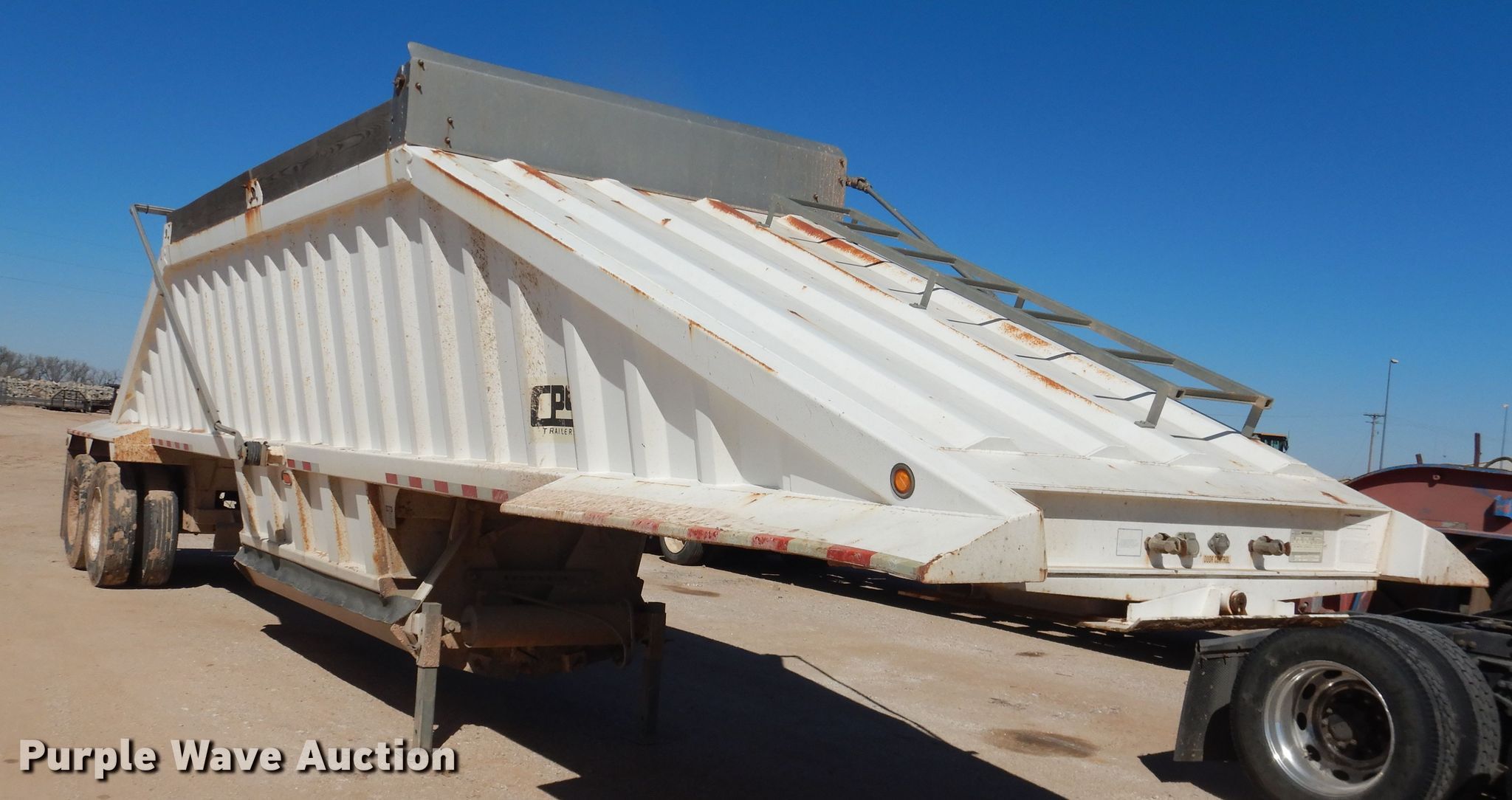 Purple Wave is selling a used Bottom Dump Trailer in Oklahoma. This item is a 2013 Manac 4C240AC00 bottom dump trailer with the following: 42'L x 96"W overall, 59"W side height, Air operated clamshell gate, Trailer controls, Rear push block, Roll tarp, Steel construction, Dual leg landing gear, Air suspension, Air brakes, Tandem axle, Steel wheels, 11R24.5 tires, GVWR 75,000 lbs, GAWR 20,000 lbs