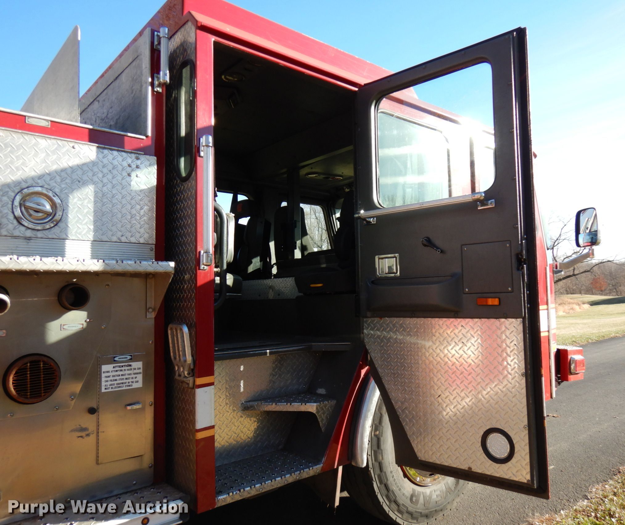 2001 Engine One pumper fire truck. 103,770 miles on odometer. Engine Cummins, Displacement: 8.3L, Cylinders: 6, Fuel type: Diesel. Transmission Automatic. Chassis Axles: Single, Suspension: Spring, Brakes: Air, GVWR: 39,800 lbs. Interior AC, Heat, Auxiliary controls. Operational Pump 1,008 gpm. Tires Front: 315/80R22.5, Rear: 11R22.5. Massachusetts title. Seller is a Minnesota licensed motor vehicle dealer. The buyer may be required to pay sales tax and/or registration fees to the dealer prior to taking possession. Title will be assigned and distributed by the dealer. Please contact the seller for distribution questions. 4ENRAAA8211003430. 14203 230th St. hutchinson, MN 55350
